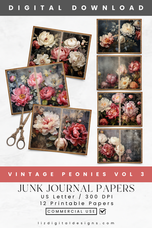 Vintage Peonies Vol 3 - Junk Journal & Scrapbooking Paper