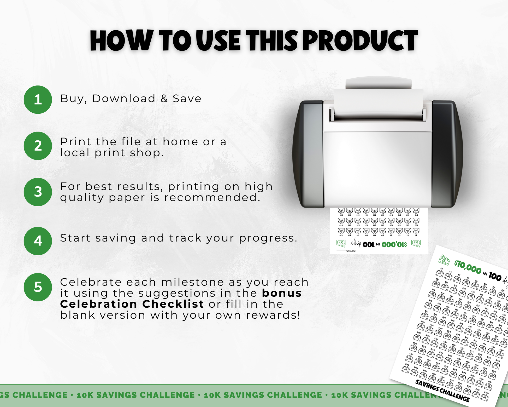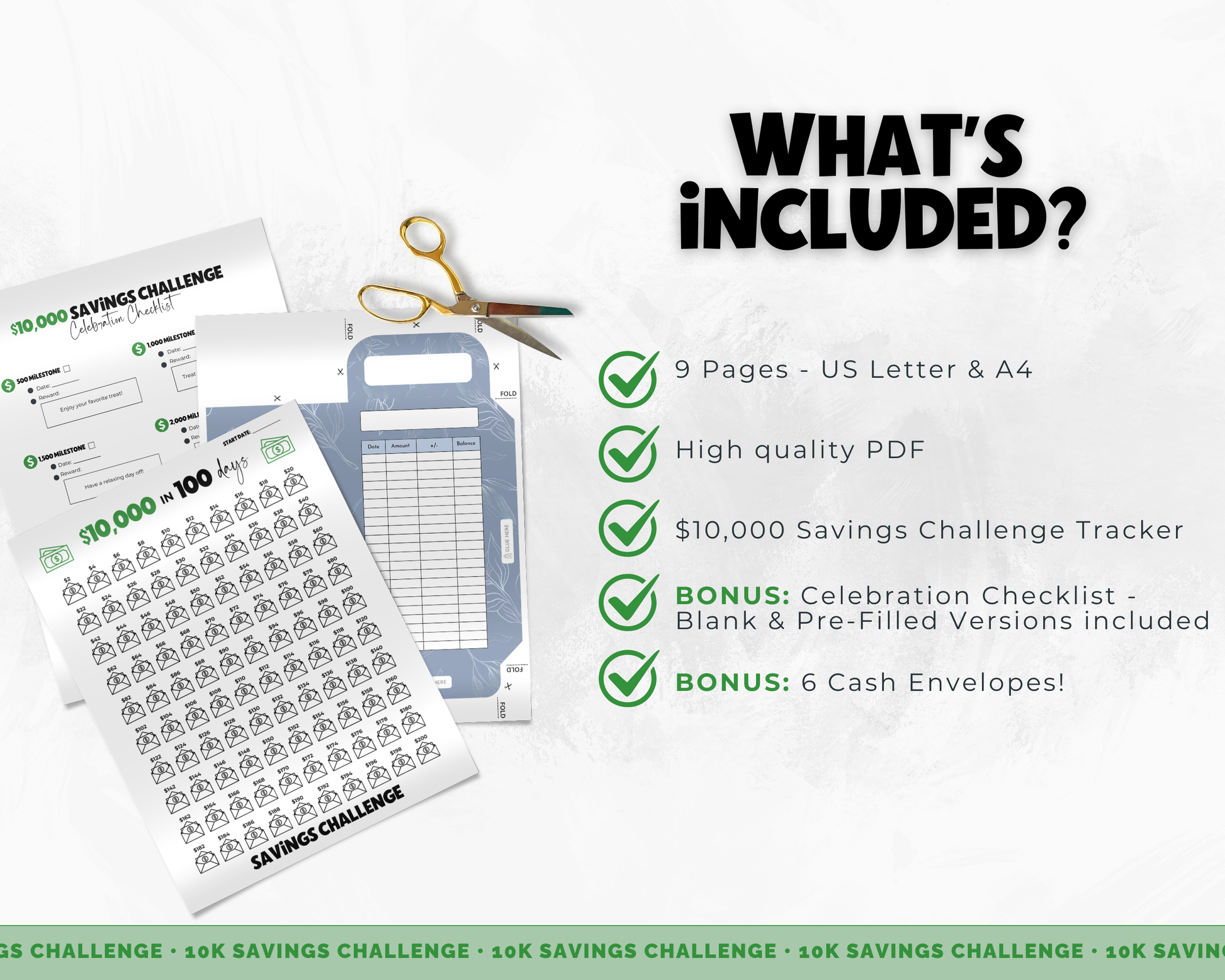 Save up to $10,000 in just 100 days starting with just $2 with the $ππ,πππ πππ―π’π§π π¬ ππ‘ππ₯π₯ππ§π π ππ«πππ€ππ«! Simply label 100 envelopes with the amounts from the tracker, select an envelope each week and save the designated amount until you've completed the tracker! Use the tracker to highlight or mark off each completed envelope. Use the bonus Celebration Checklist to celebrate key milestones for fun rewards! This fun and easy challenge will help you reach your financial goals in no time!Β