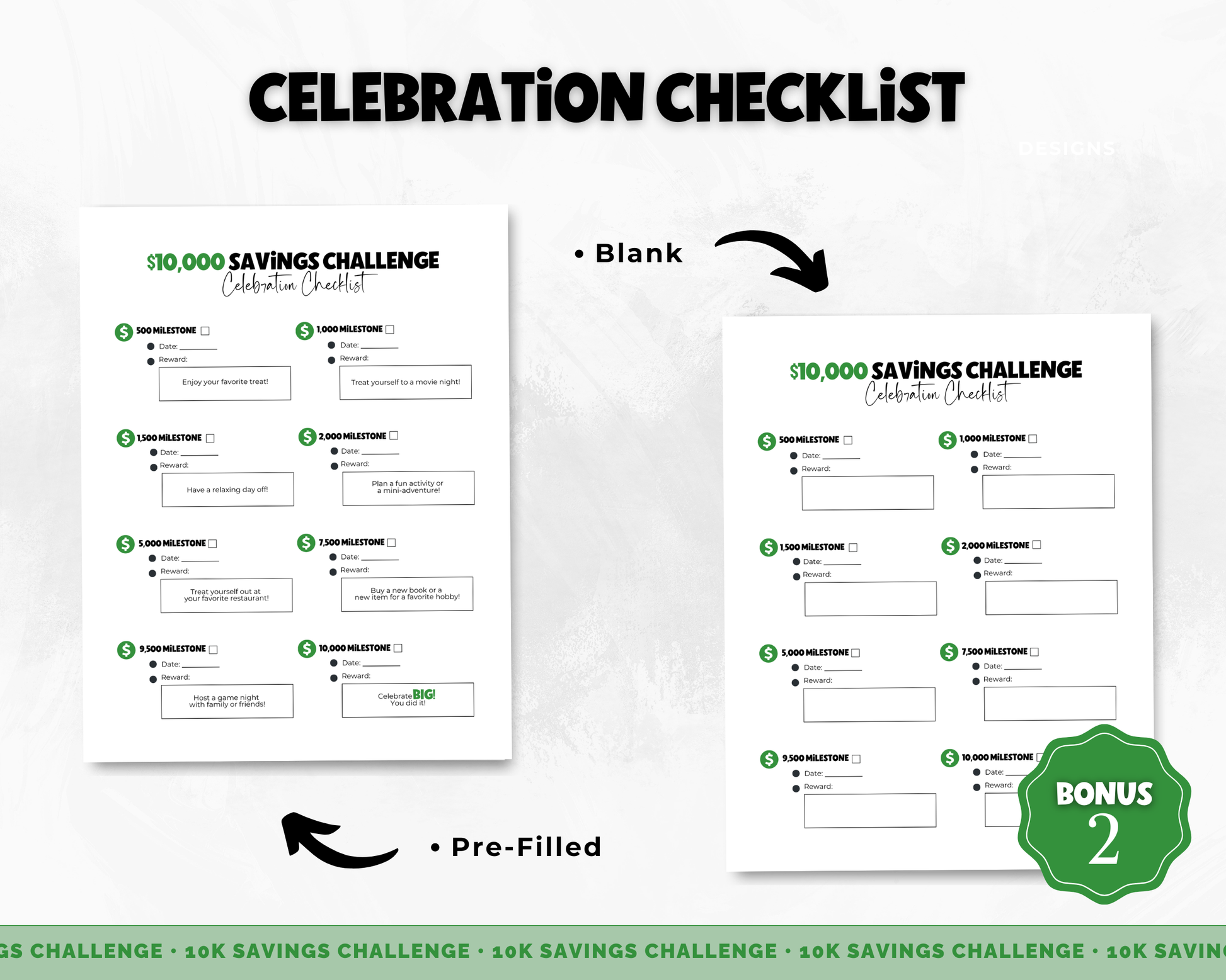 π πππππ: Celebration Checklist to reward yourself at key milestones! A blank and pre-filled version are included