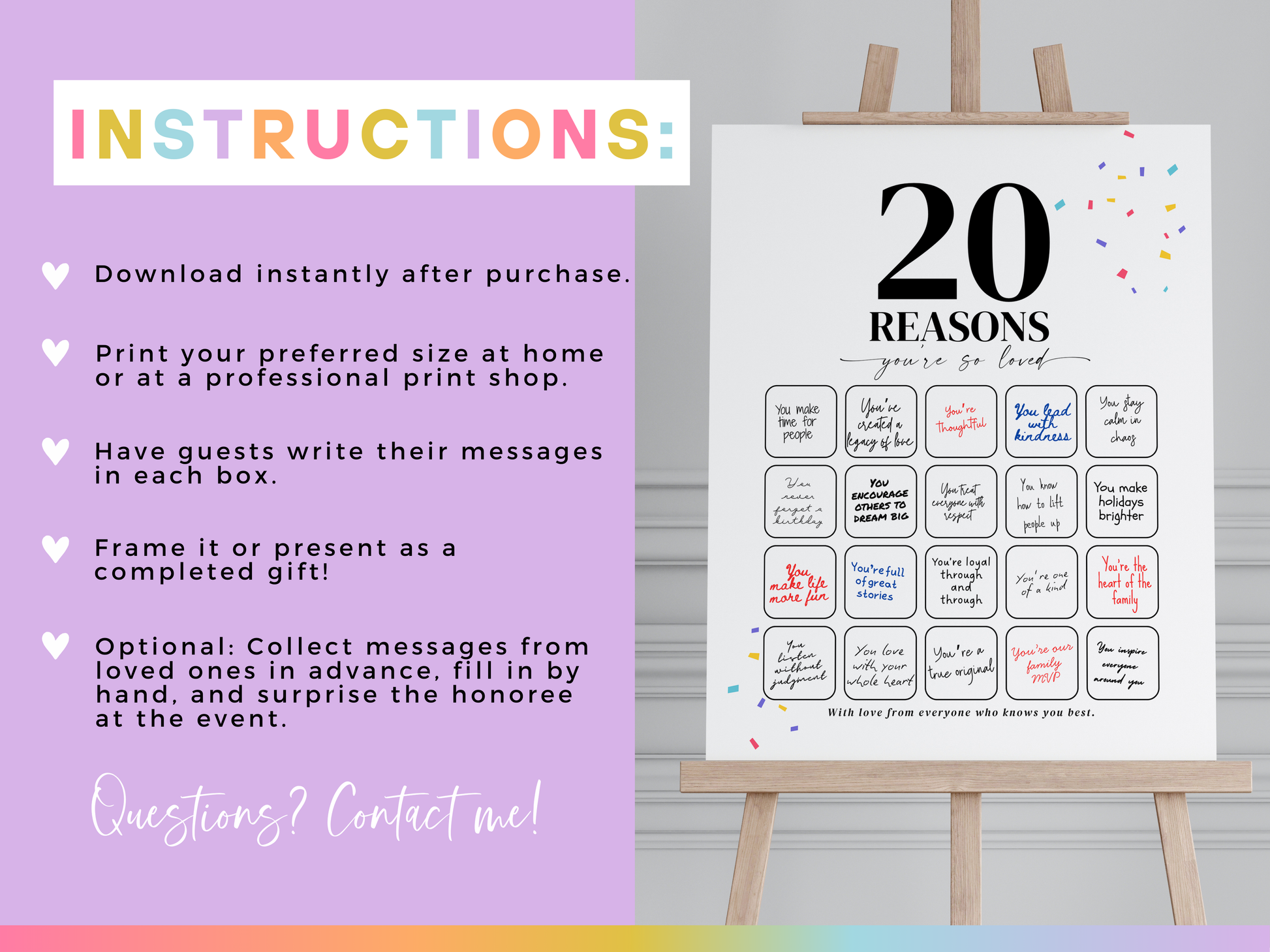 Looking for a 20th birthday gift thatβs thoughtful, personal, and easy to put together? This βππ πππππππ πππ'ππ ππ πππππβ printable is the perfect way to celebrate someone turning 20. Fill it with sweet messages from friends and familyβor let guests write their own at the party!