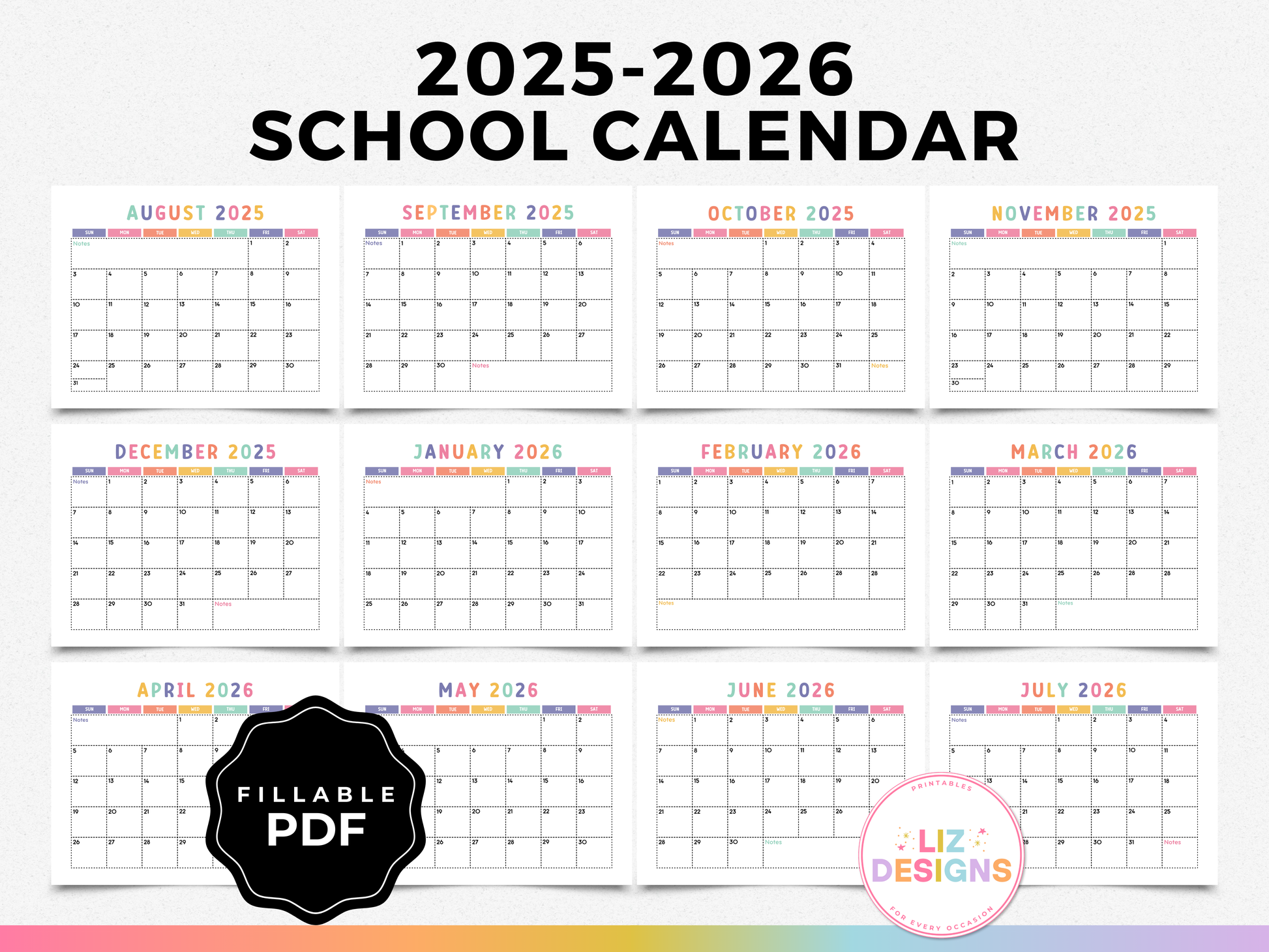 Stay organized and plan your school year with the ππππβππππ ππππππ ππππ ππππππππ! This fillable PDF academic calendar is perfect for students, teachers, and parents to track lessons, activities, and family events from August 2025 through July 2026. Easily customize and print from the comfort of your home β ideal for school schedules, extracurriculars, holidays, and more!