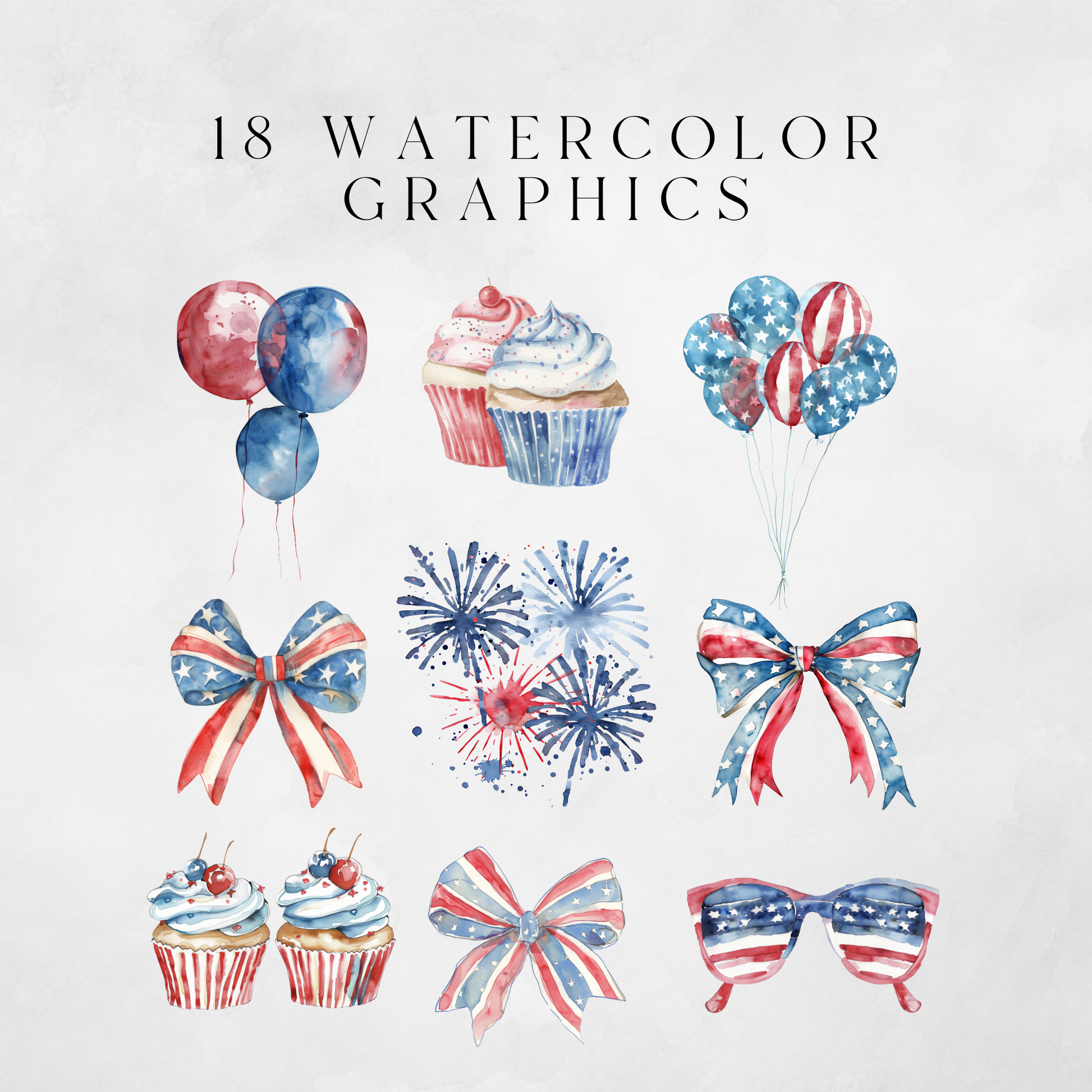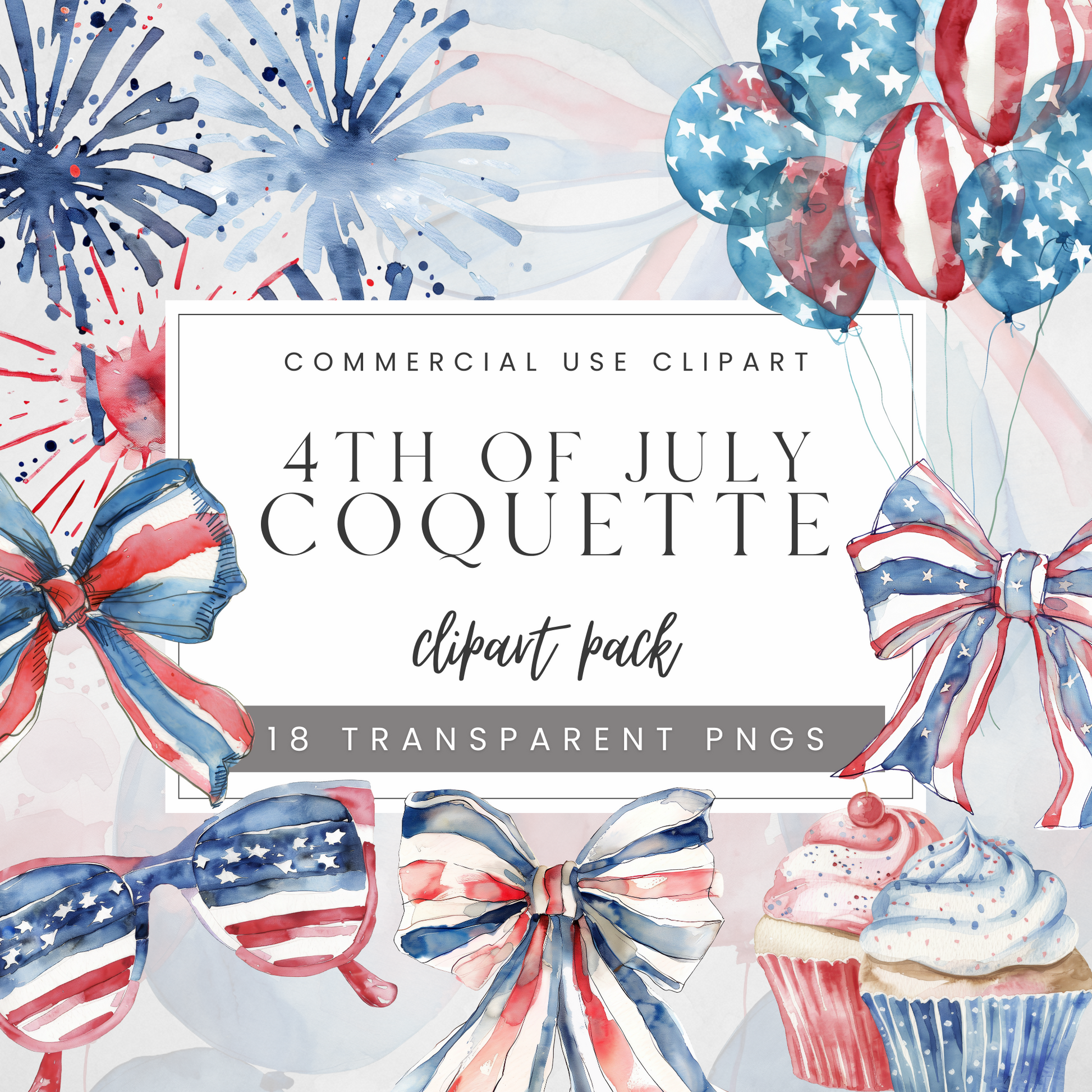 The ๐๐ญ๐ก ๐จ๐ ๐๐ฎ๐ฅ๐ฒ ๐๐จ๐ช๐ฎ๐๐ญ๐ญ๐ ๐๐ฅ๐ข๐ฉ๐๐ซ๐ญ ๐๐๐๐ค consists of 18 transparent PNG images of beautiful, watercolor coquette Independence Day-themed images! These versatile illustrations are perfect for both personal and commercial projects such as creating greeting cards, invitations, seasonal printables, physical stickers, decorations or use in scrapbooks, junk journals, PODs and more!