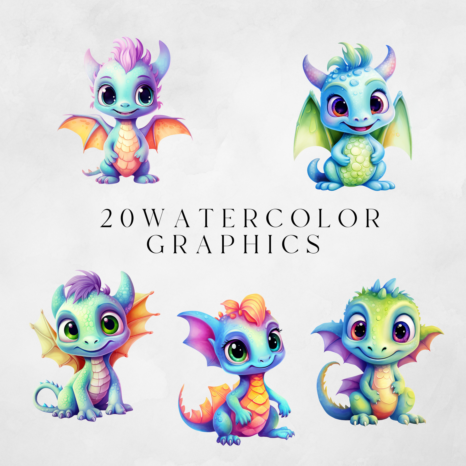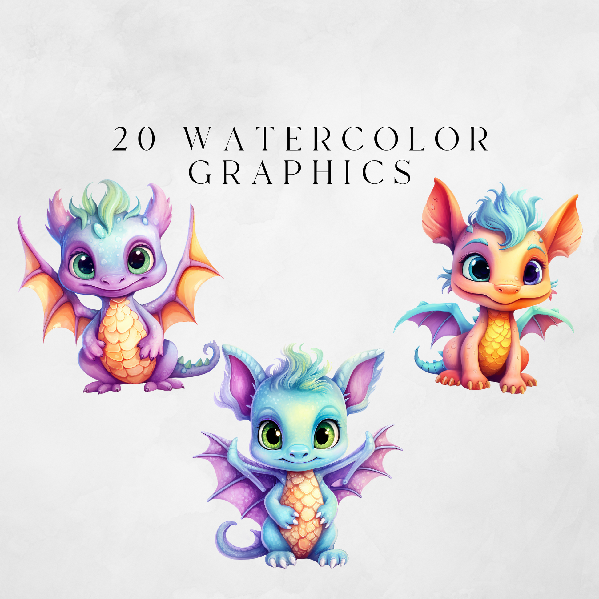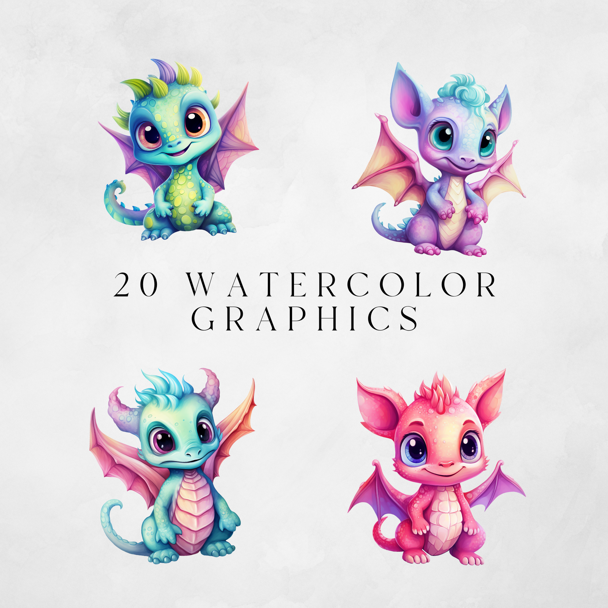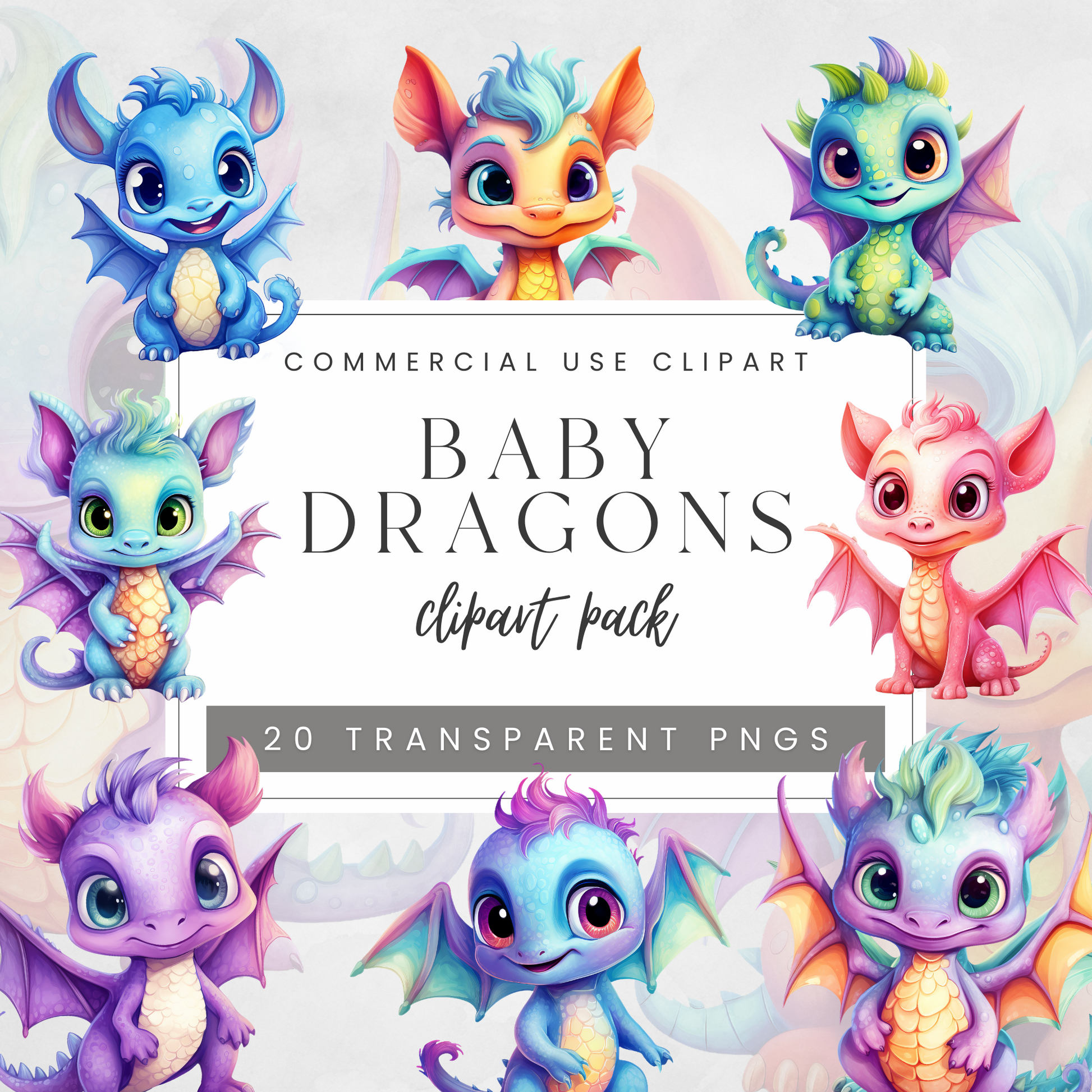 Introducing the Baby Dragons Clipart Pack! Featuring vibrant pastel illustrations of cute baby dragons, perfect for creating invitations, decorations, personalized gifts, wall art and more!