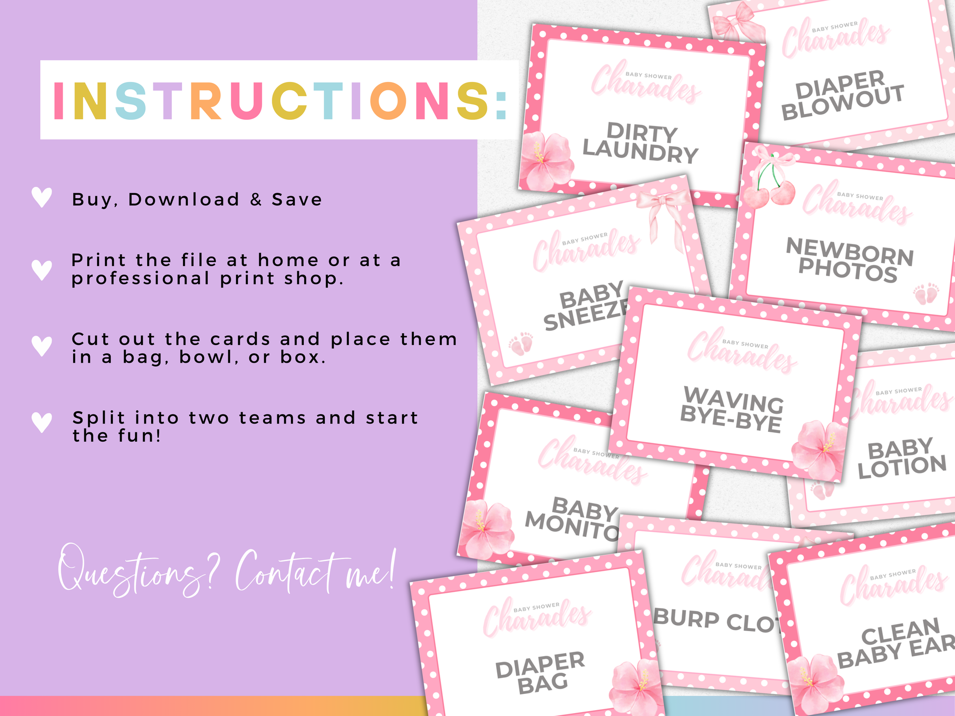 Looking for a charming activity for your girl baby shower or baby sprinkle? This ππππ ππππππ ππππππππ - ππππ πππππππ features a delightful pink theme, making it perfect for gender reveal parties and baby showers. Bring guests together with laughter and fun as they act out baby-related words and phrases!
