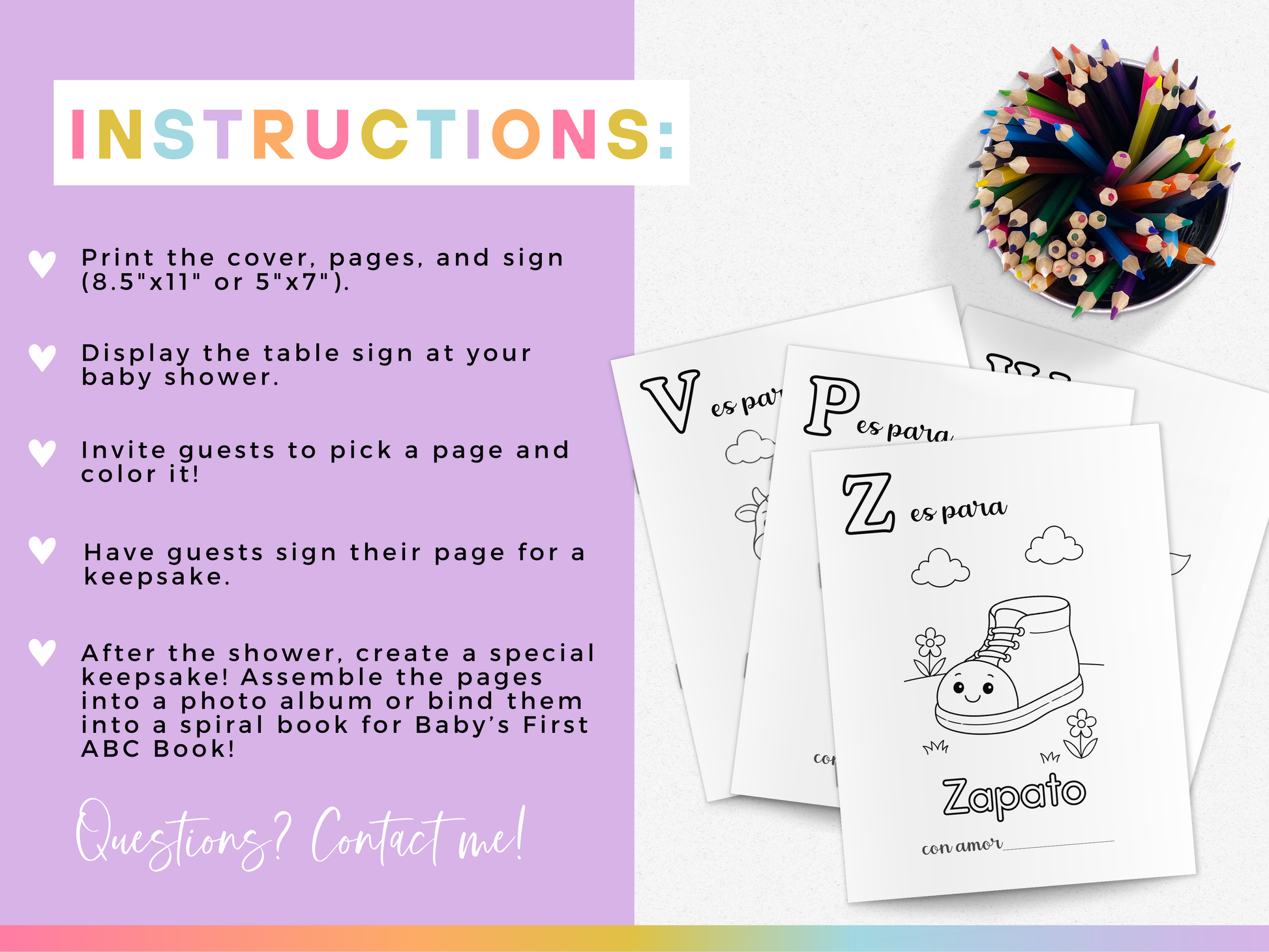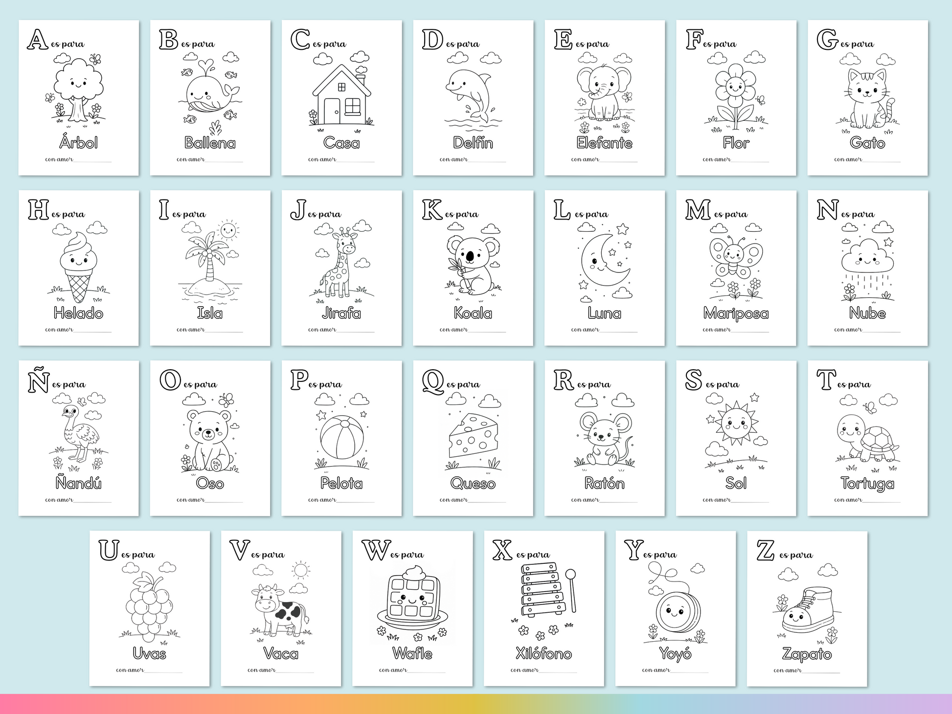 π 27 Alphabet Coloring Pages (AβZ) in Spanish β 8.5"x11" and 5"x7" sizes