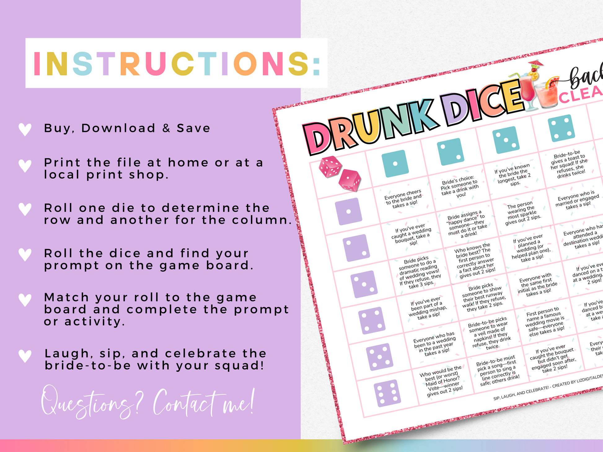 π² Bachelorette Party Drunk Dice Game - Clean Edition
