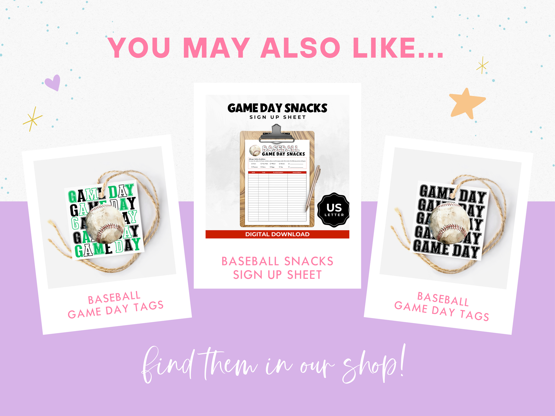 Bring a sleek and sporty vibe to your game day treats with these printable 𝐁𝐀𝐒𝐄𝐁𝐀𝐋𝐋 π†π€πŒπ„ πƒπ€π˜ 𝐓𝐑𝐄𝐀𝐓 𝐓𝐀𝐆𝐒 in a bold blue and black design! Perfect for team snacks, good luck gifts, and party favors, these tags are a fun and stylish way to elevate your baseball celebrations. Whether you’re cheering on the team, hosting a party, or creating memorable favors, these blue and black tags are the perfect touch.