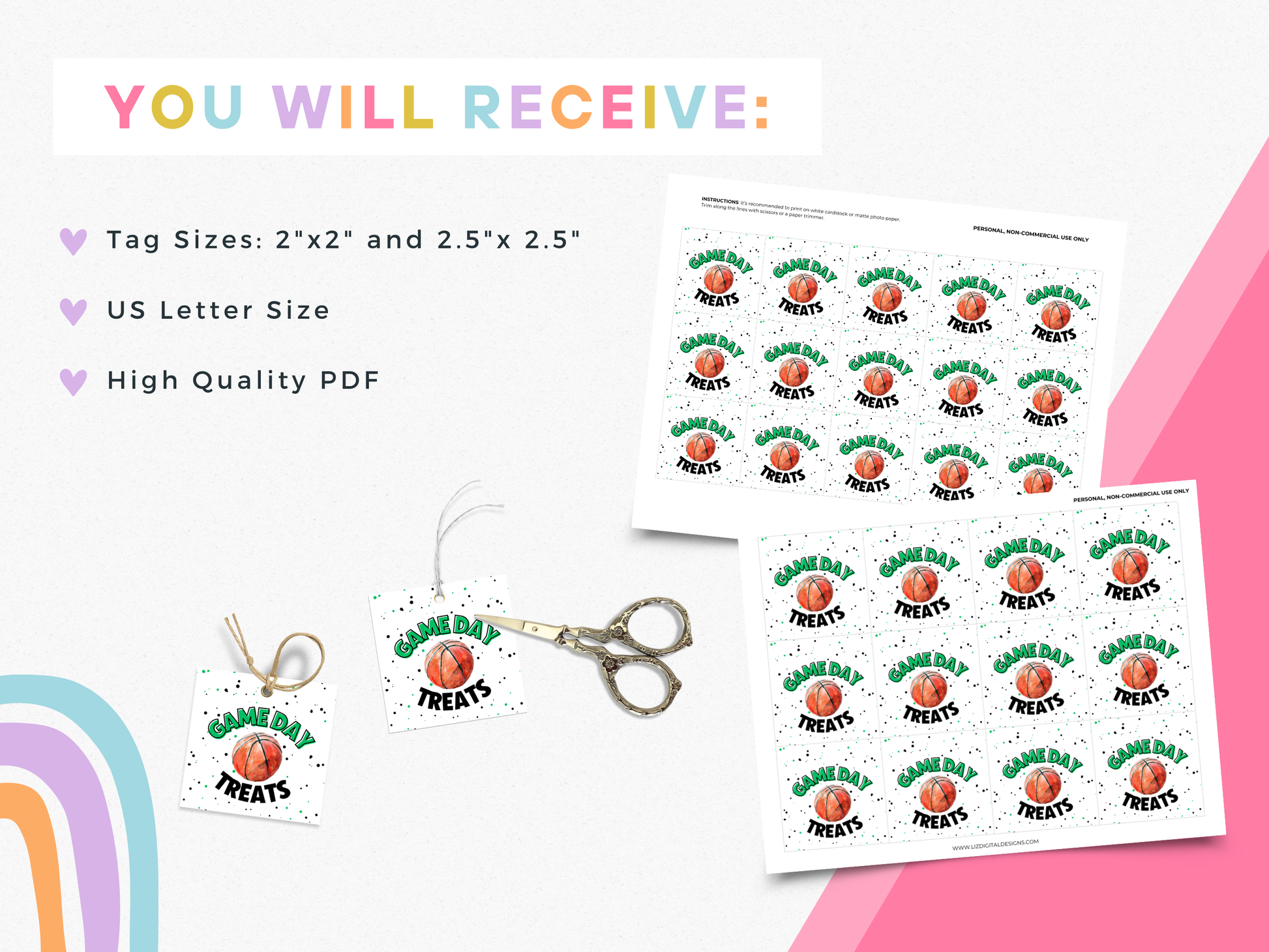 These ππππππππππ ππππ πππ πππππ ππππ are ideal for basketball games and parties, tailgates, sports-themed events, or as a special Good Luck Gift Tag for your favorite sports team. Featuring a minimalist basketball design and the phrase "Game Day Treats," these Basketball Treat Tags add excitement and spirit to any gathering. Theyβre perfect as Team Snack Tags and Game Day Favor Tags!