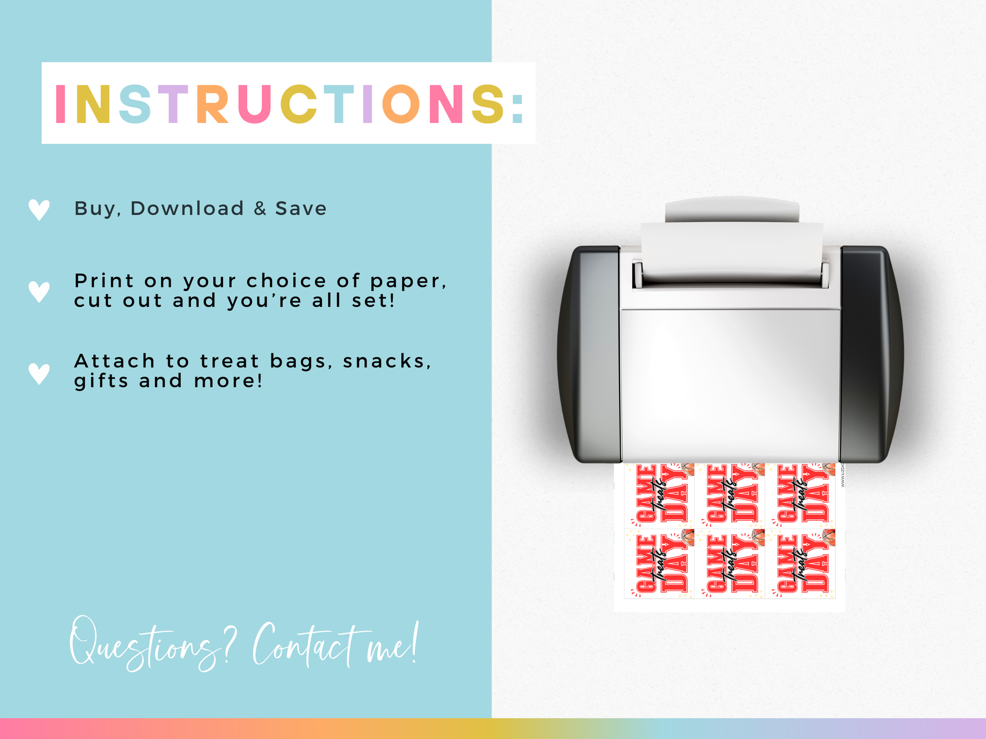 These ππππππππππ ππππ πππ πππππ ππππ are ideal for basketball games and parties, tailgates, sports-themed events, or as a special Good Luck Gift Tag for your favorite sports team. Featuring a vibrant green and black basketball design and the phrase "Game Day Treats," these Football Treat Tags add excitement and spirit to any gathering. Theyβre perfect as Team Snack Tags and Game Day Favor Tags!