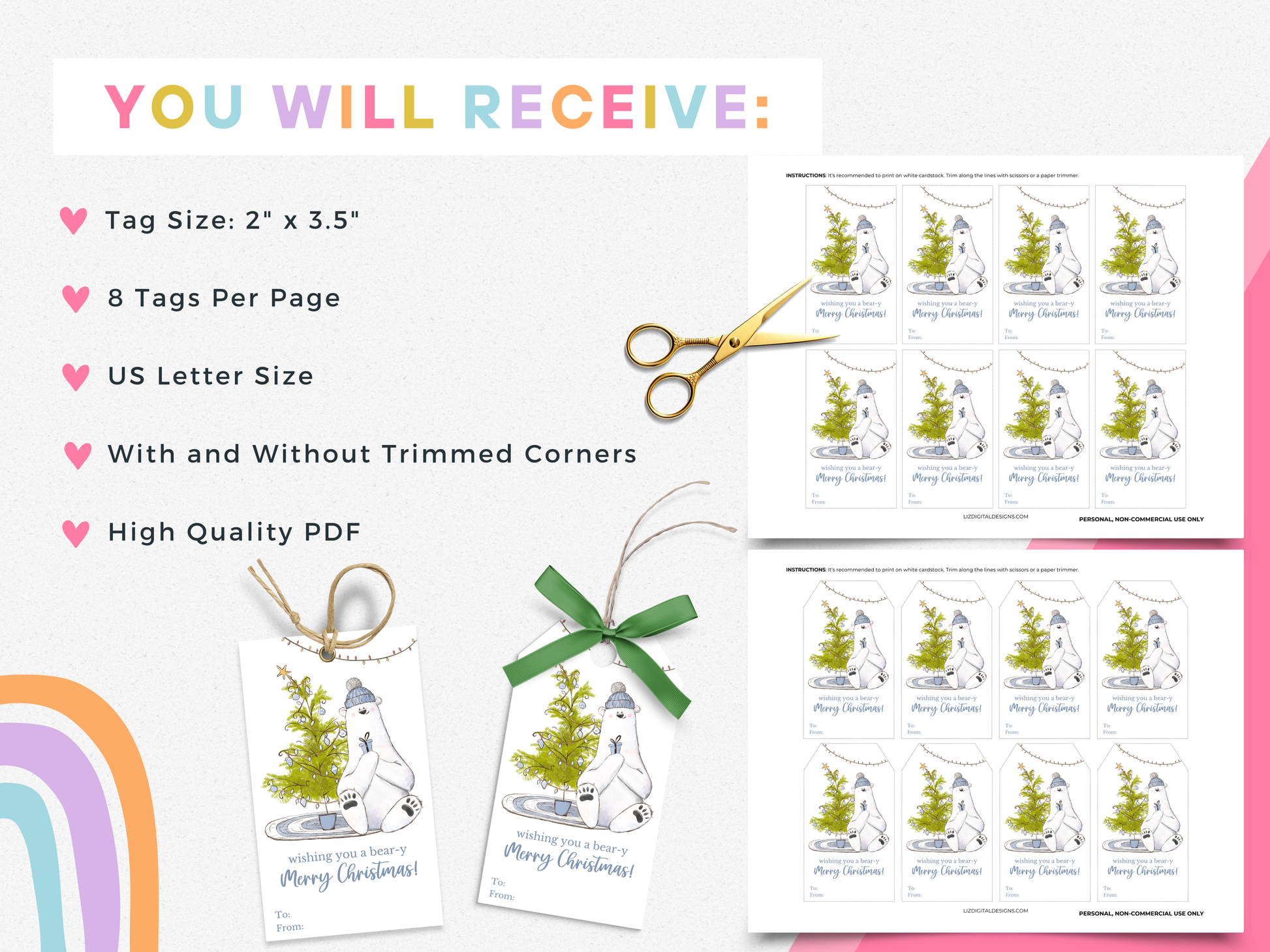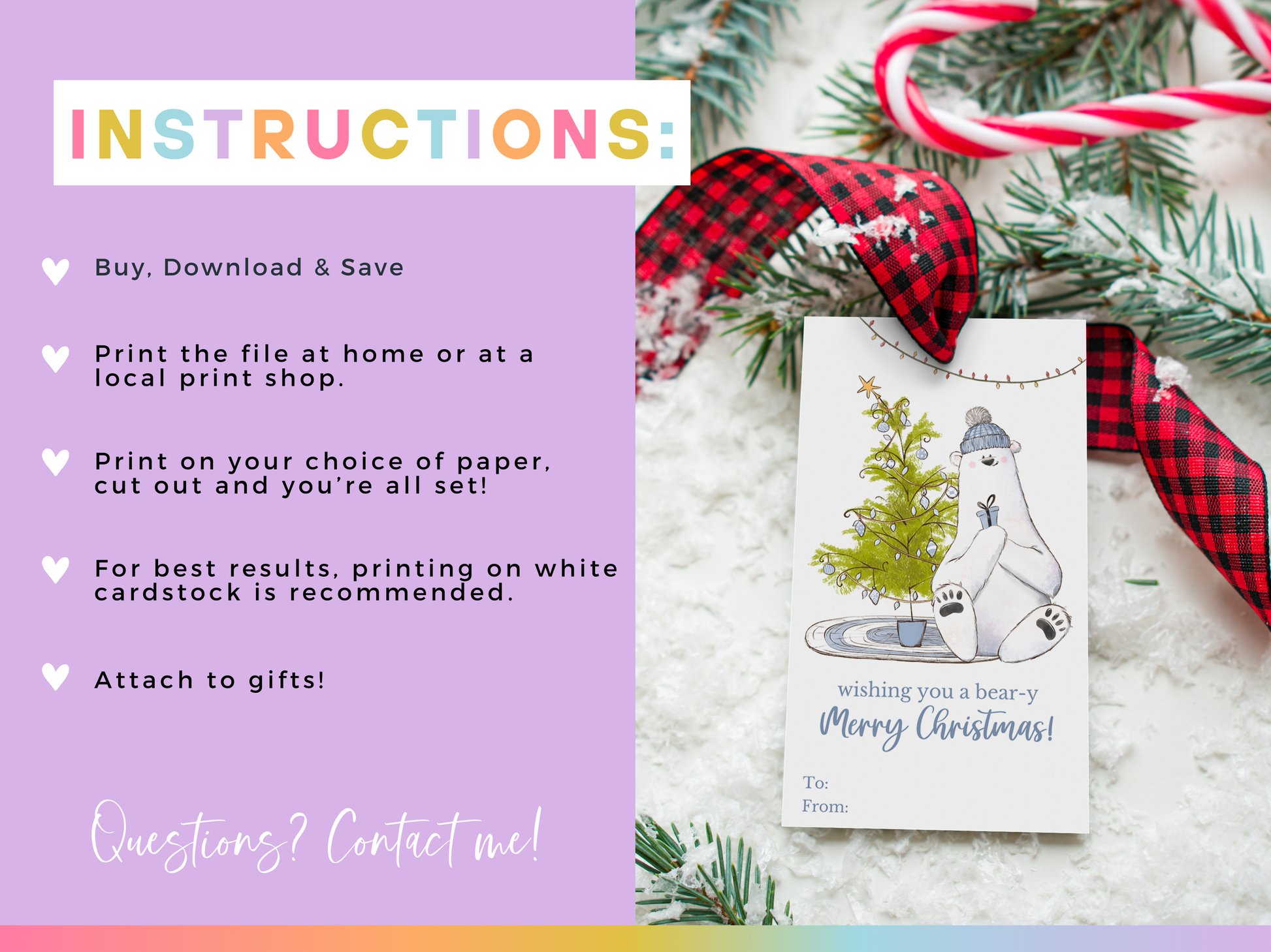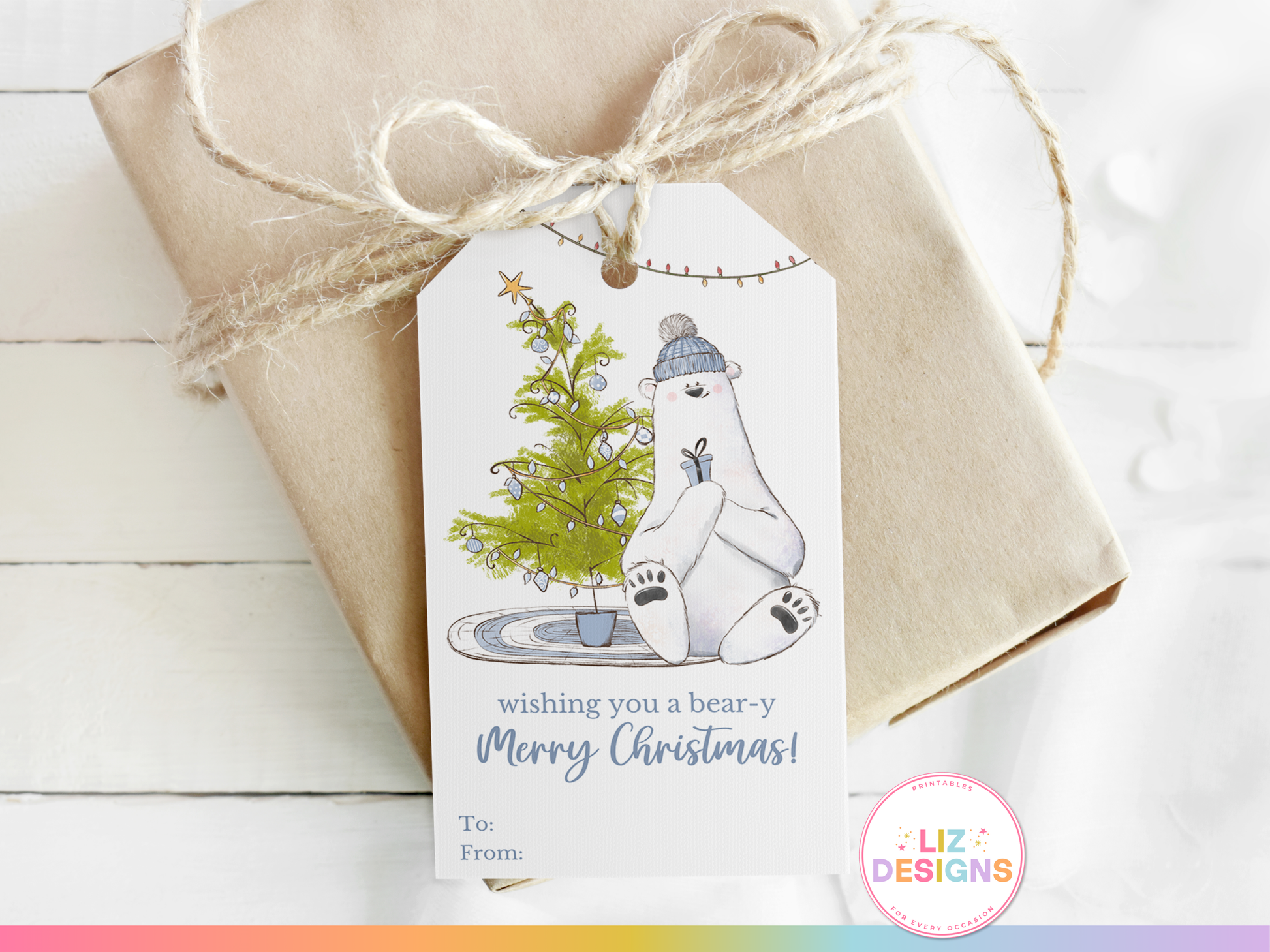 Add this adorable ππππ-π πππππ πππππππππ πππ π πππ to your presents today! Featuring a cozy polar bear holding a gift by a beautifully decorated Christmas tree, this printable gift tag is perfect for all your holiday gift wrapping needs. Use this versatile holiday tag as Christmas favor tags, treat tags, or for any special occasion this season.