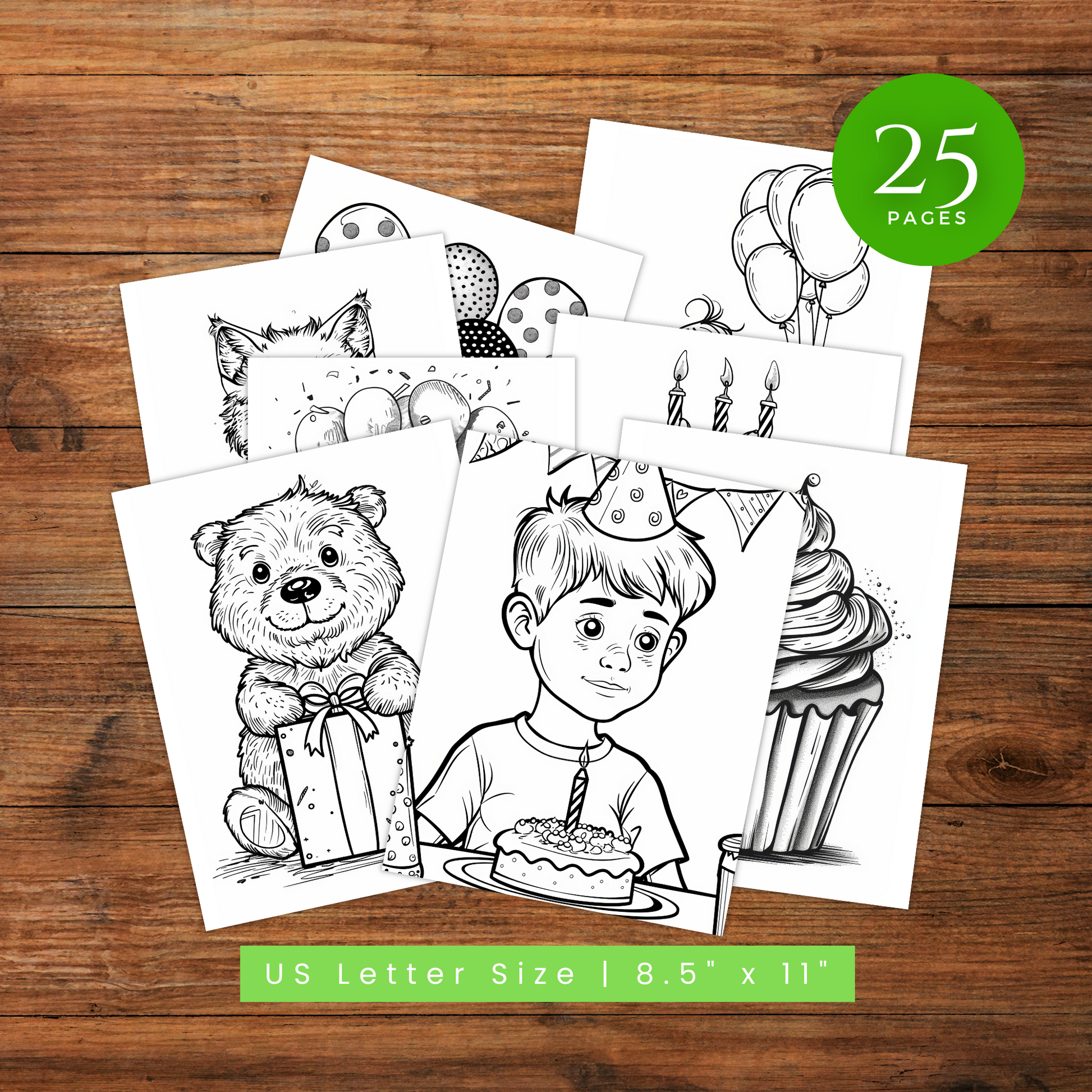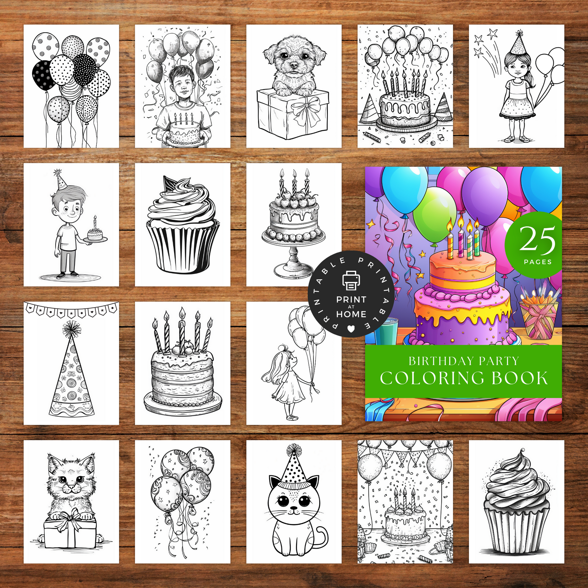 This coloring book is suitable for all ages as a gift of creativity and a fun and interactive way to keep everyone entertained! The Birthday Party Coloring Book features a variety of designs that are the ideal birthday activity for a memorable celebration. Available for instant digital download in both JPG and PDF formats.