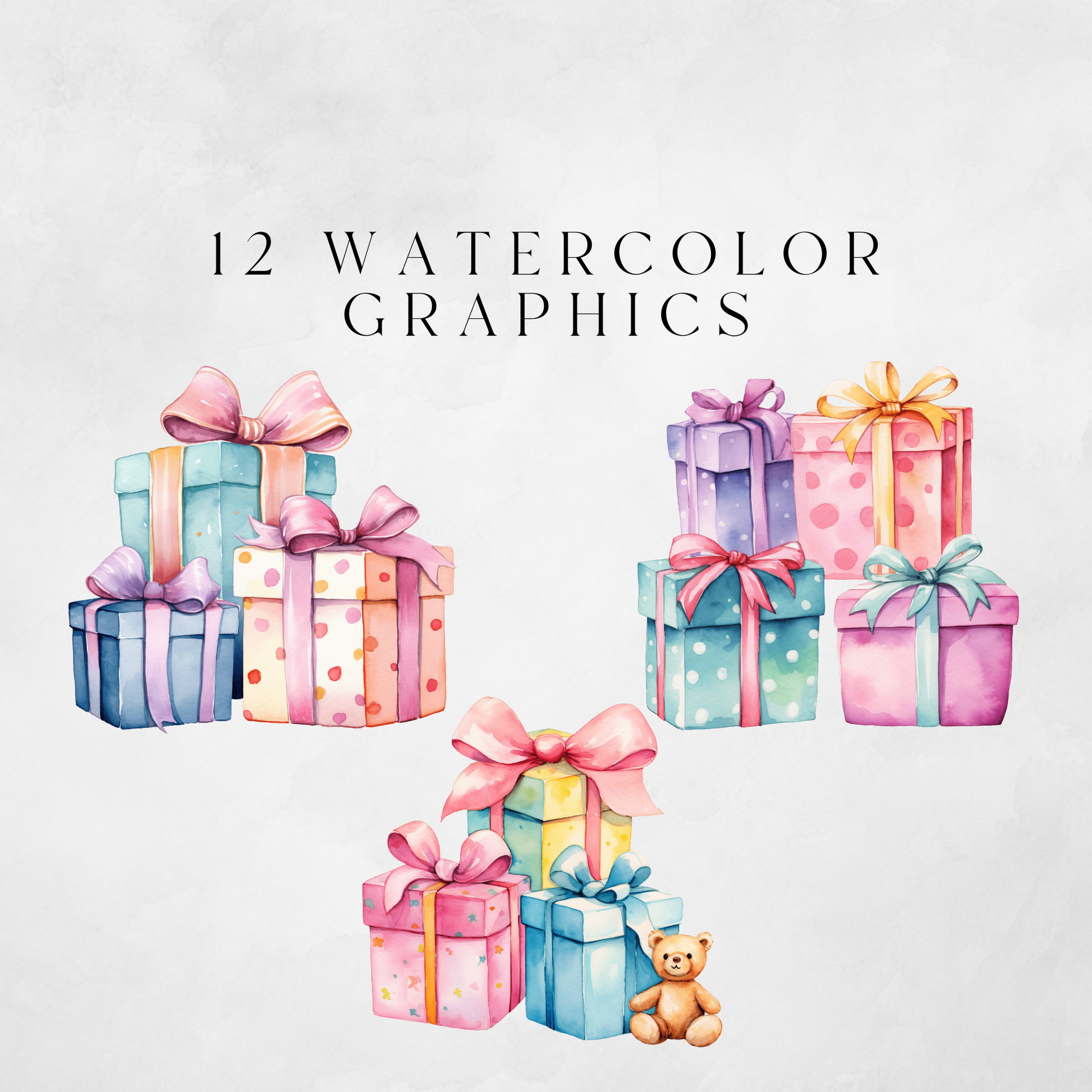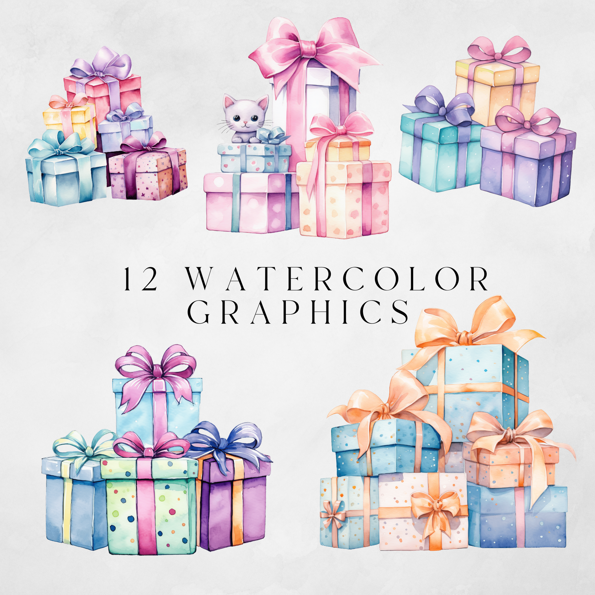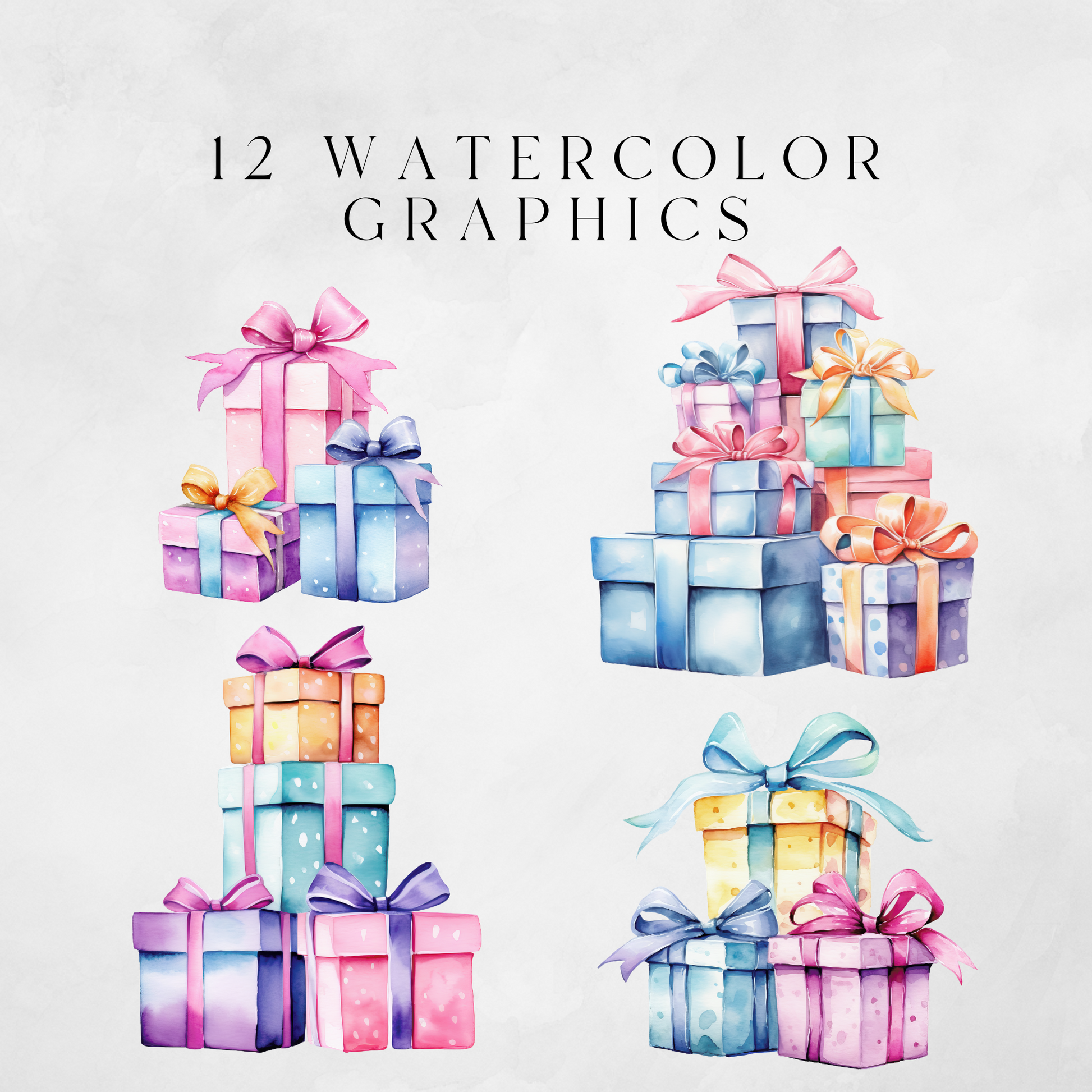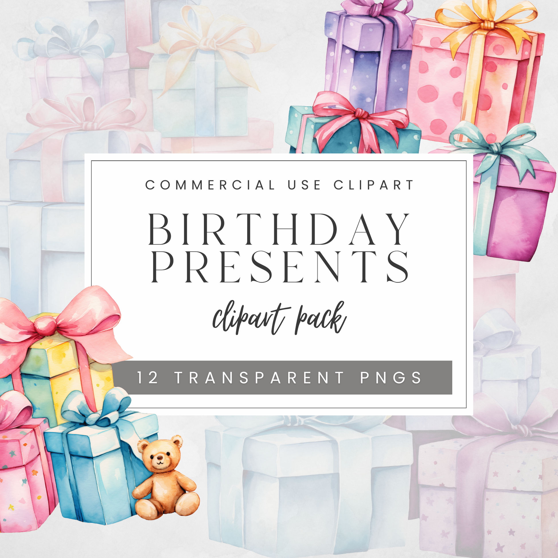 Introducing the Birthday Presents Clipart Pack! Featuring vibrant pastel illustrations of birthday presents, perfect for creating greeting cards, birthday invitations, decorations, party favors, personalized gifts, and other birthday and party themed creations!