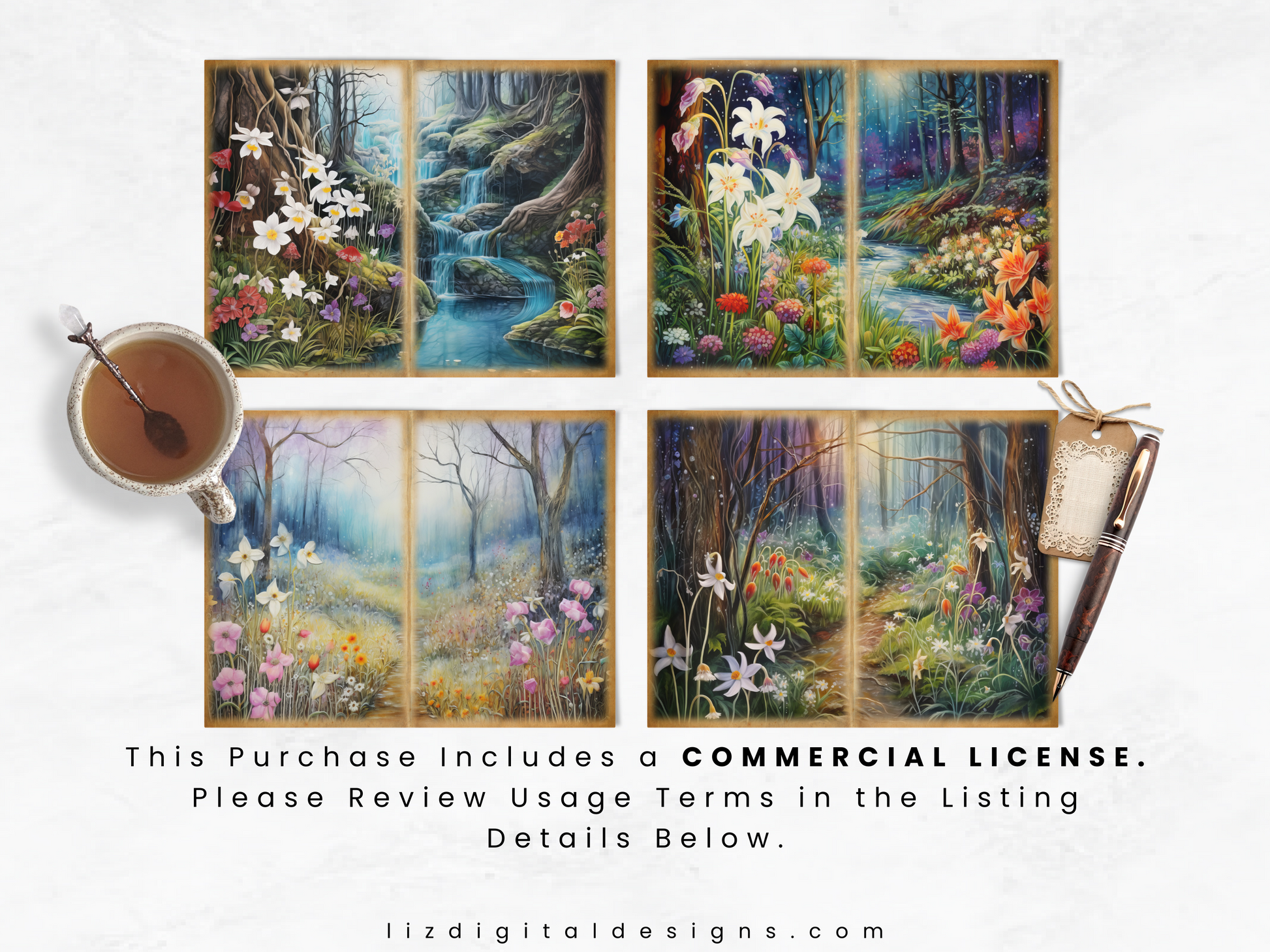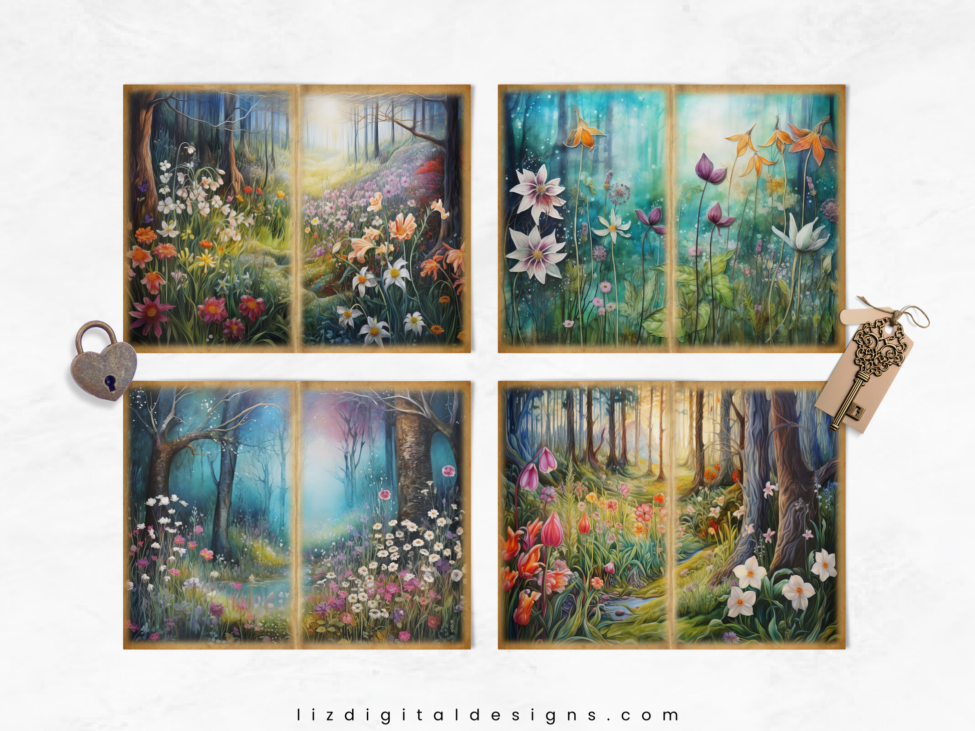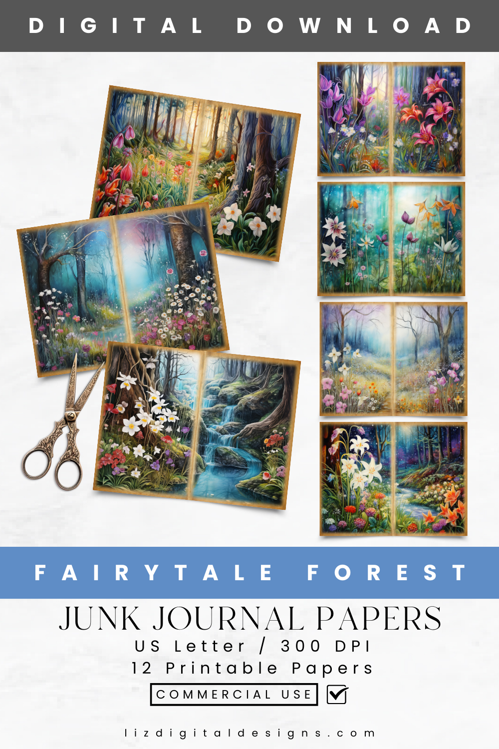 Introducing the Fairytale Forest Junk Journal digital papers! Whether you're a junk journal enthusiast, avid scrapbooker, or a passionate creative and art journaler, these versatile papers are perfect for crafting a nature-themed junk journal, scrapbook, or any other paper art project. Use them in your collages, stationery, cards, invitations, scrapbooks, memory books, journals, planners, digital art and more today!