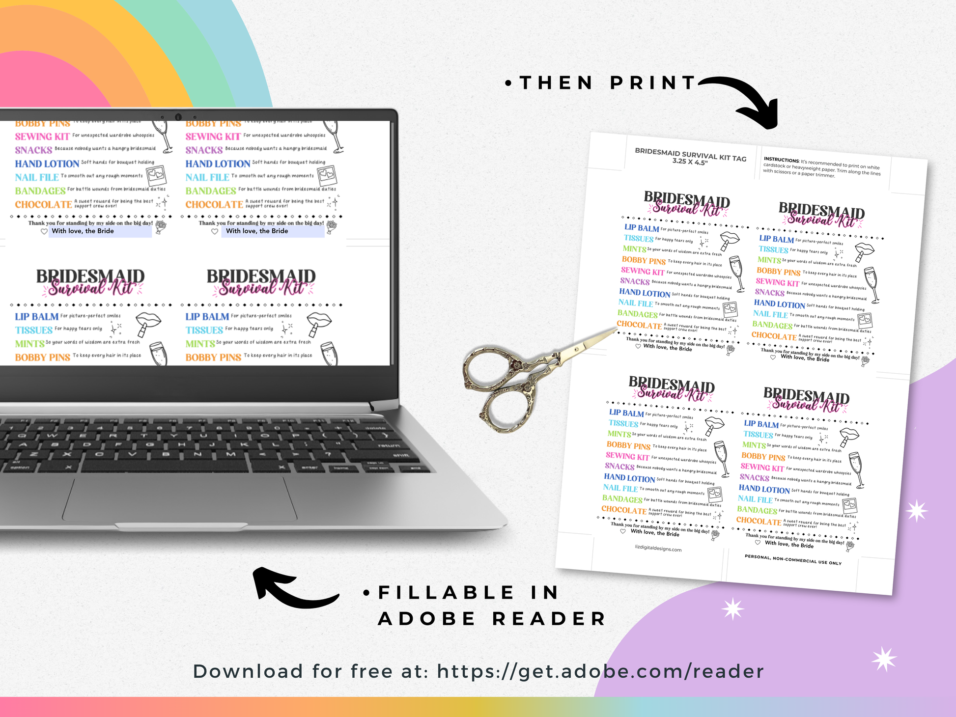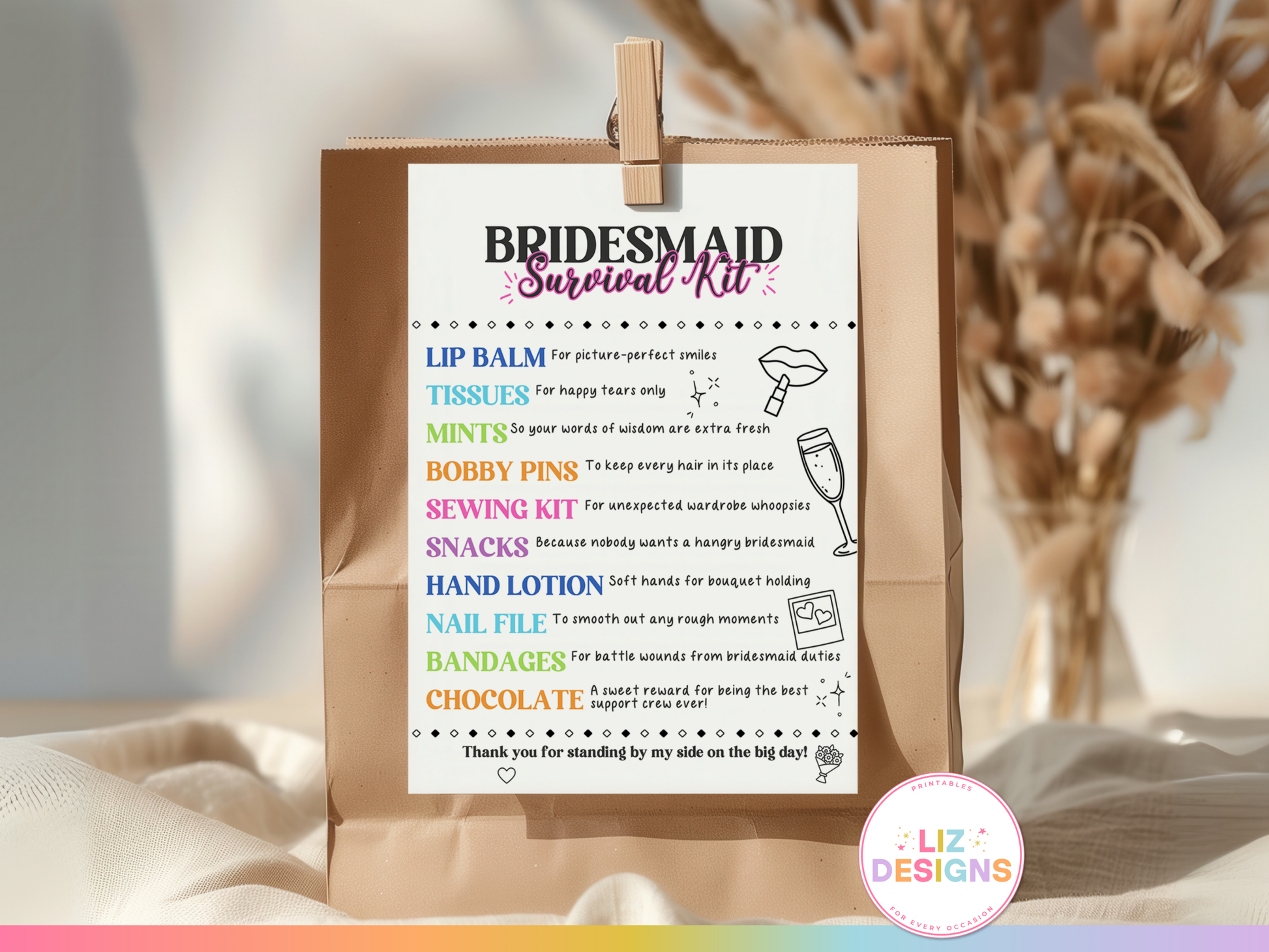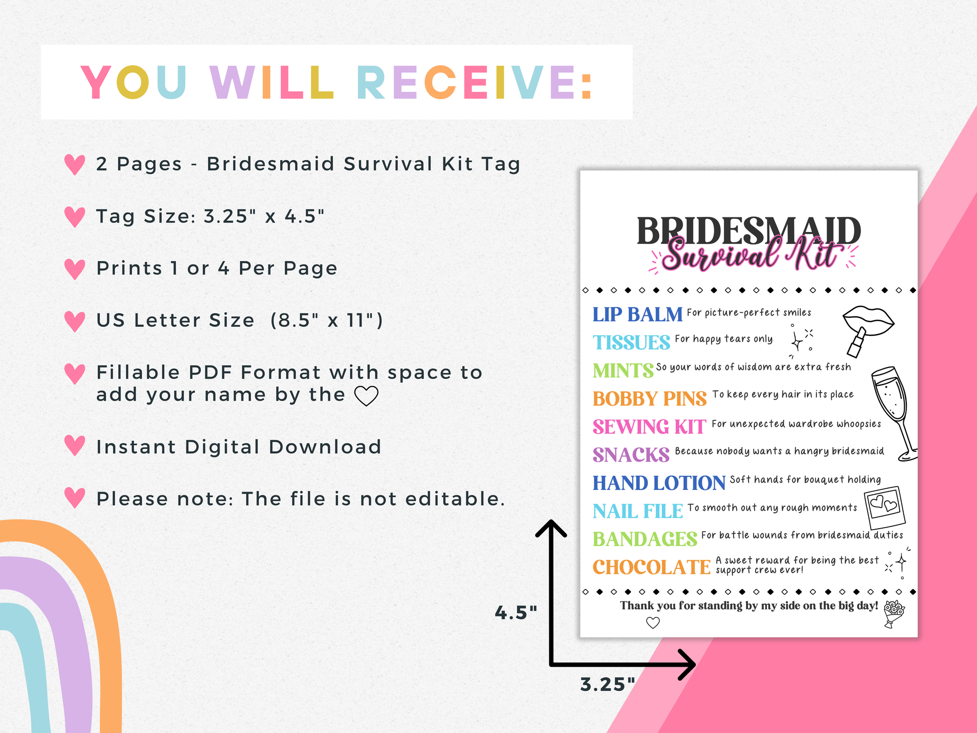 Whether you fill your kits with mints, tissues, snacks, or self-care items, this tag adds the finishing touch to your gift bags. Itβs an easy and affordable way to thank your I Do Crew for standing by your side!