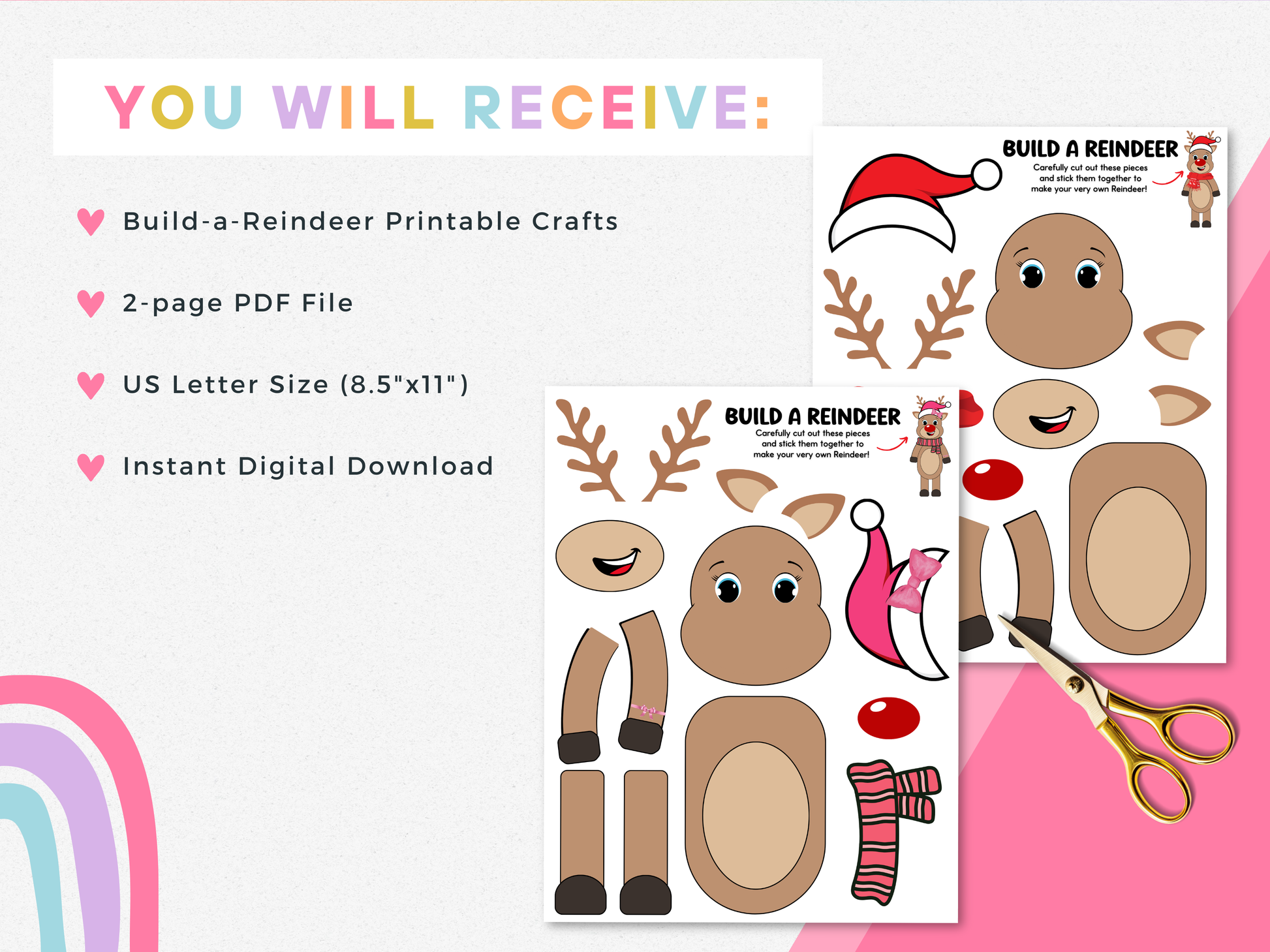 π 2-page "Build a Reindeer" craft designs