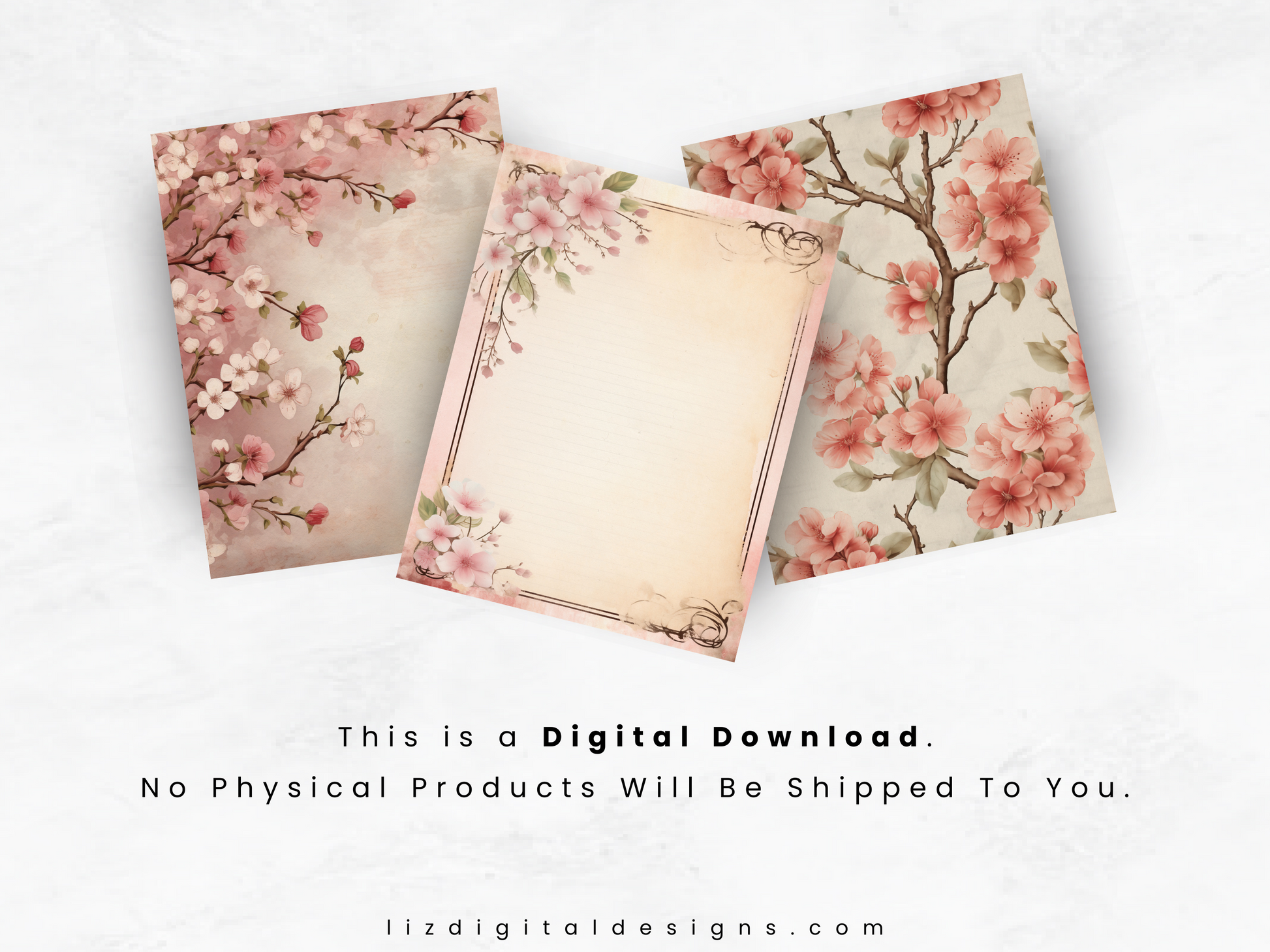 Beautiful, mix of vintage ephemera Cherry Blossom digital papers with real paper textures for all of your creative needs! Whether you're a junk journal enthusiast, avid scrapbooker, or a passionate creative and art journaler, these versatile papers are designed to inspire. Use them in your collages, stationery, cards, invitations, scrapbooks, memory books, journals and planners today!