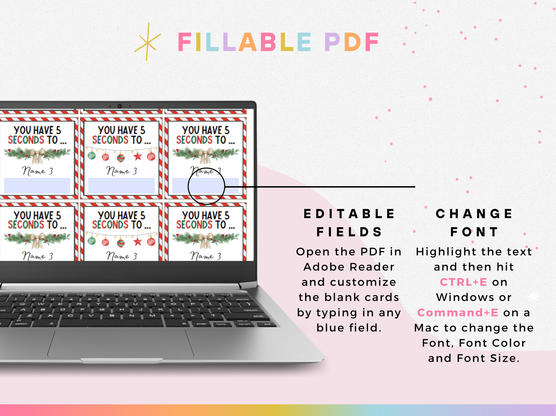 π Optional: Use the 12 blank, fillable PDF cards to create custom prompts tailored to your family traditions, favorite holiday memories, or inside jokes for a unique, festive twist!