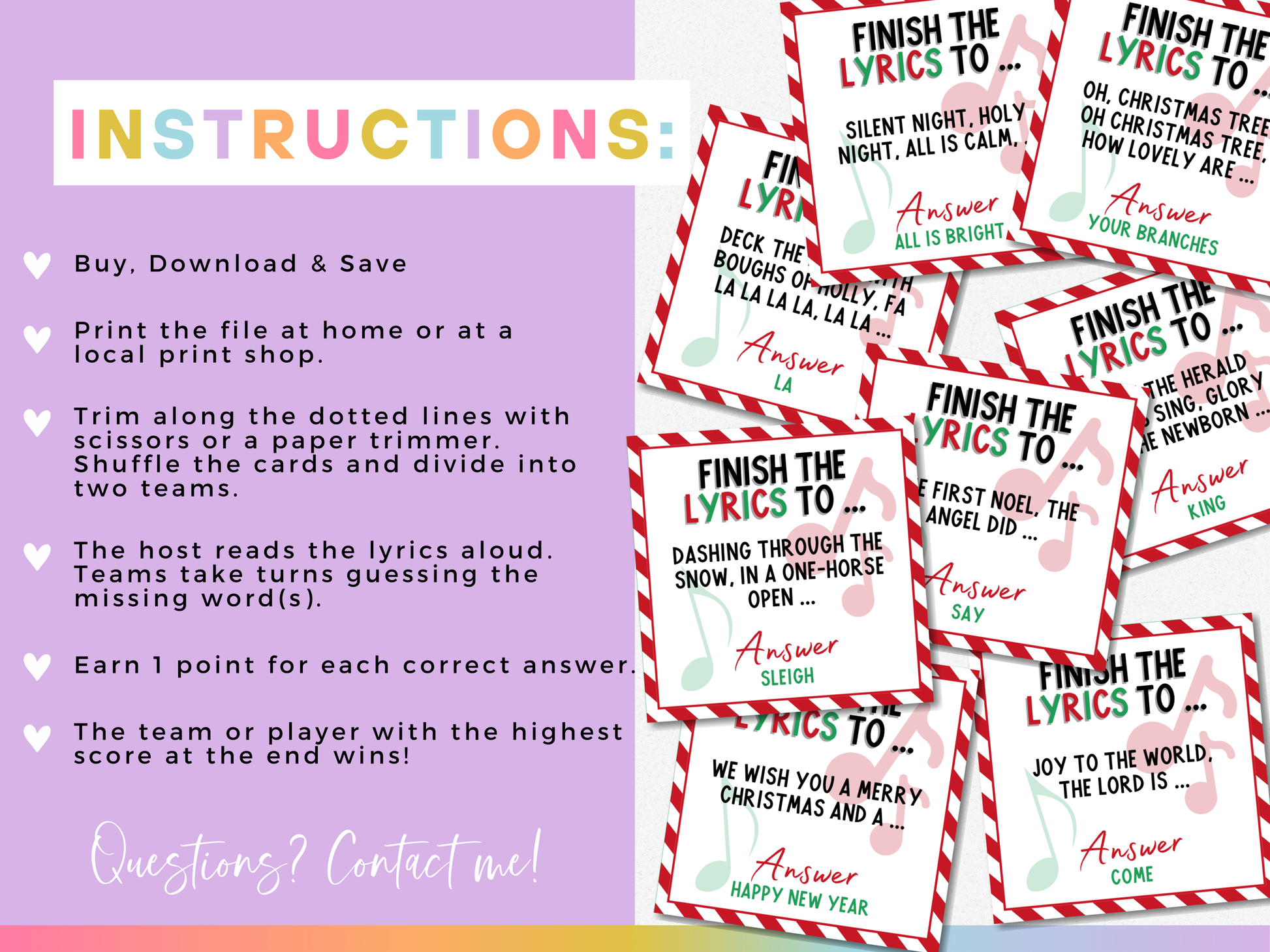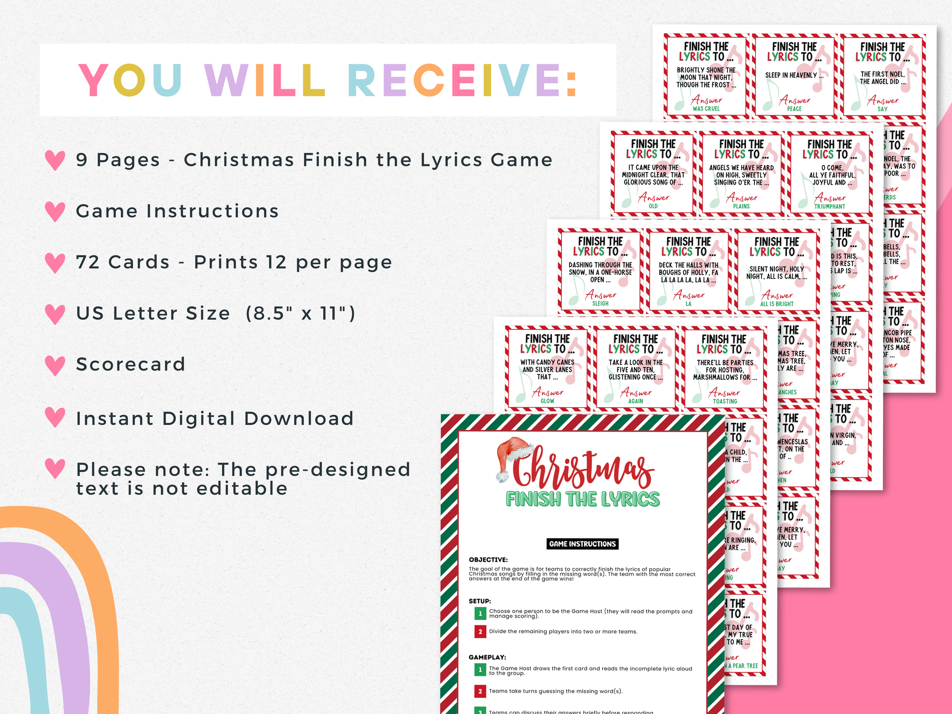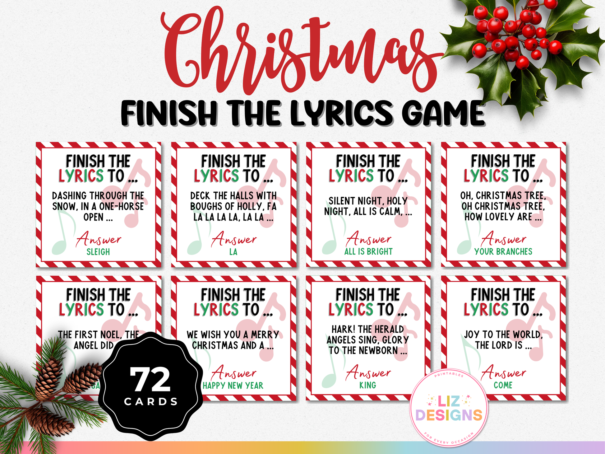 π "Christmas Finish the Lyrics Game" - 72 unique game cards
