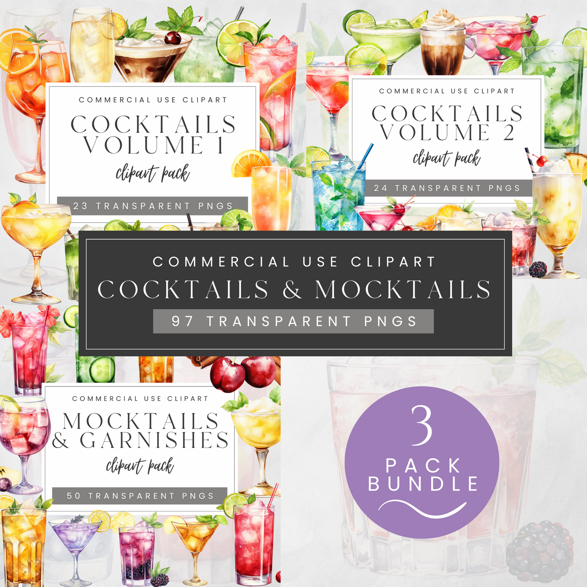 The ๐๐๐๐๐๐๐๐๐ ๐๐๐๐๐๐๐ ๐๐๐๐๐๐ consists of 97 transparent PNG images of vibrant watercolor cocktails, mocktails and garnishes! This bundle includes the Cocktails Vol 1, Cocktails Vol 2 and Mocktails & Garnishes Clipart Pack.ย