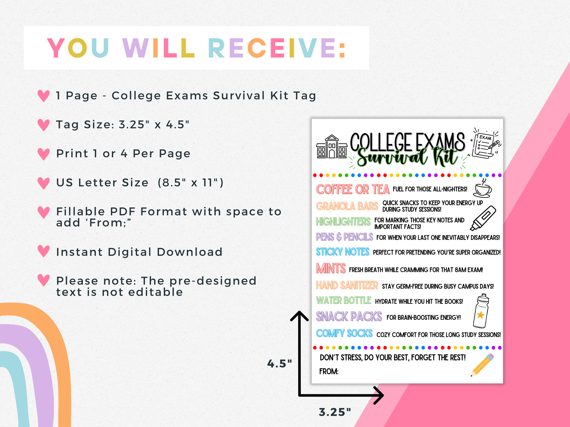 College Exams Survival Kit Tags