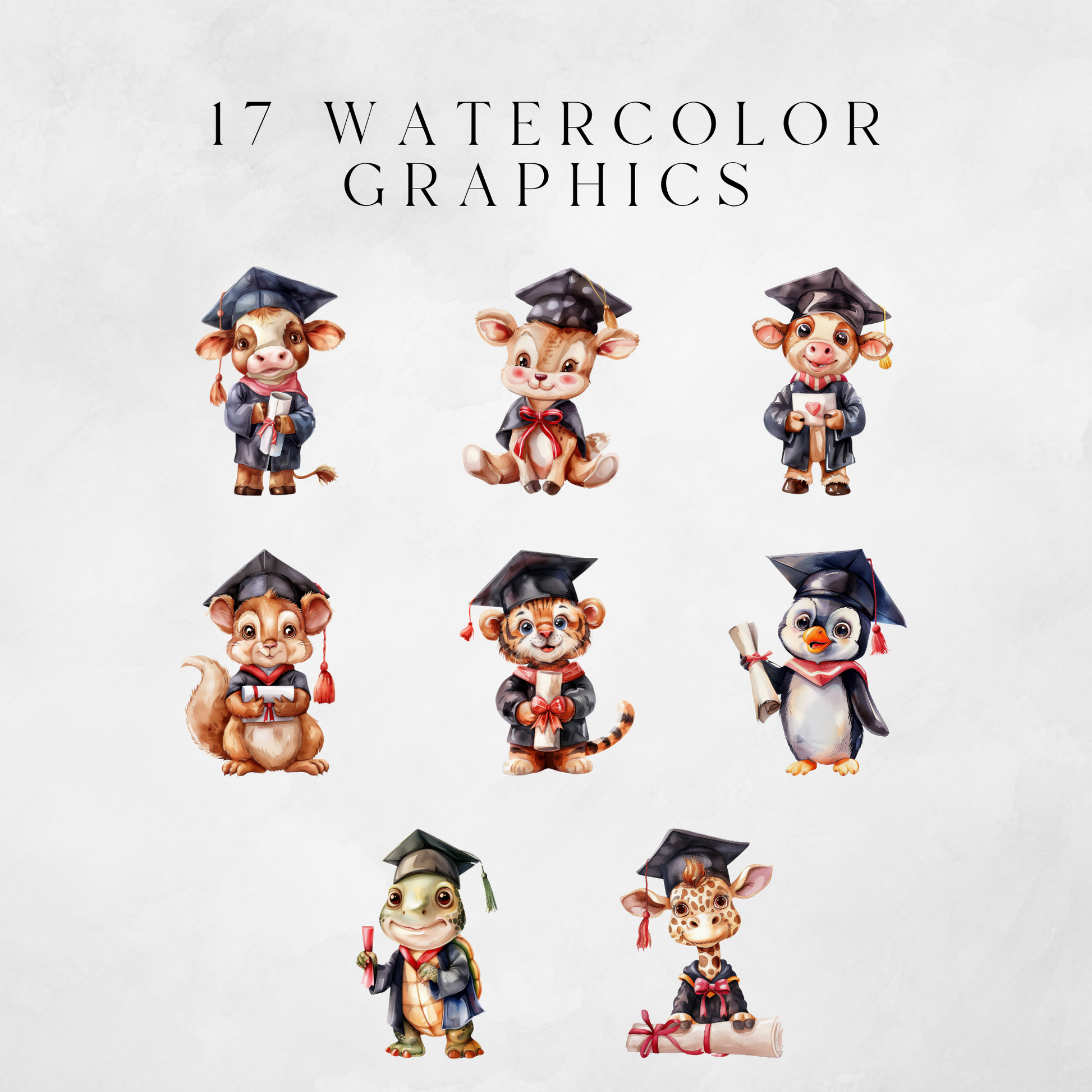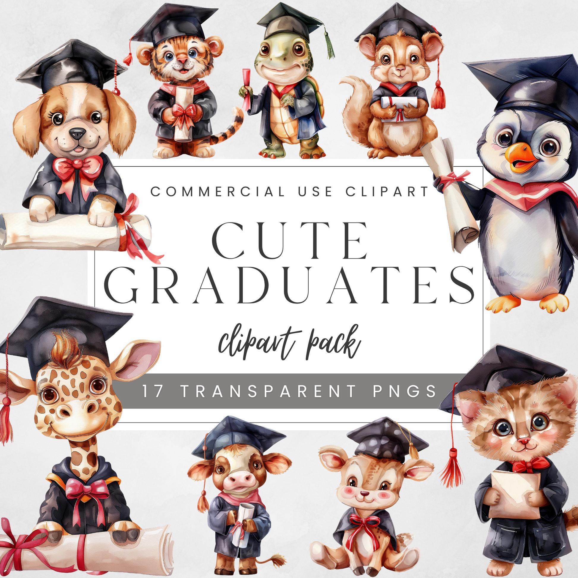 The ππππ πππππππππ πππππππ ππππ features 17 transparent PNG images of adorable animal graduates in their cap and gown. These versatile illustrations are perfect for both personal and commercial projects such as creating greeting cards, invitations, printables, physical stickers, decorations or use in scrapbooks, junk journals, PODs and more!