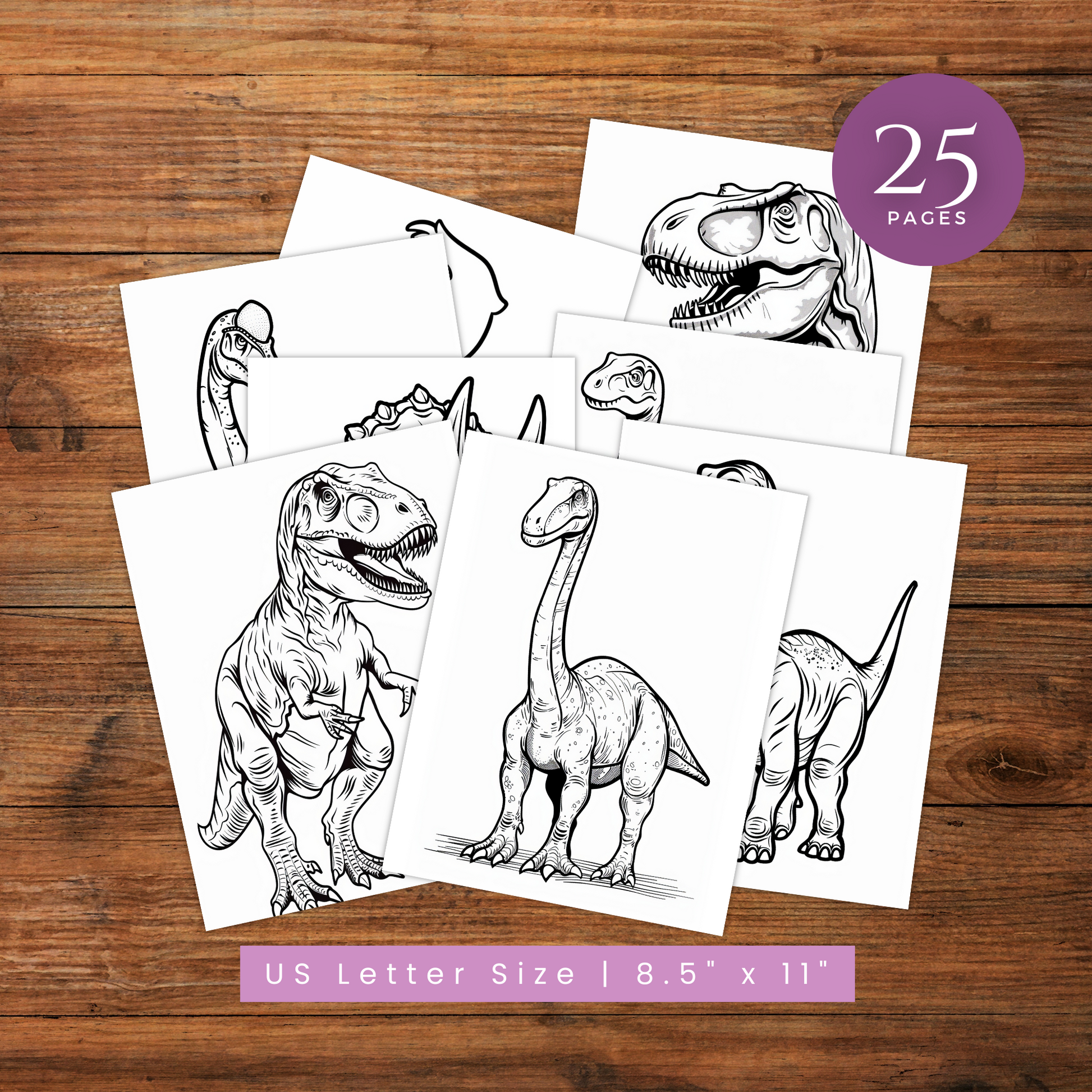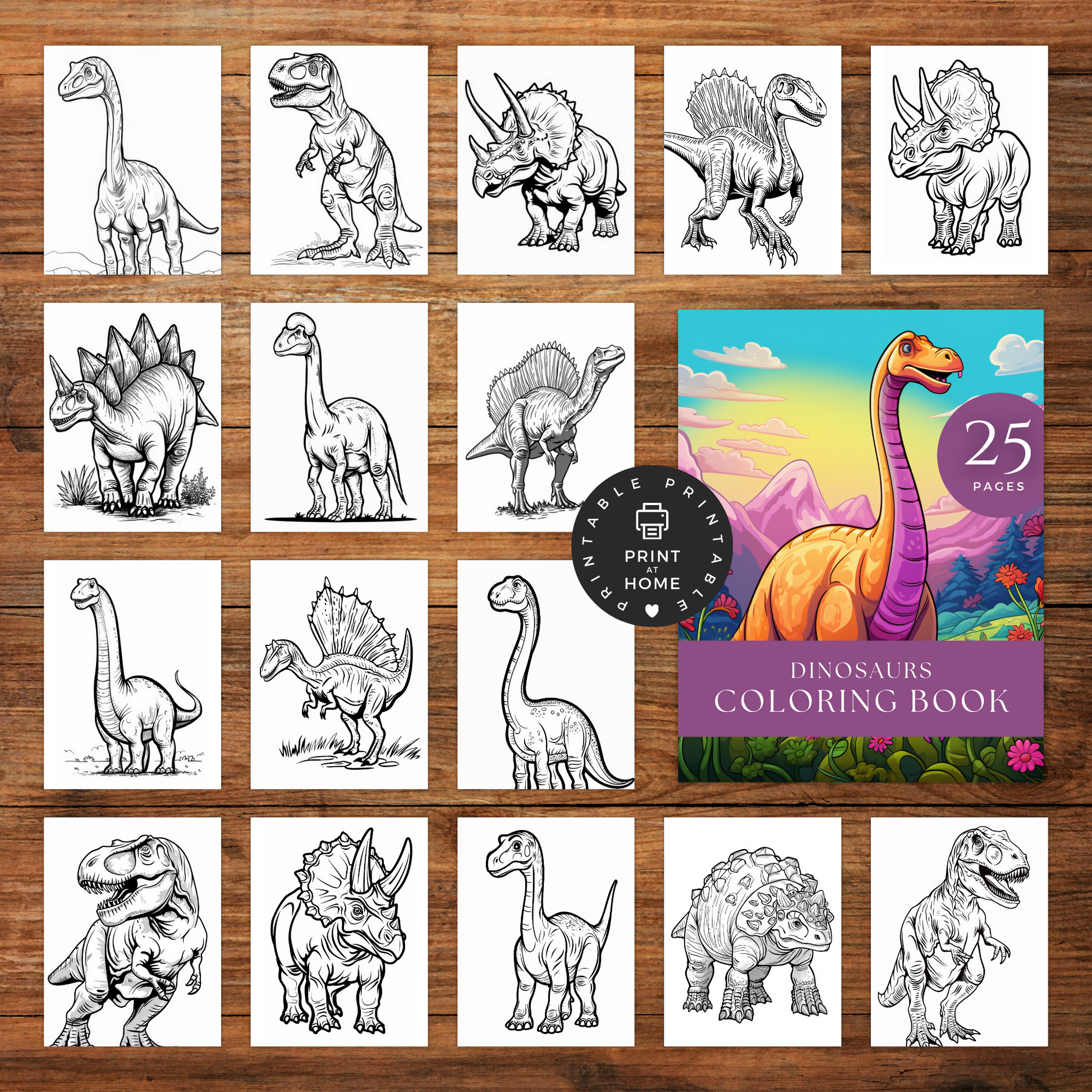 Prepare for hours of fun and creativity with the Dinosaurs Coloring Book! Perfect for dinosaur enthusiasts of all ages. This printable coloring book is available as a digital download in JPG and PDF format.