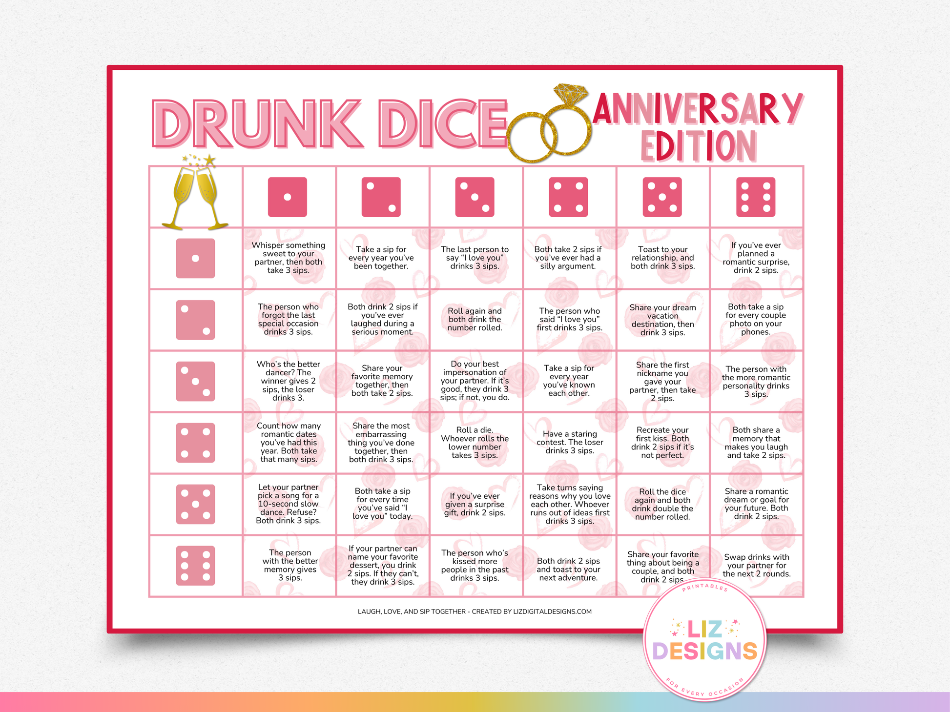 Celebrate your love and laugh together with the πππππ ππππ - πππππππππππ πππππππ! This printable drinking game for couples is the perfect way to toast to your relationship while having a fun and interactive evening. Whether you're celebrating an anniversary, planning a cozy date night, or hosting a romantic Valentineβs Day celebration, this game is packed with sweet, playful, and boozy prompts to keep the drinks (and love!) flowing.