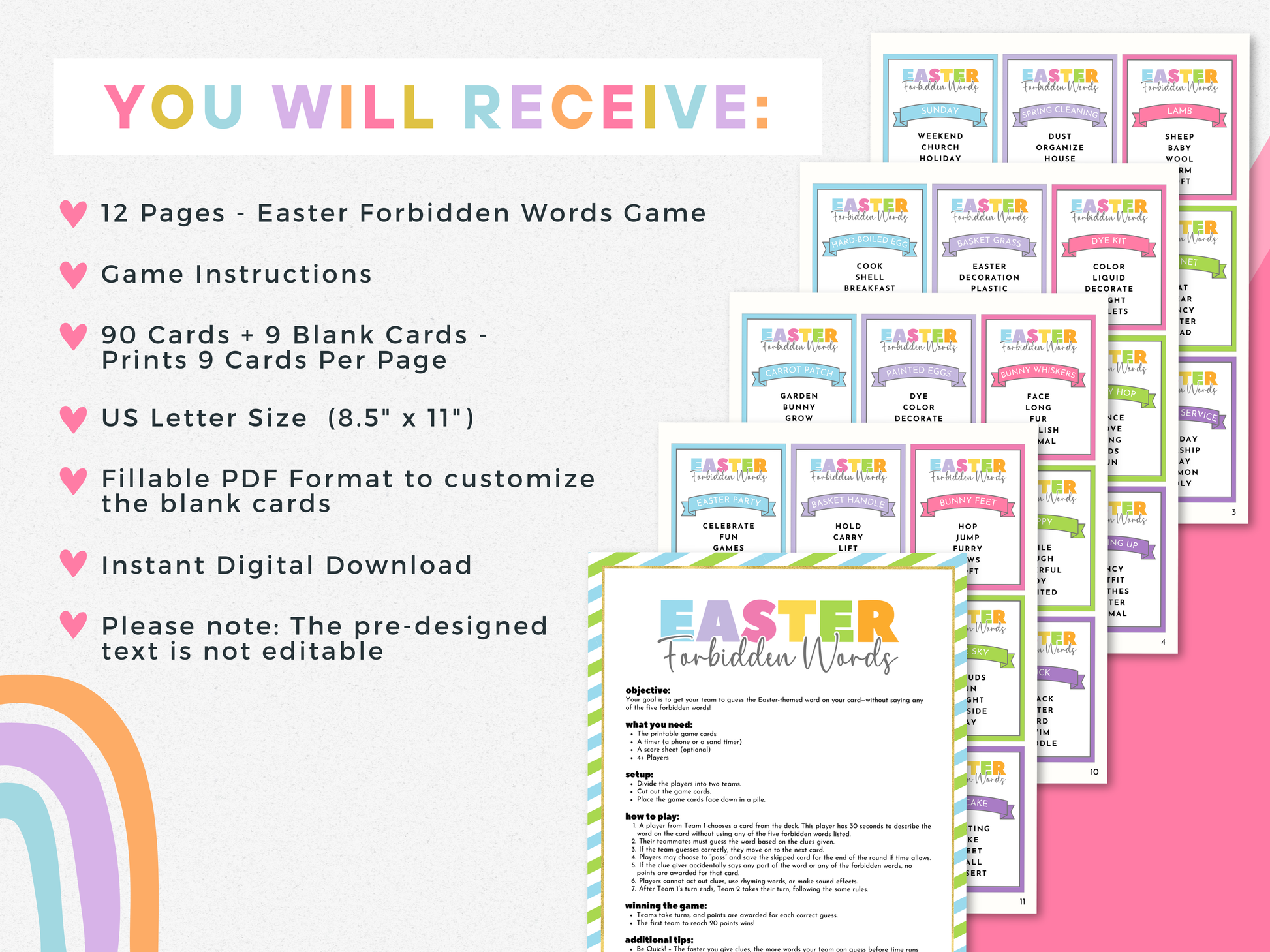 π 90 ready-to-play game cards filled with Easter-themed prompts