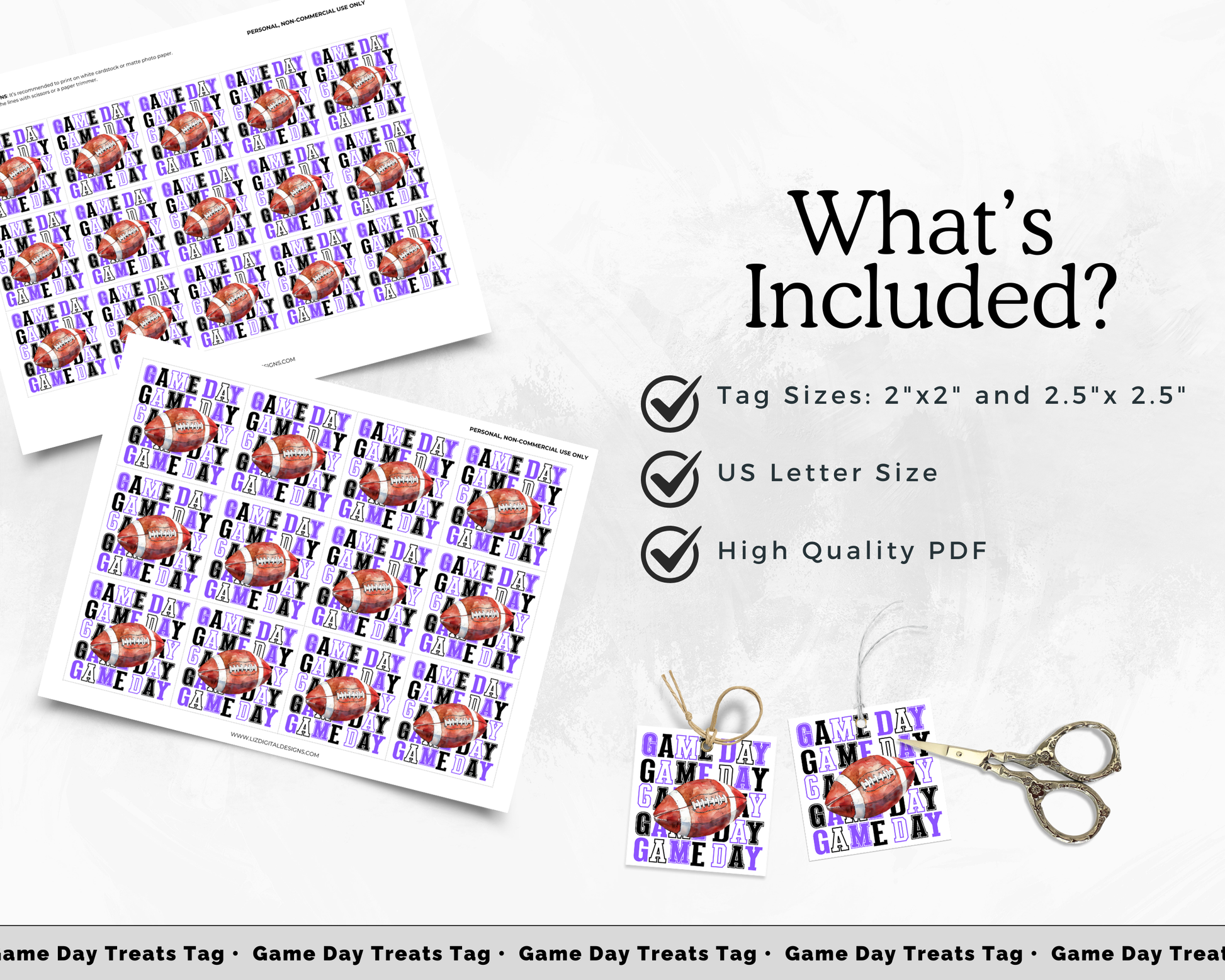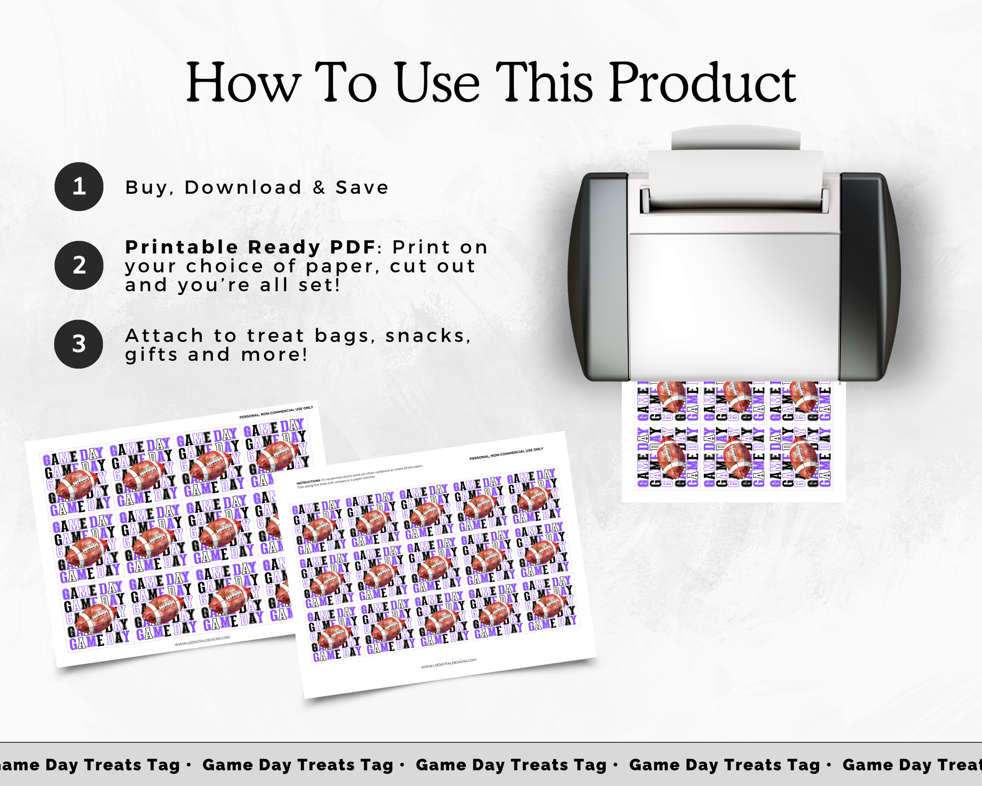 πππππππ ππππ πππ πππππ ππππ! Featuring a vibrant watercolor football design and bold 'Game Day' text, these tags are perfect for football parties and games, tailgates, and team events. Instantly download and print at home to create fun, themed Sports Party Favor Tags for snacks, treat bags, or party favors. Super easy to use and versatile - just print, cut, and enjoy!