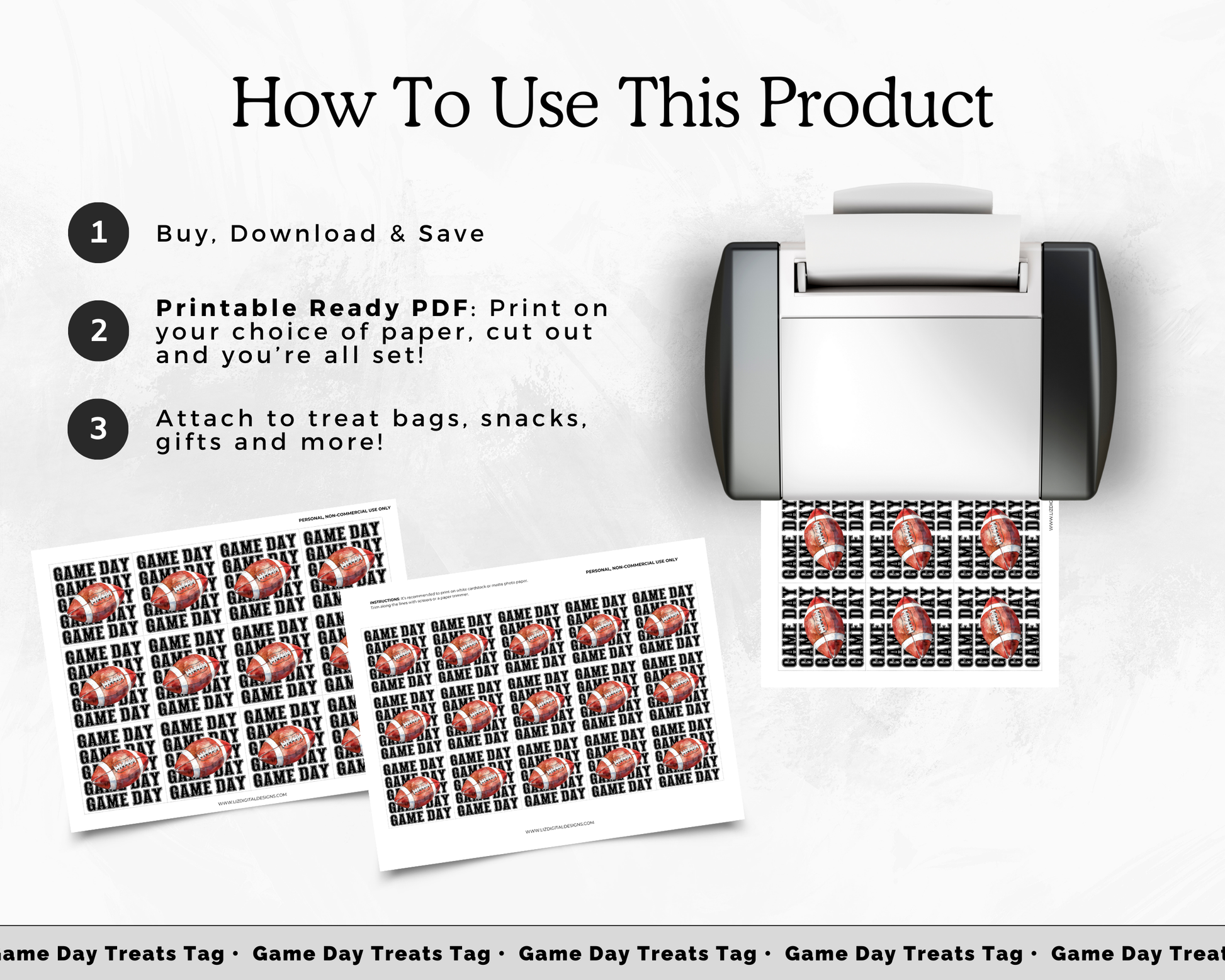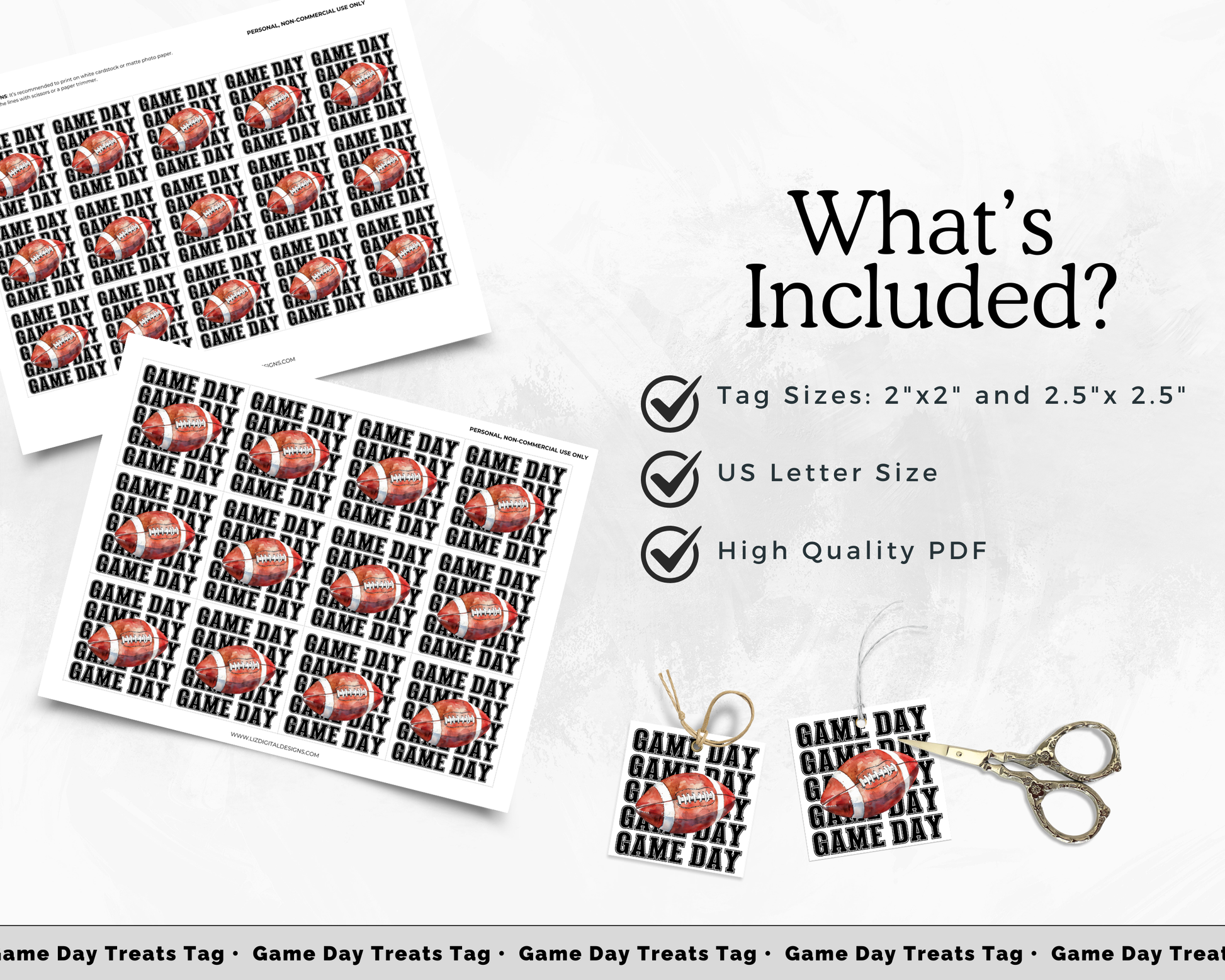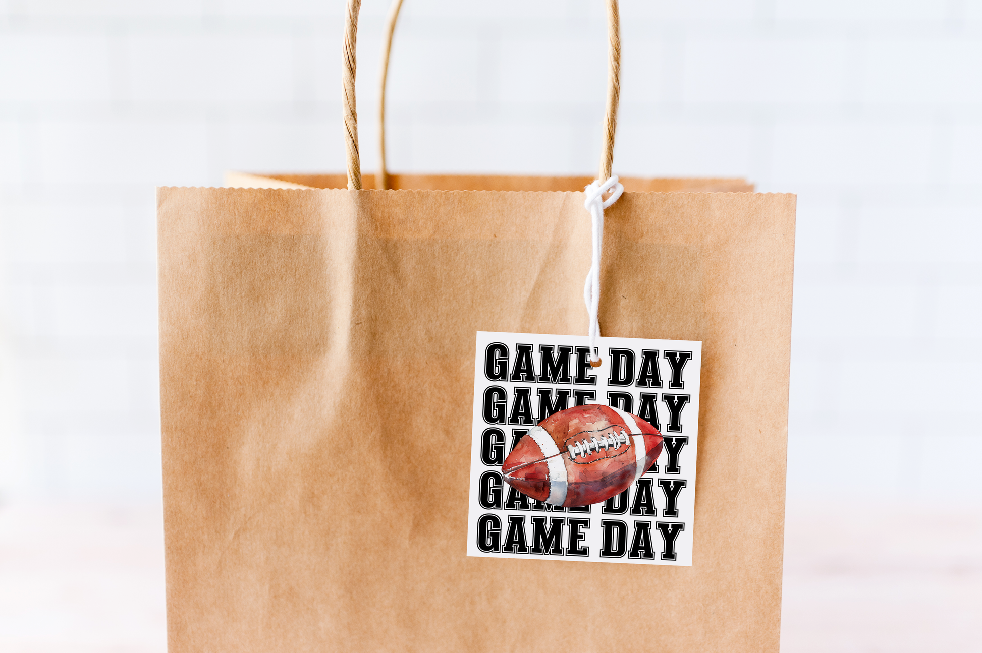 Add excitement to your game day celebrations with these printable π πππππππ ππππ πππ πππππ ππππ! Featuring a vibrant watercolor football design and bold 'Game Day' text, these tags are perfect for football parties and games, tailgates, and team events. Instantly download and print at home to create fun, themed Sports Party Favor Tags for snacks, treat bags, or party favors. Super easy to use and versatile - just print, cut, and enjoy!