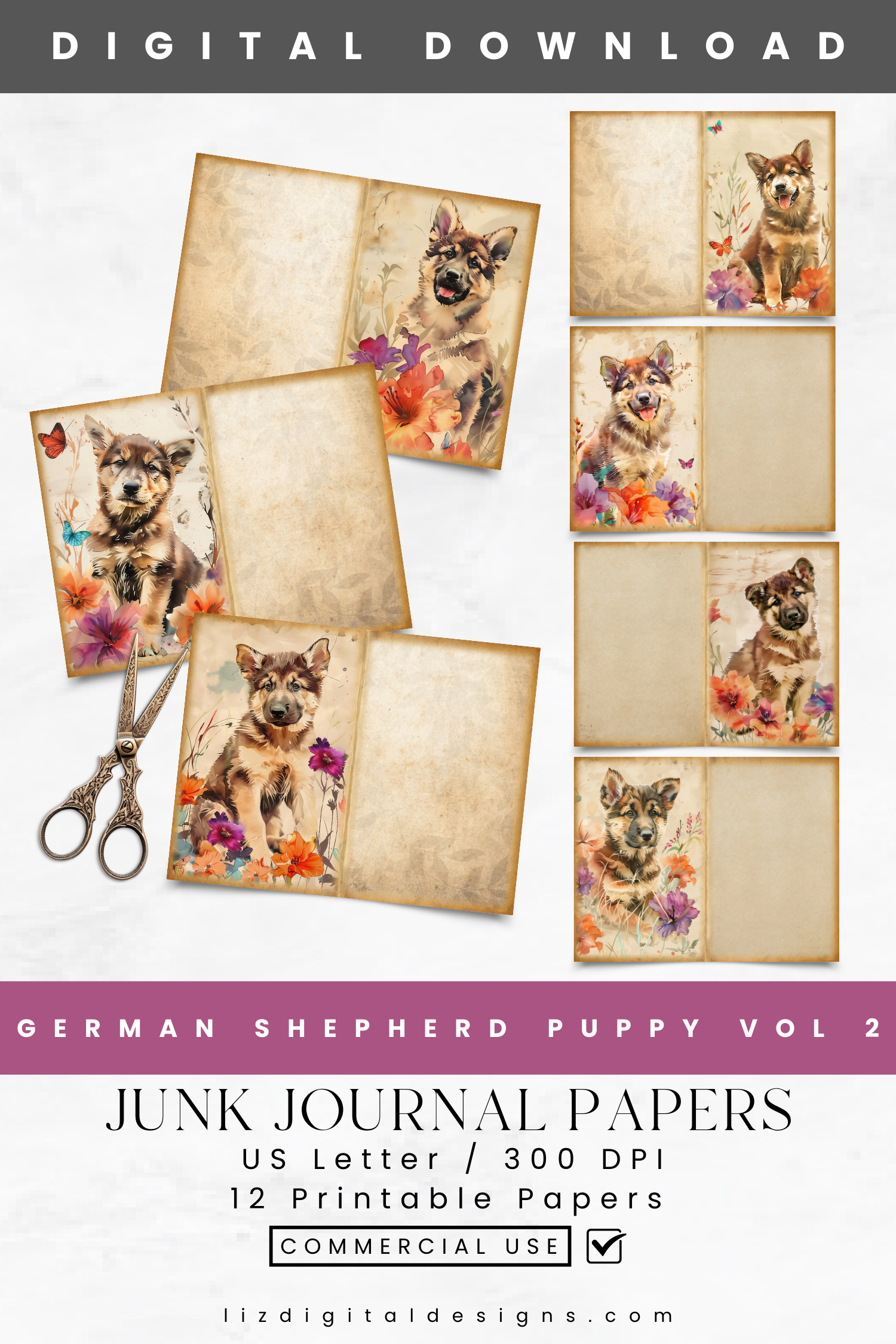 German Shepherd Puppy Vol 2 - Junk Journal & Scrapbooking Paper