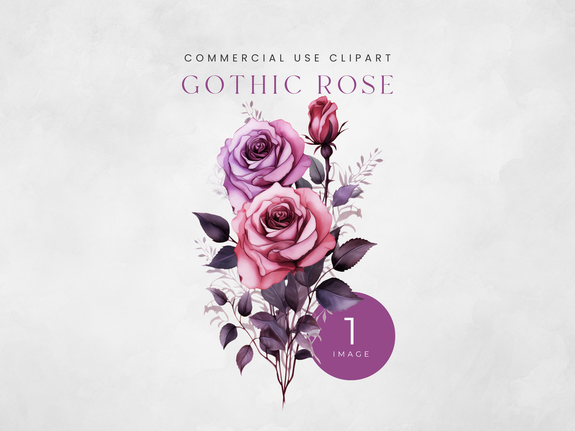 This SINGLE Gothic Rose Clipart is perfect for creating both personal and commercial use projects such as greeting cards, invitations, stationery, decor, stickers, digital designs and more!