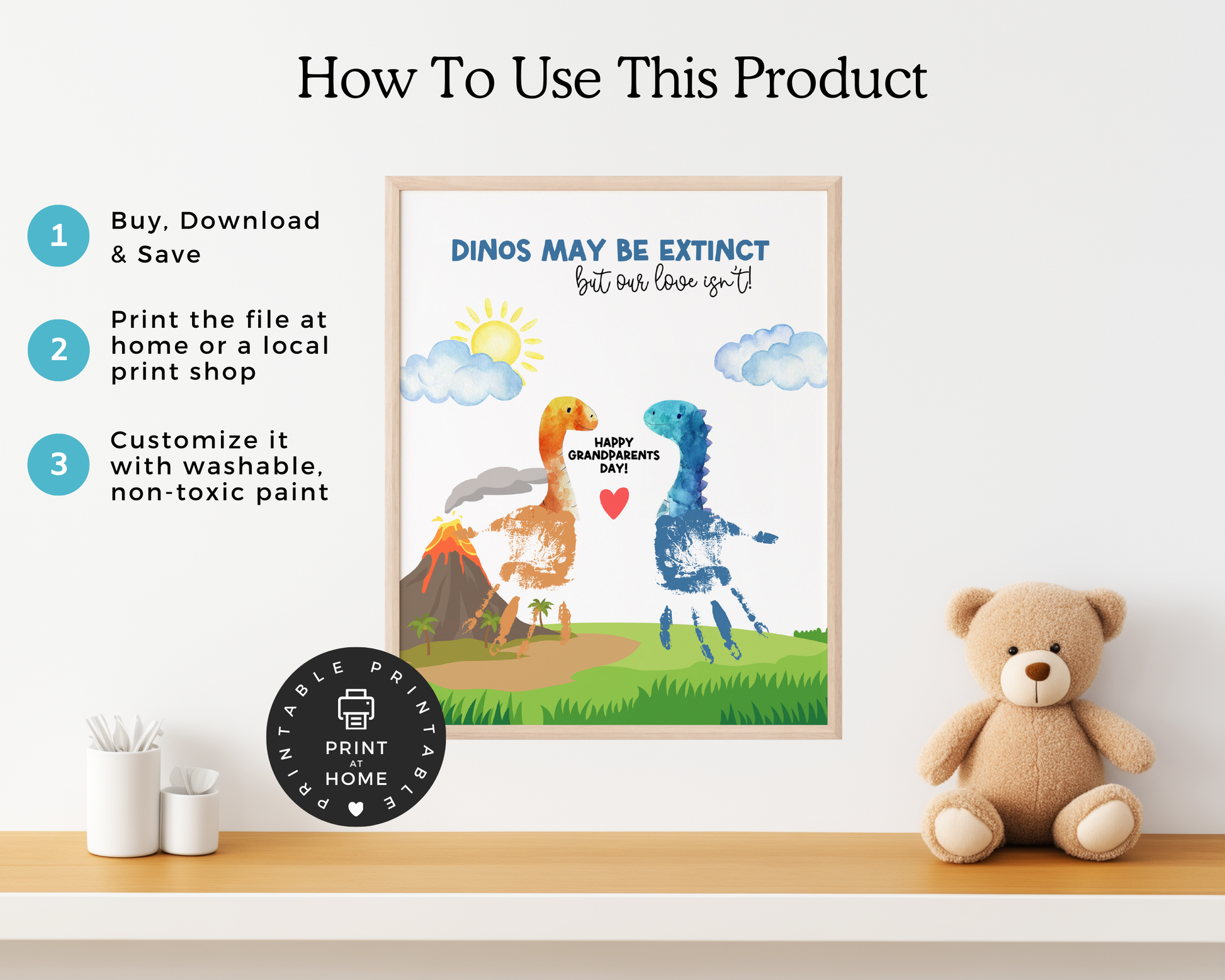 Celebrate Grandparents Day with this this adorable dinosaur ππππππππππππ πππ πππππππππ πππ! This unique keepsake is the perfect way for grandkids to show their love and appreciation to their dino-loving grandparents. Simply add your child's handprints to create a unique and heartfelt gift for Grandma, Grandpa, Nana, Papa, or any special grandparent.