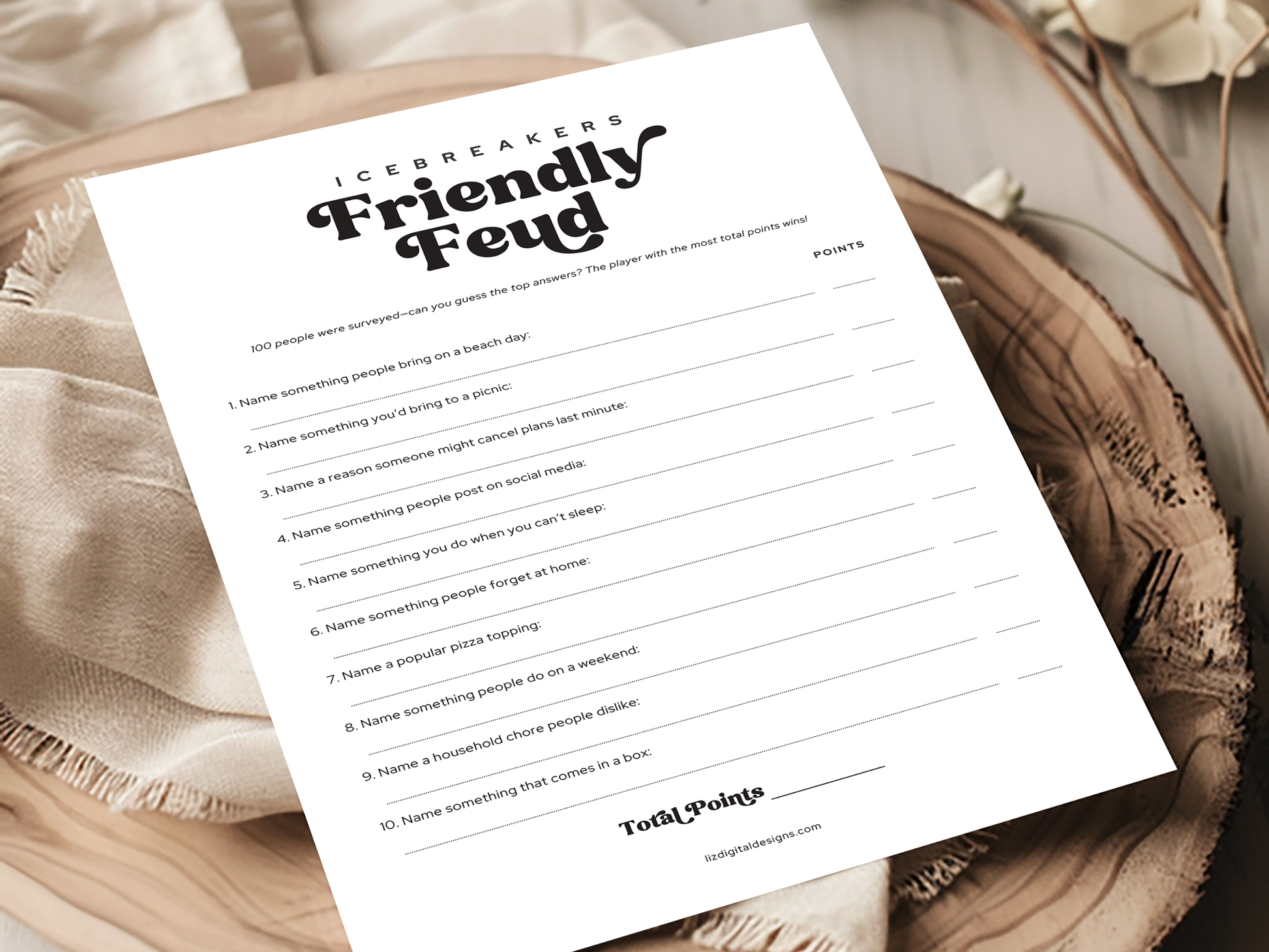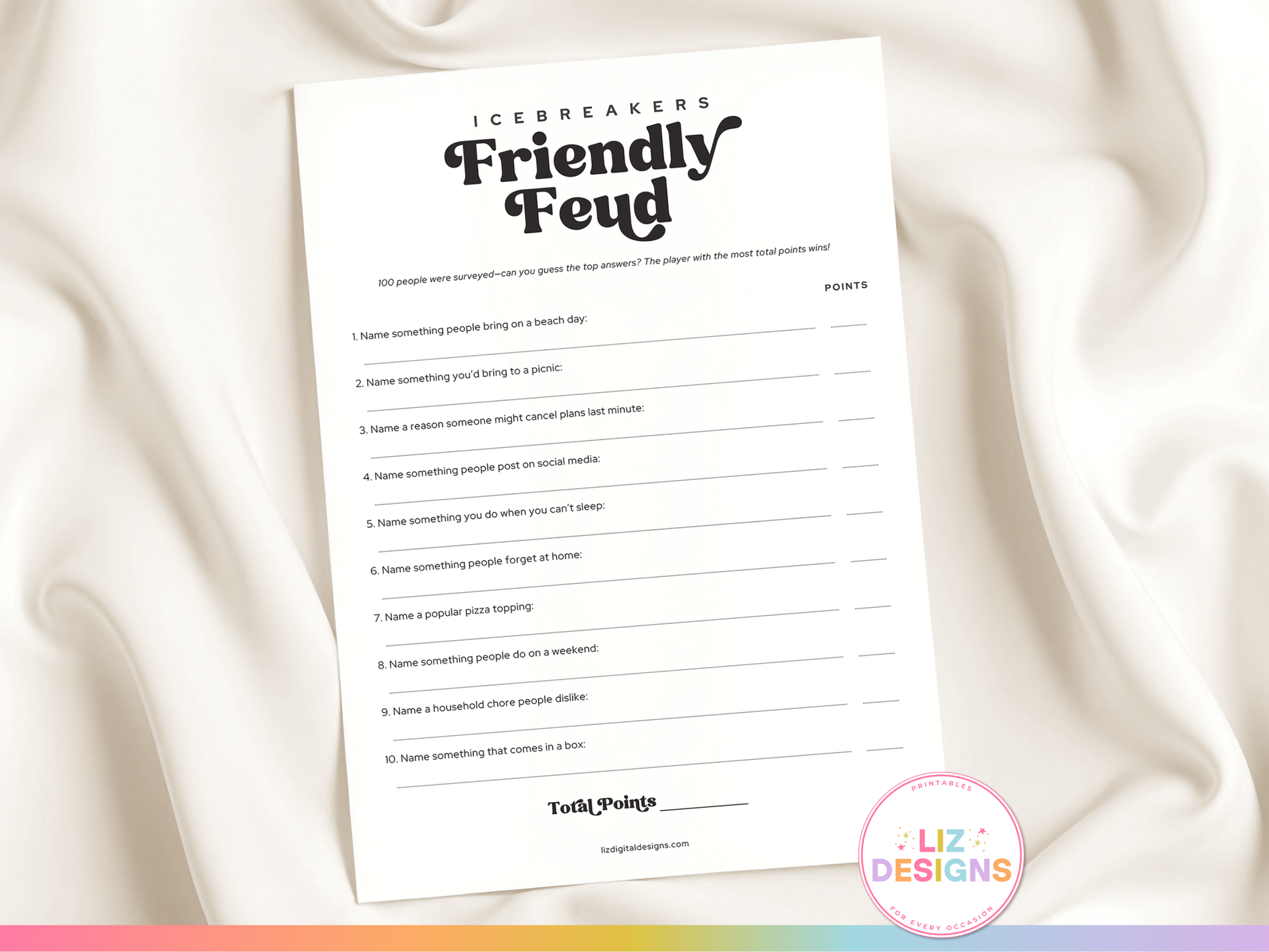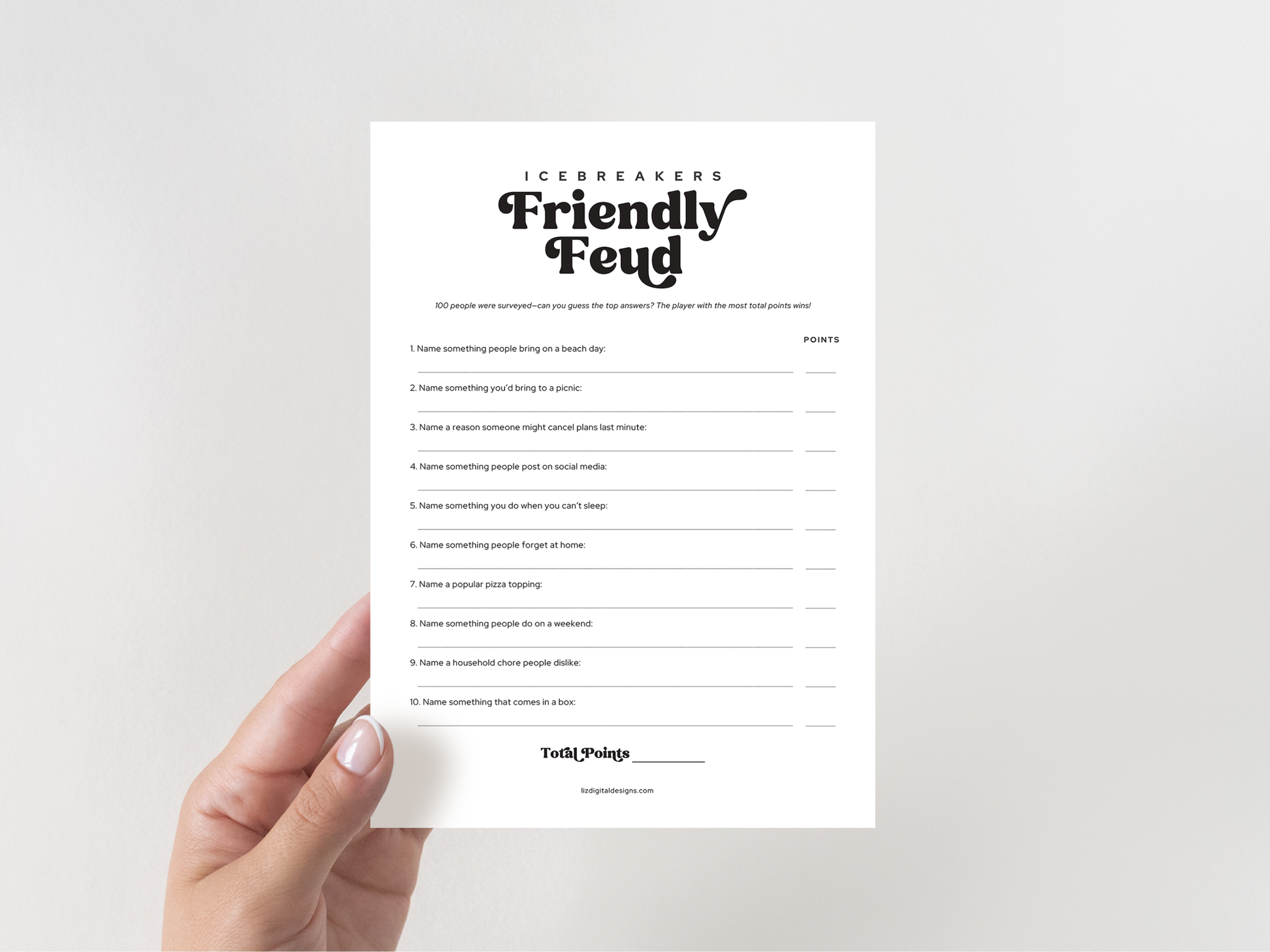 π 1 Printable "Icebreakers: Friendly Feud" Game