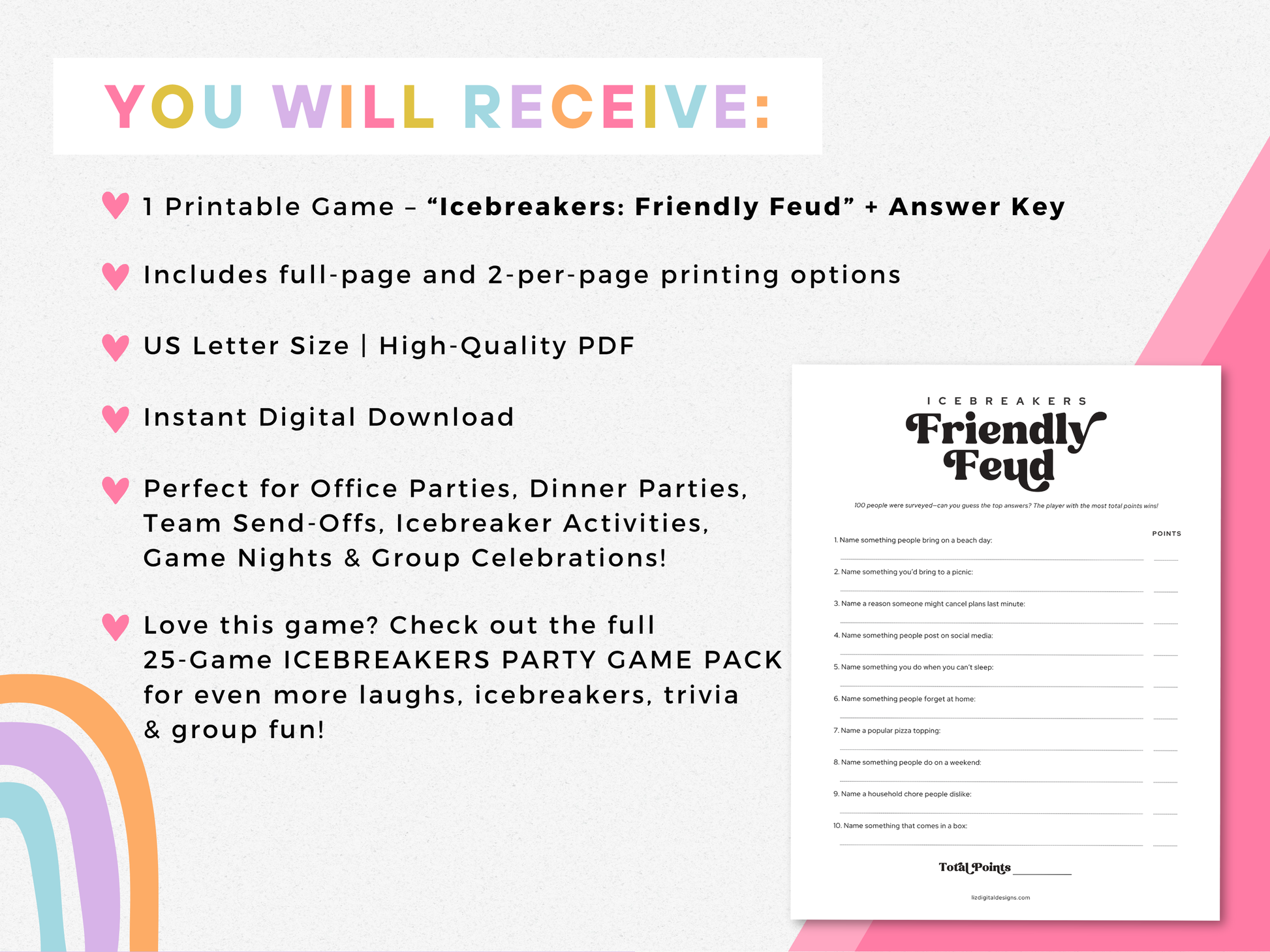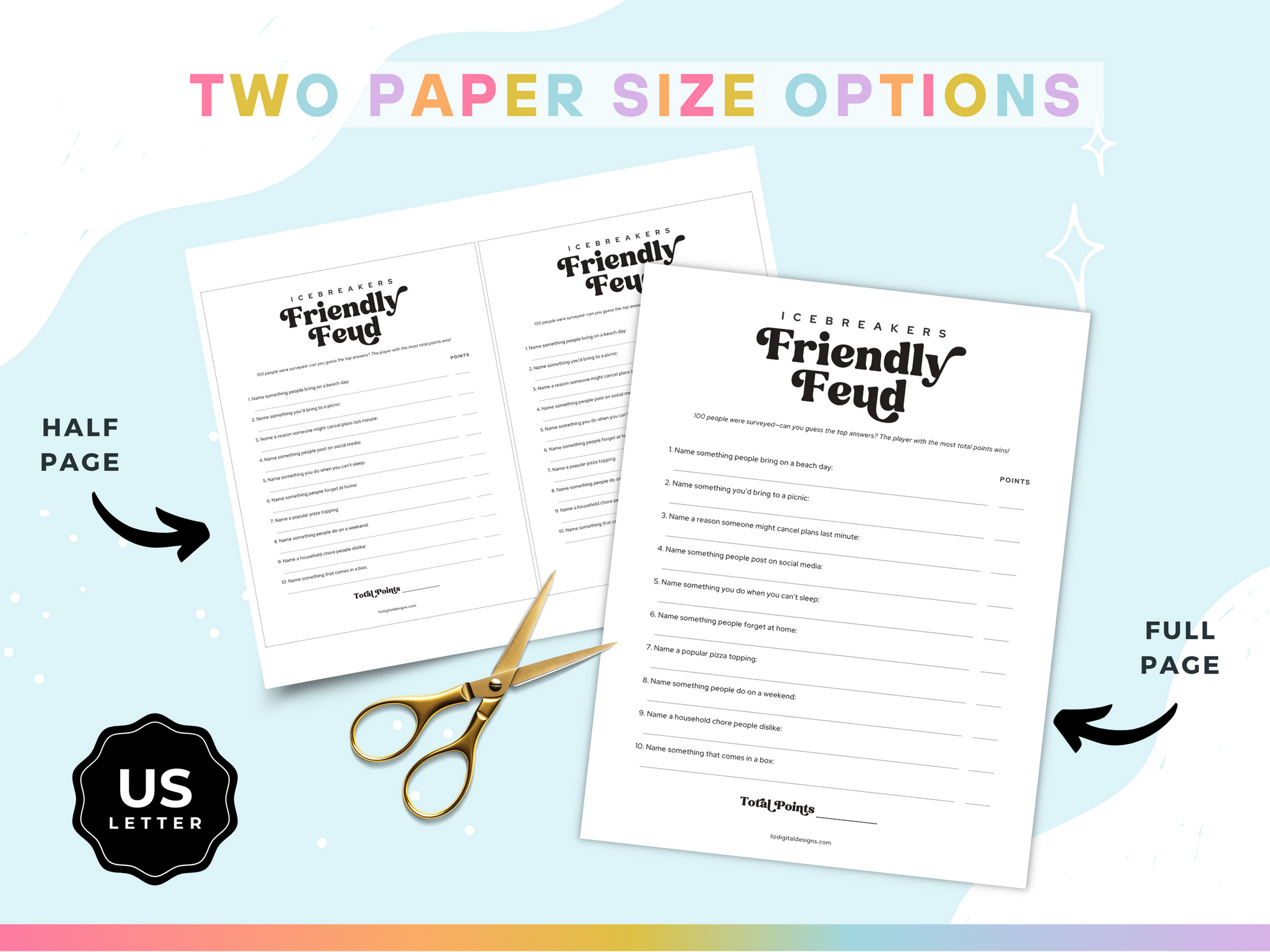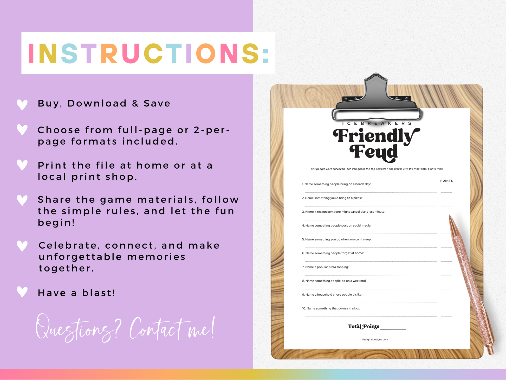 π 1 Printable "Icebreakers: Friendly Feud" Game
