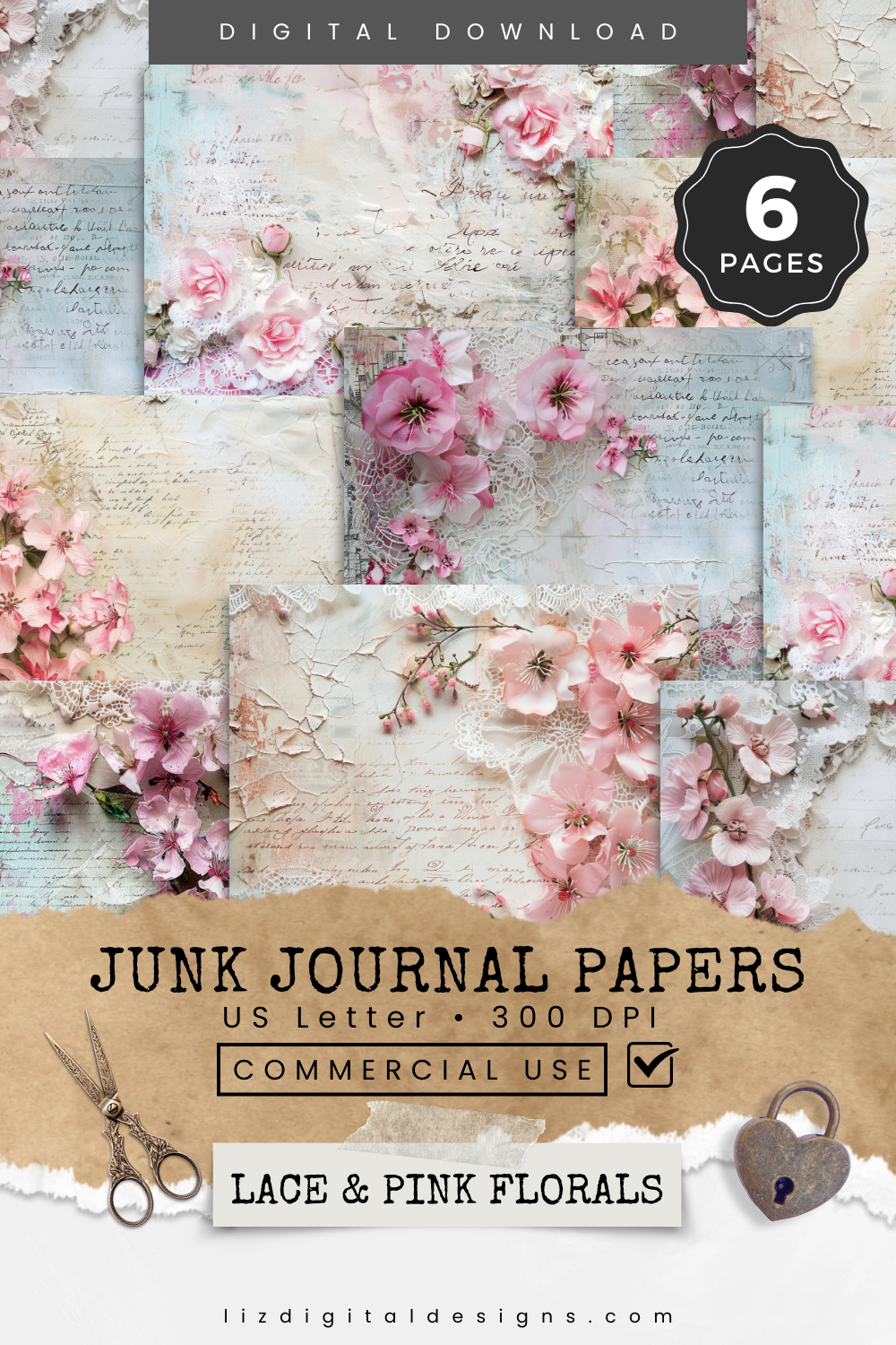 Lace & Pink Florals - Junk Journal & Scrapbooking Paper
