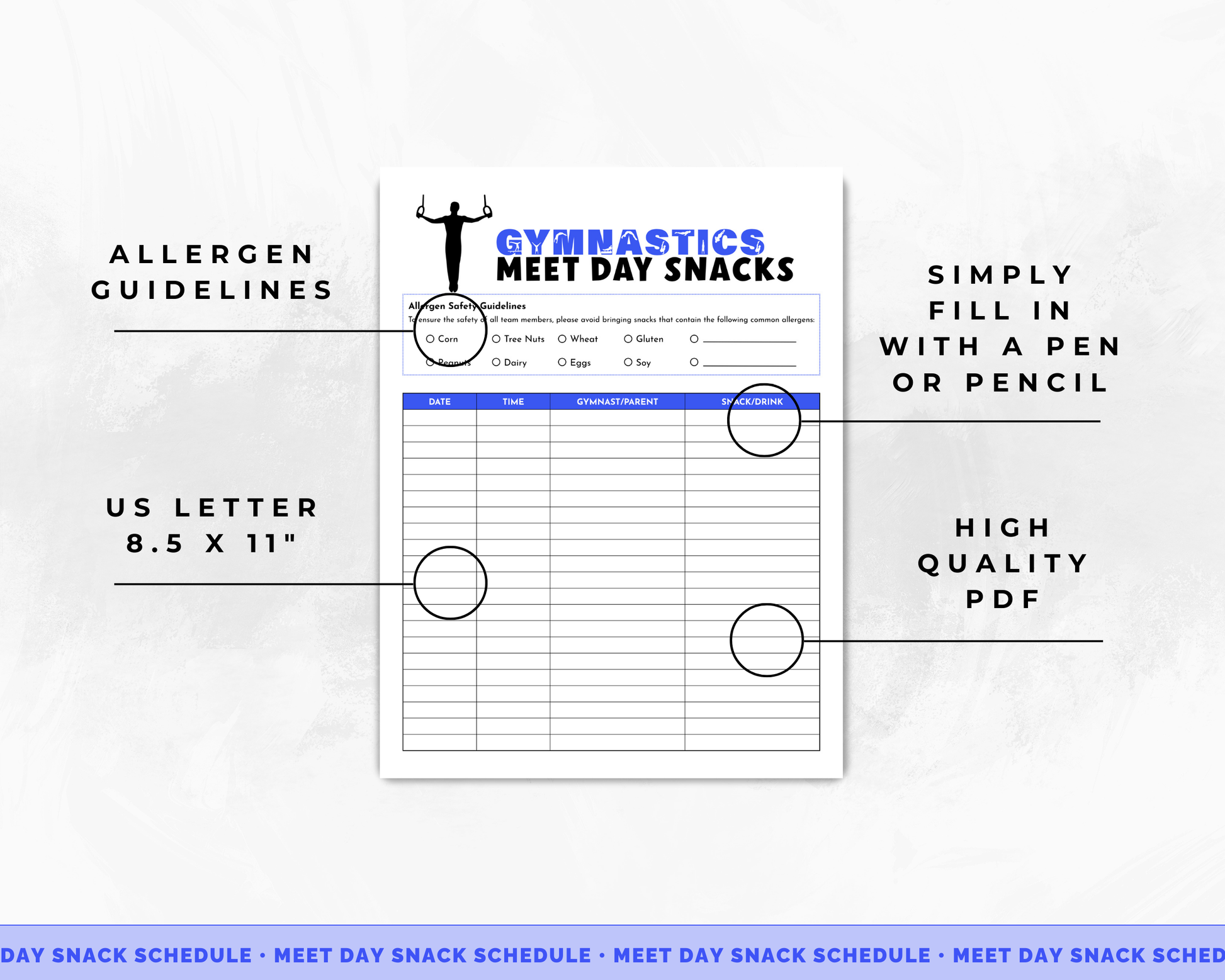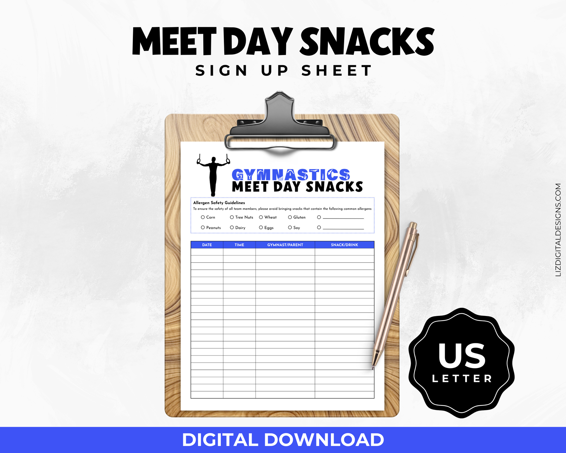 Men's Gymnastics Meet Day Snacks Sign Up Sheet