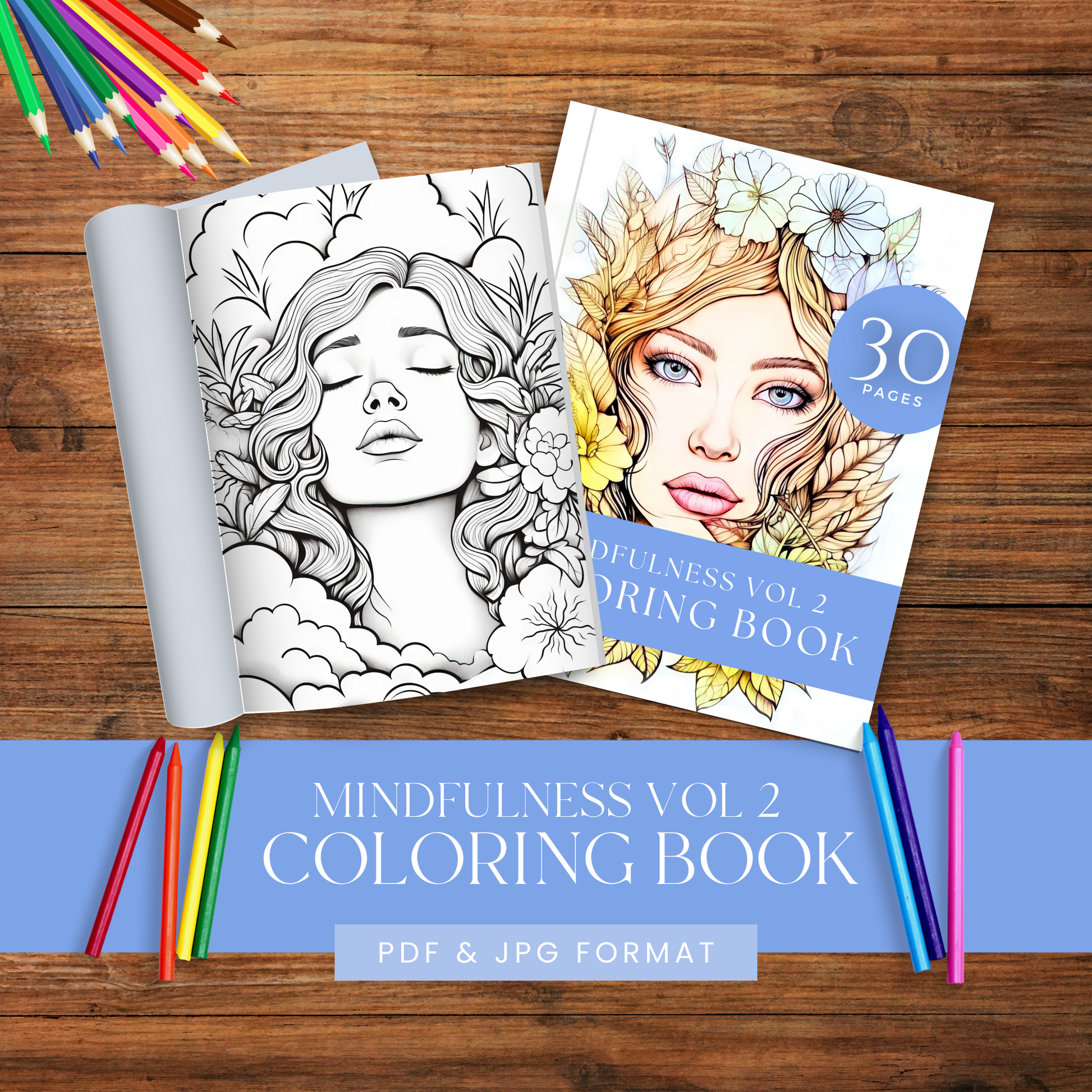 This coloring book is perfect for those looking for stress relief and a way to improve mental health. Take some time out of your busy daily life and unwind with the Mindfulness Volume 2 Coloring Book! This printable coloring book is available as a digital download in JPG and PDF format.