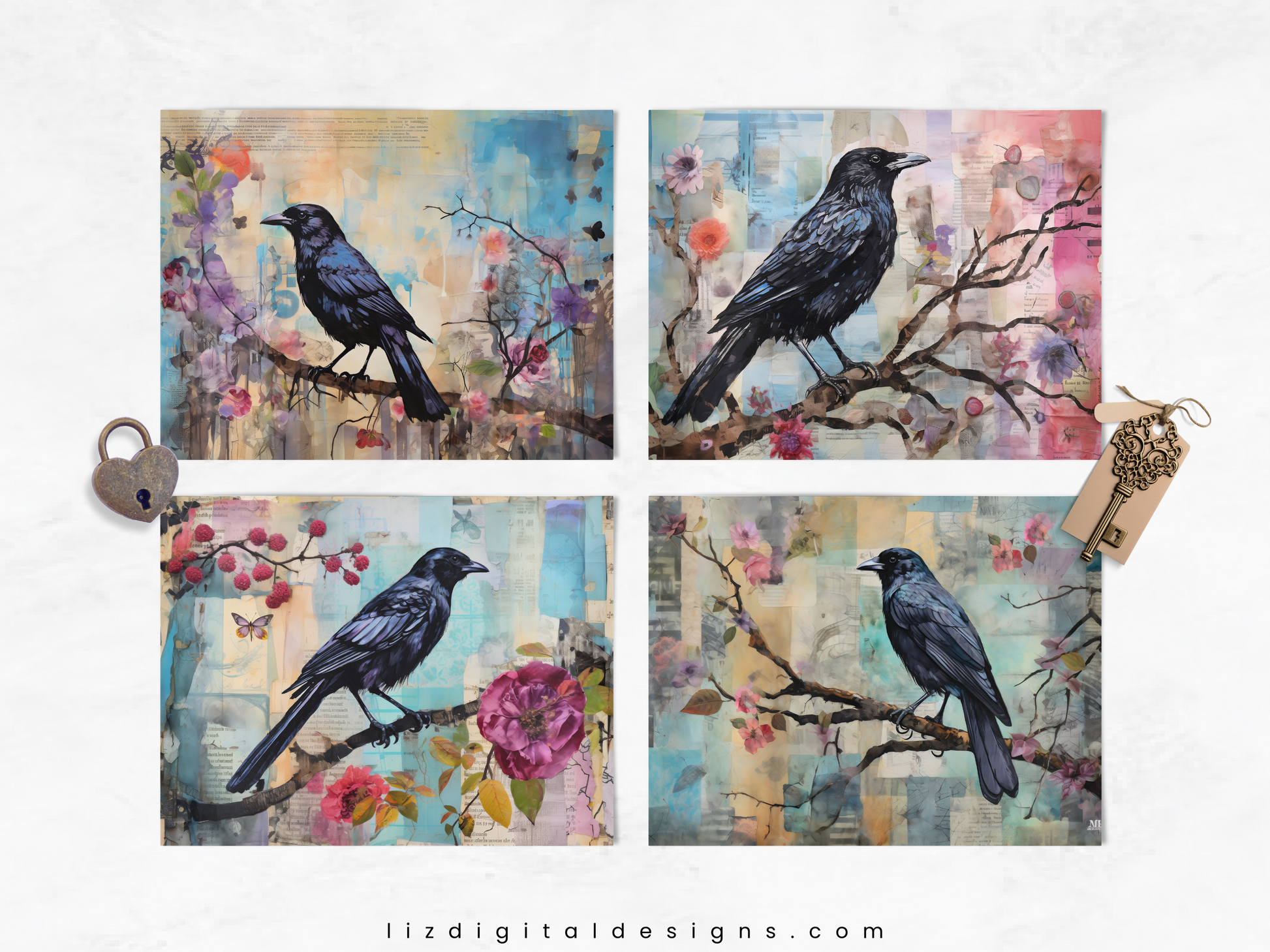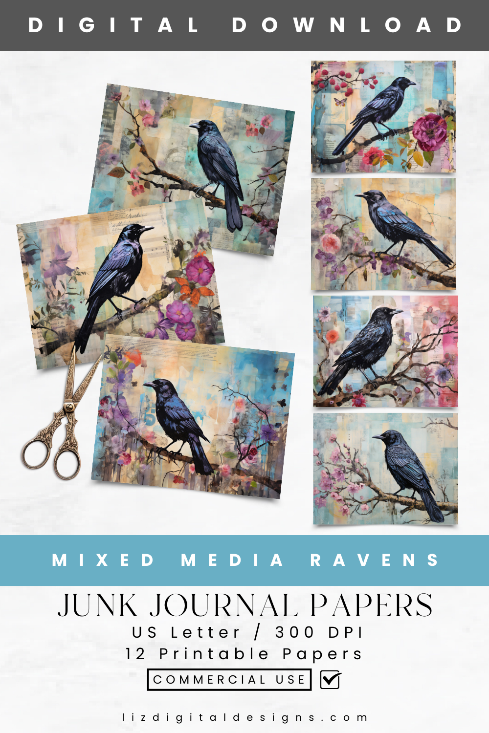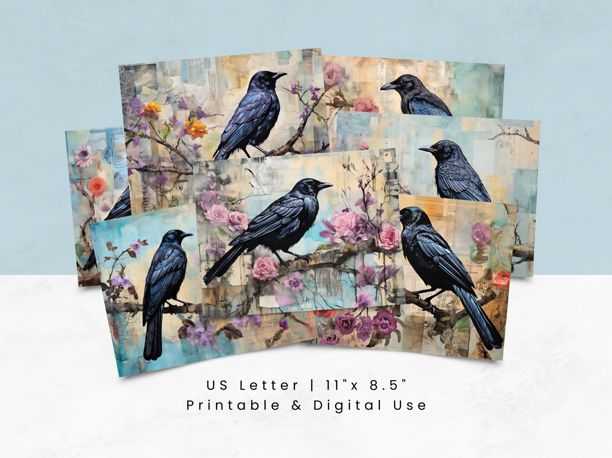 Mixed Media Ravens - Junk Journal & Scrapbooking Paper