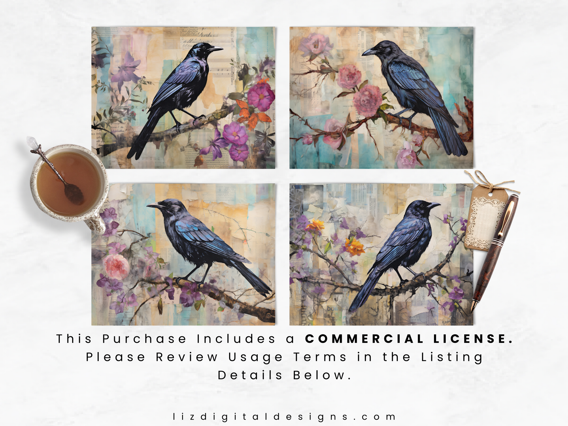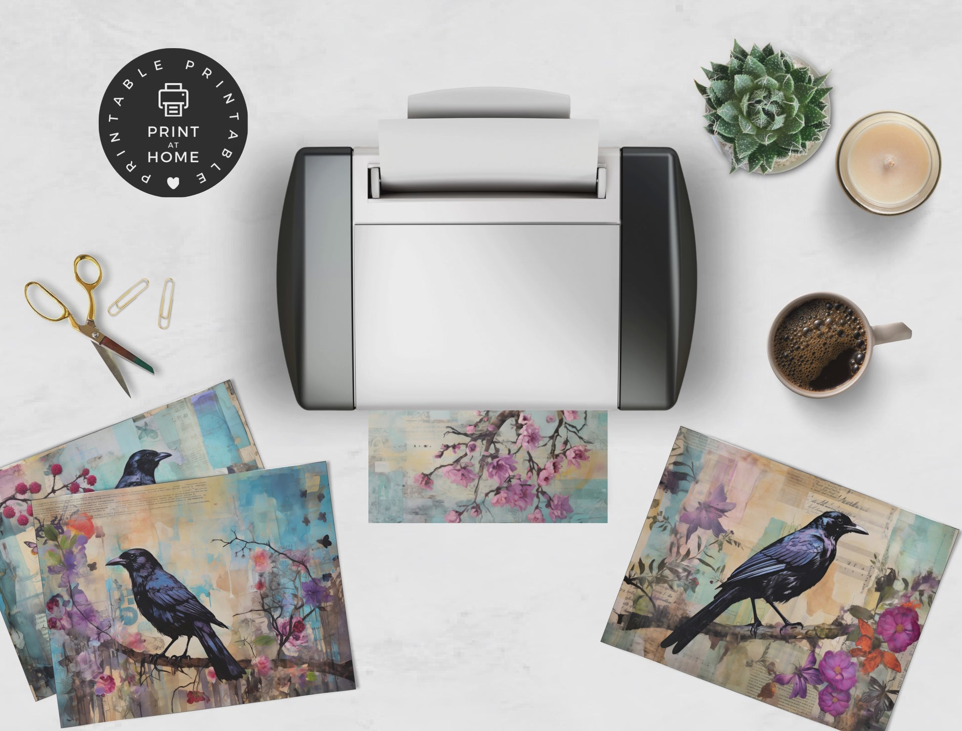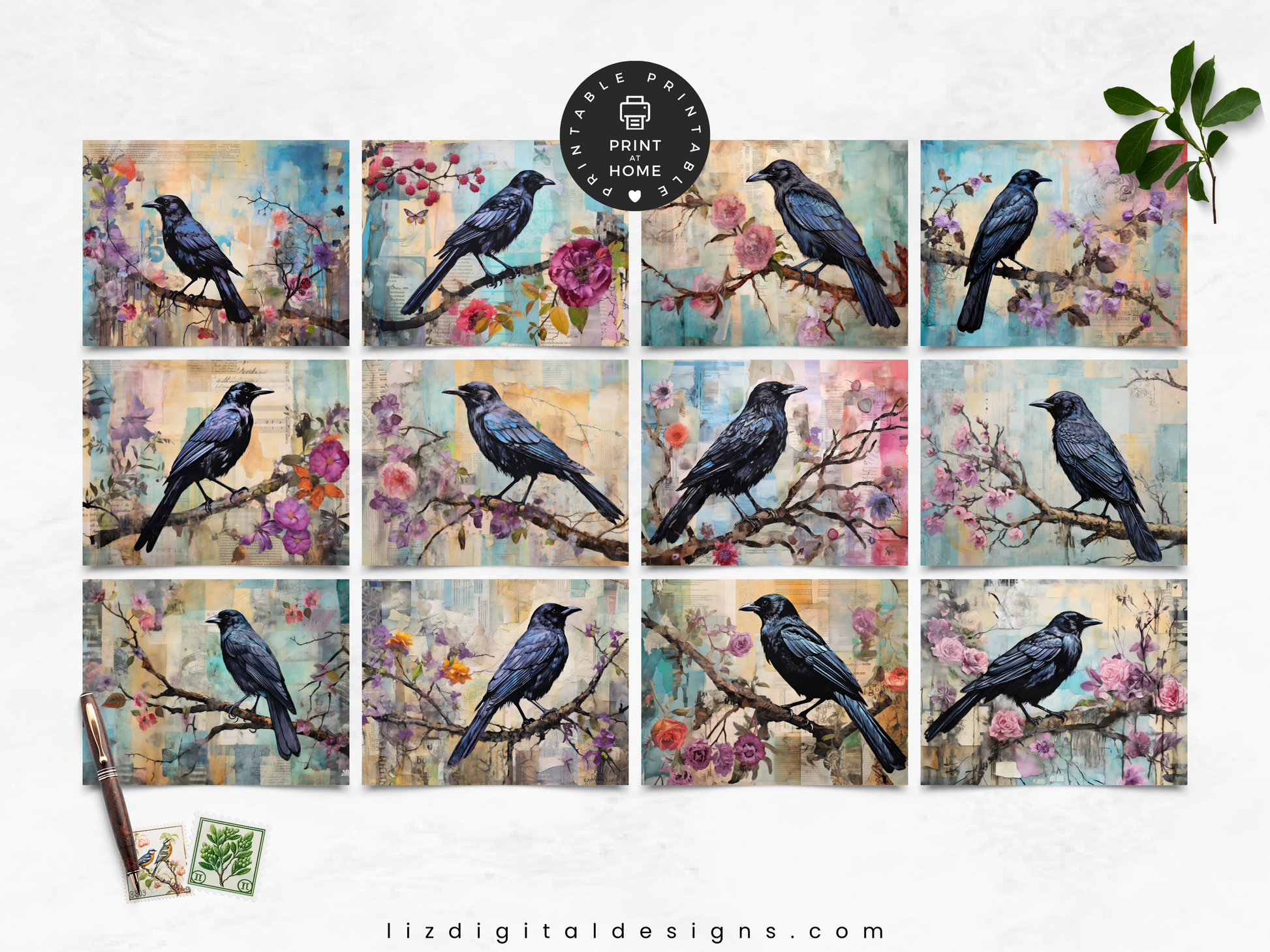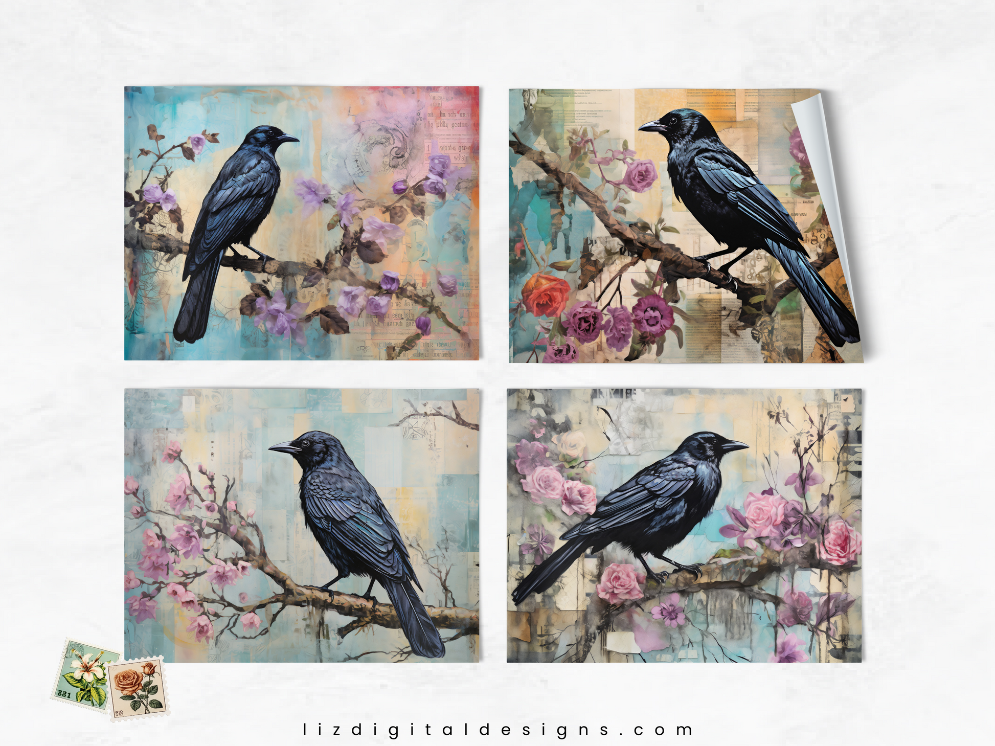 Mixed Media Ravens - Junk Journal & Scrapbooking Paper