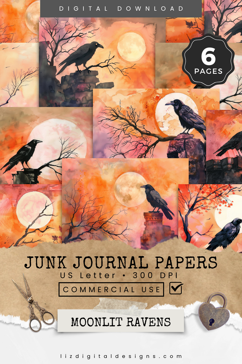 Moonlit Ravens - Junk Journal & Scrapbooking Papers
