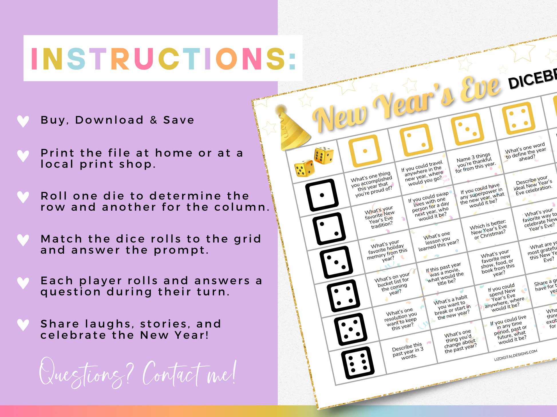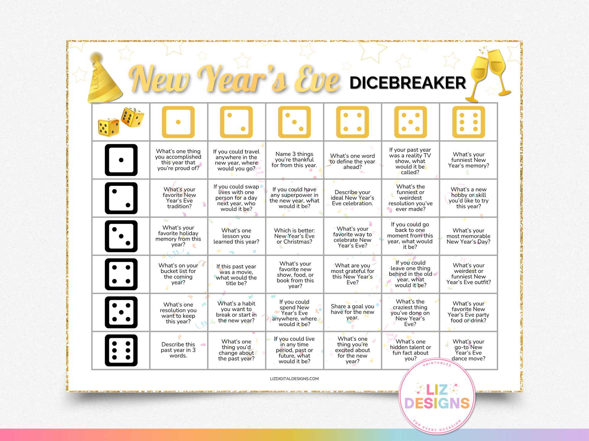 Looking for a fun and engaging way to bring people together this New Yearβs Eve? The πππ ππππ'π πππ πππππππππππ ππππ is perfect for creating laughs, sharing stories, and sparking conversations! Whether youβre hosting a family reunion, an office party, or a group gathering, this Roll a Dice Game will keep everyone entertained.