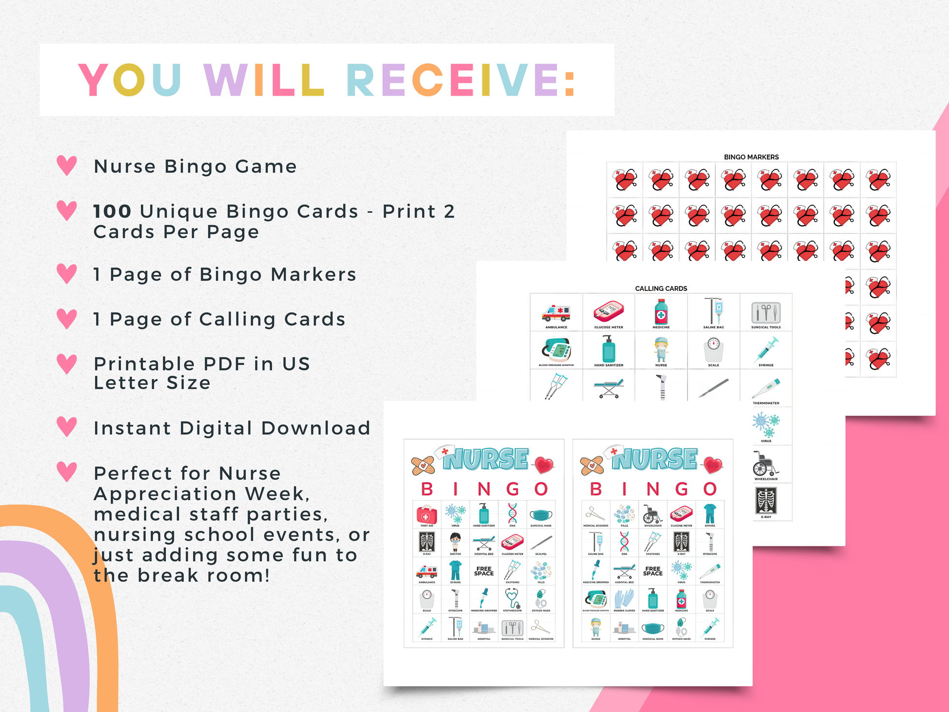 Simply download, print, and play! Players will love identifying familiar medical tools and hospital essentials as they race to shout βBINGO!β