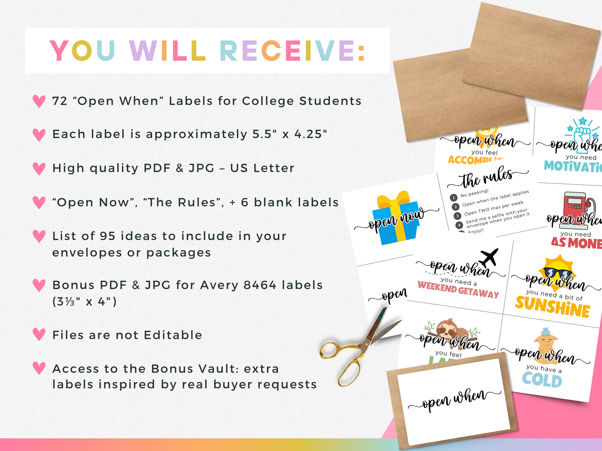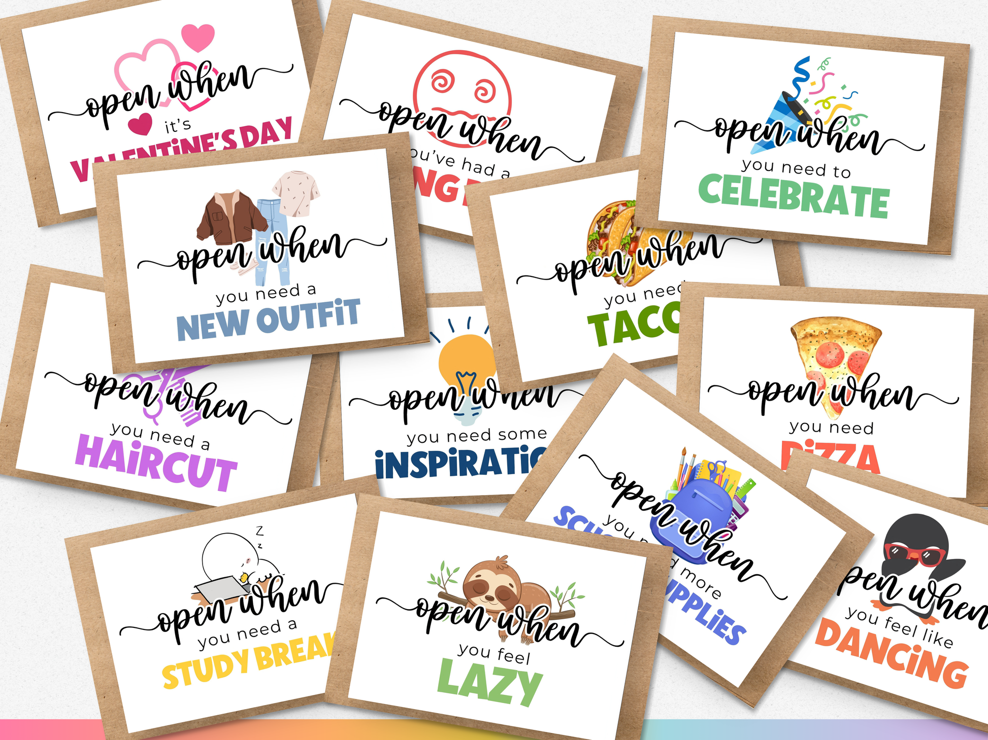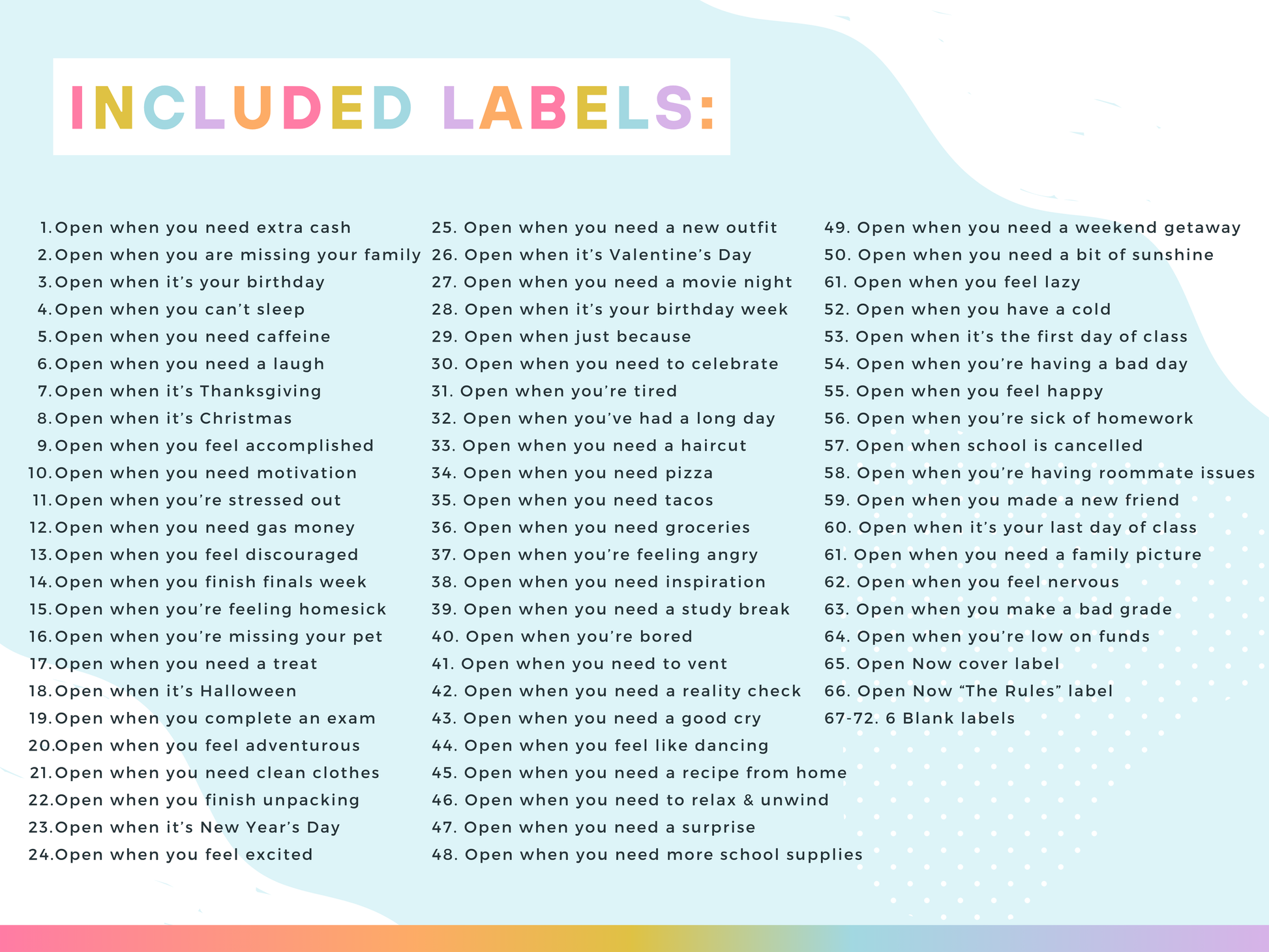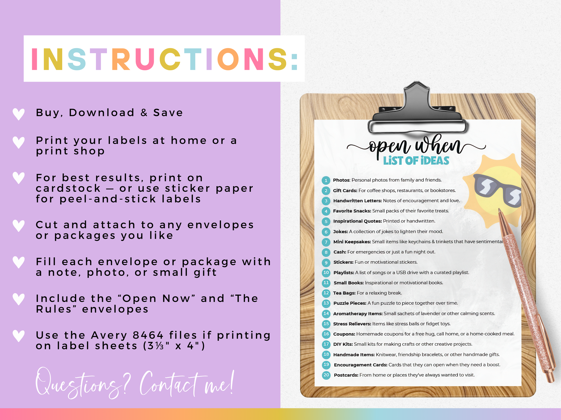 ๐ Includes a list of 95 ideas to include in your "Open When" envelopes & packages