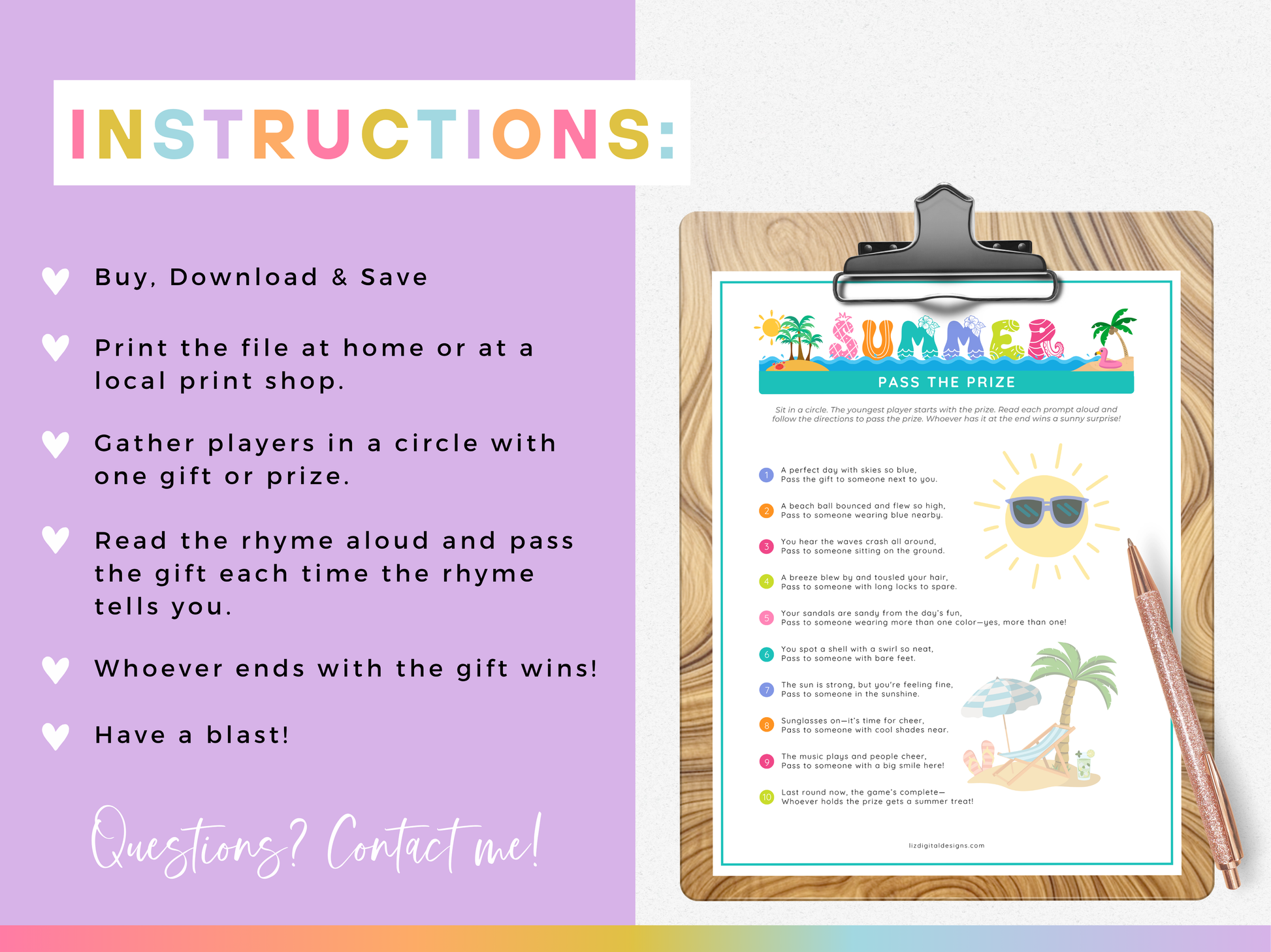 ๐ 1 Summer "Pass the Prize" Rhyme Game