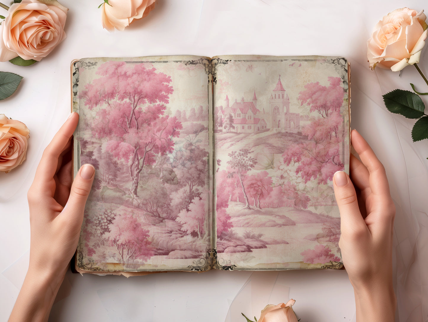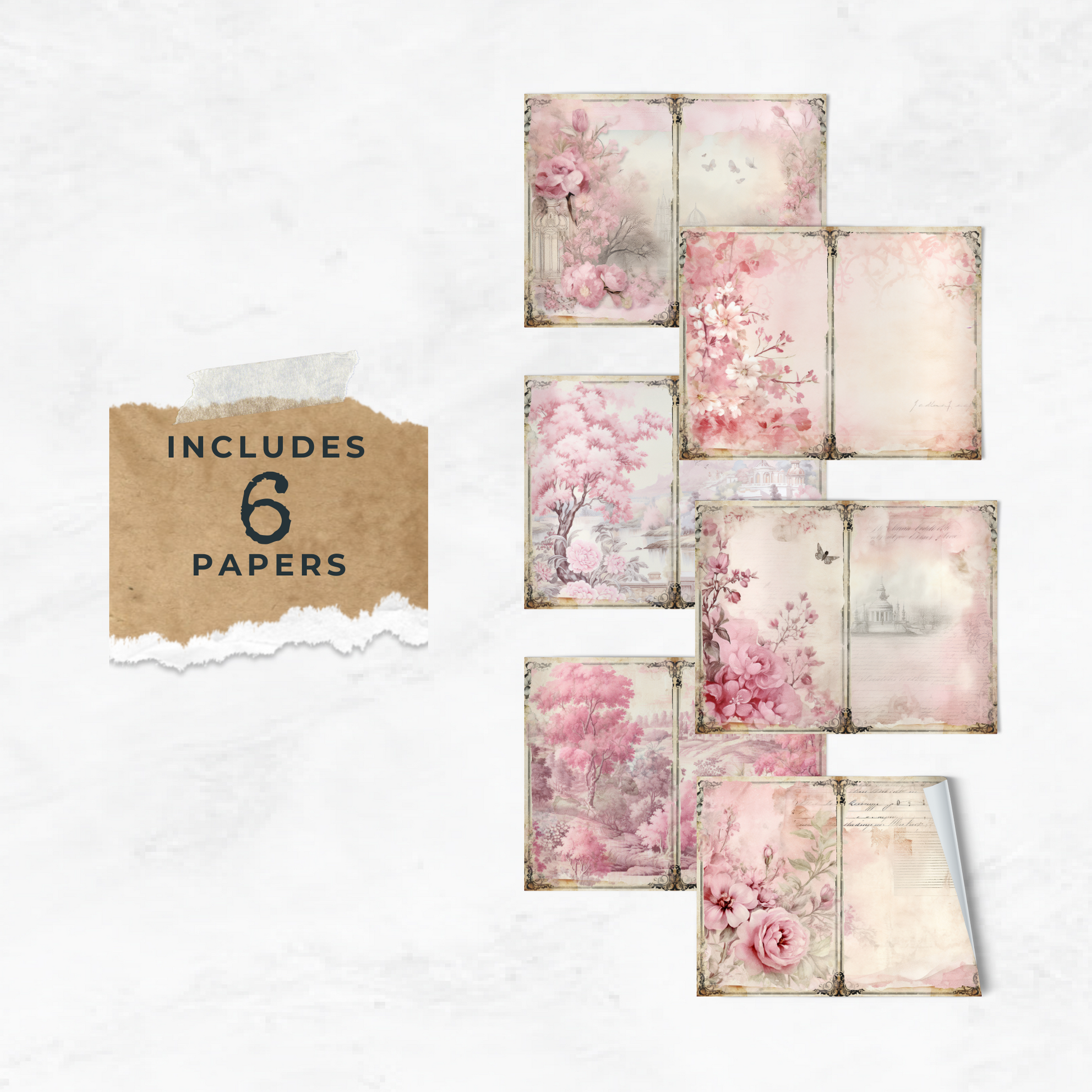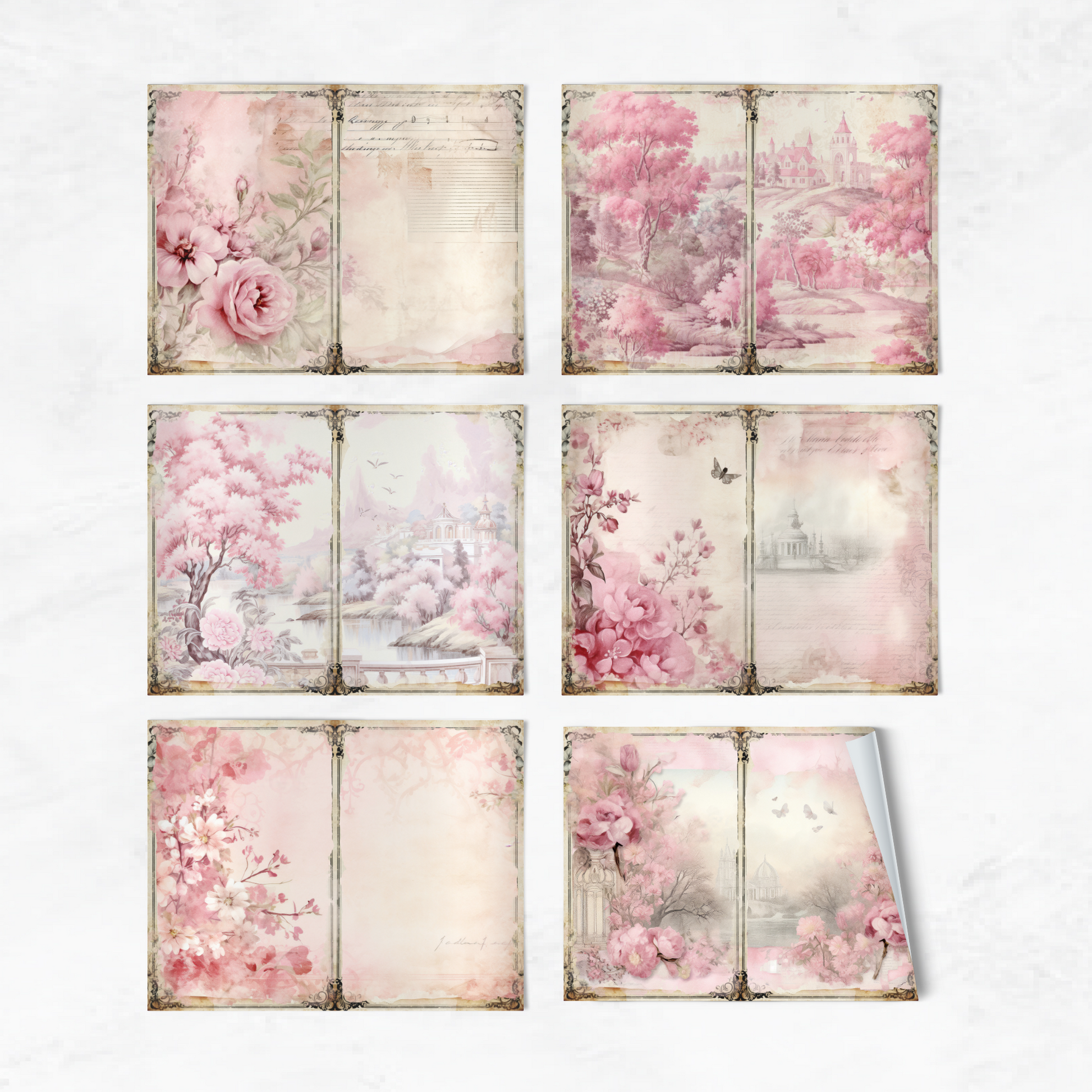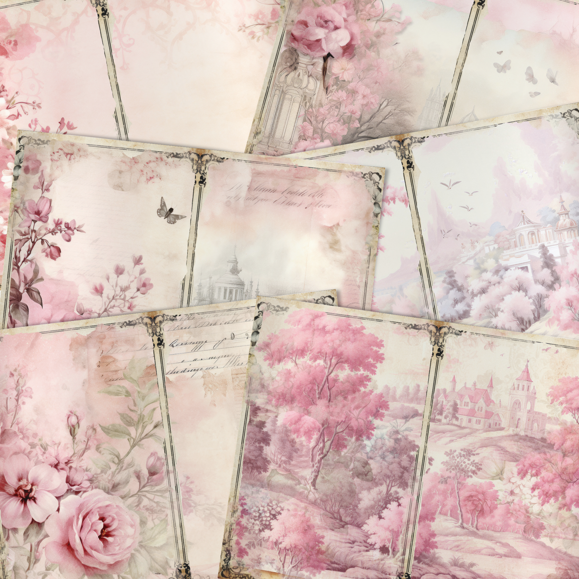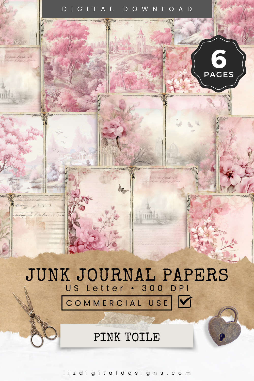 Pink Toile - Junk Journal & Scrapbooking Papers