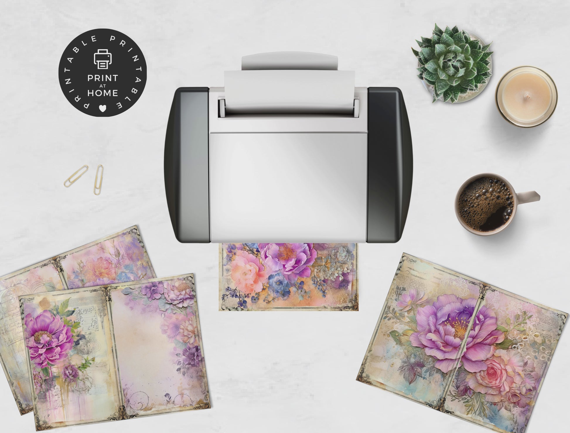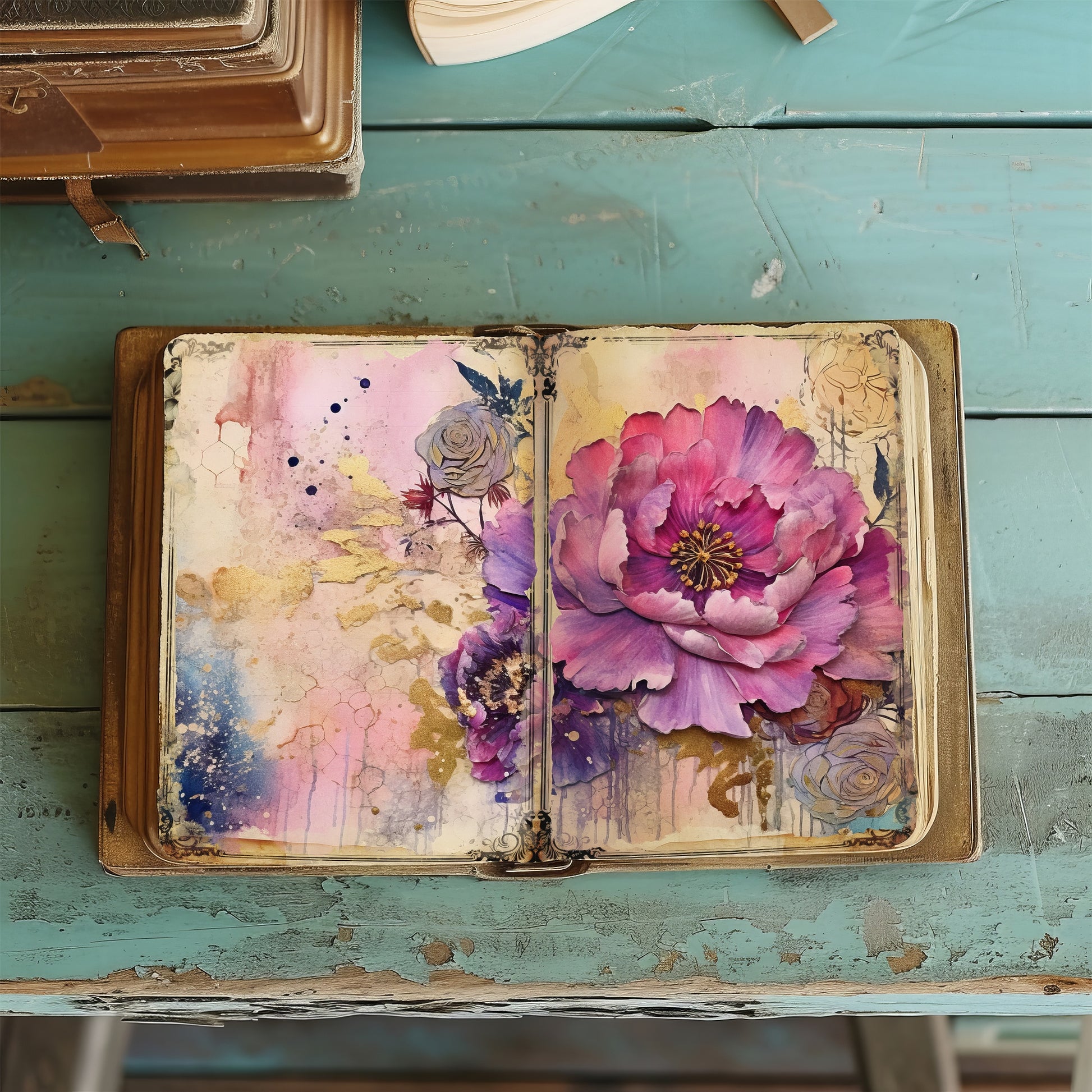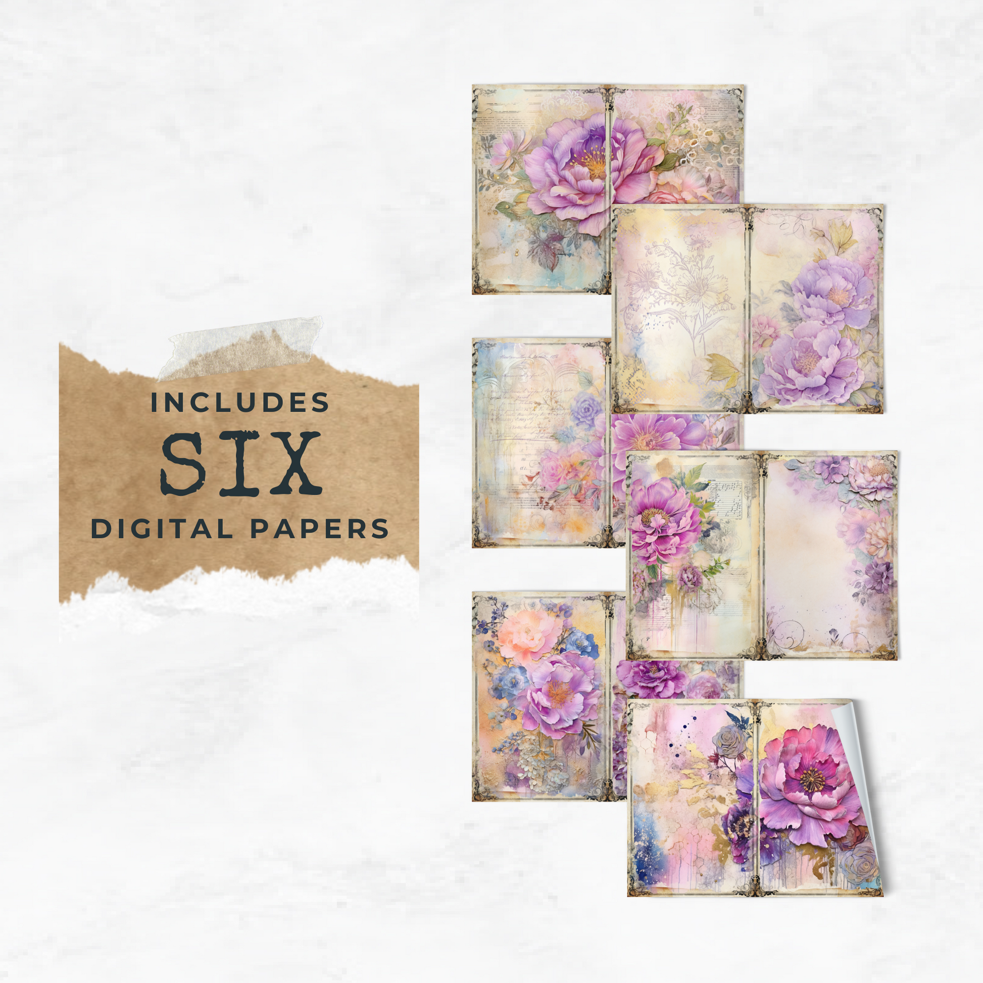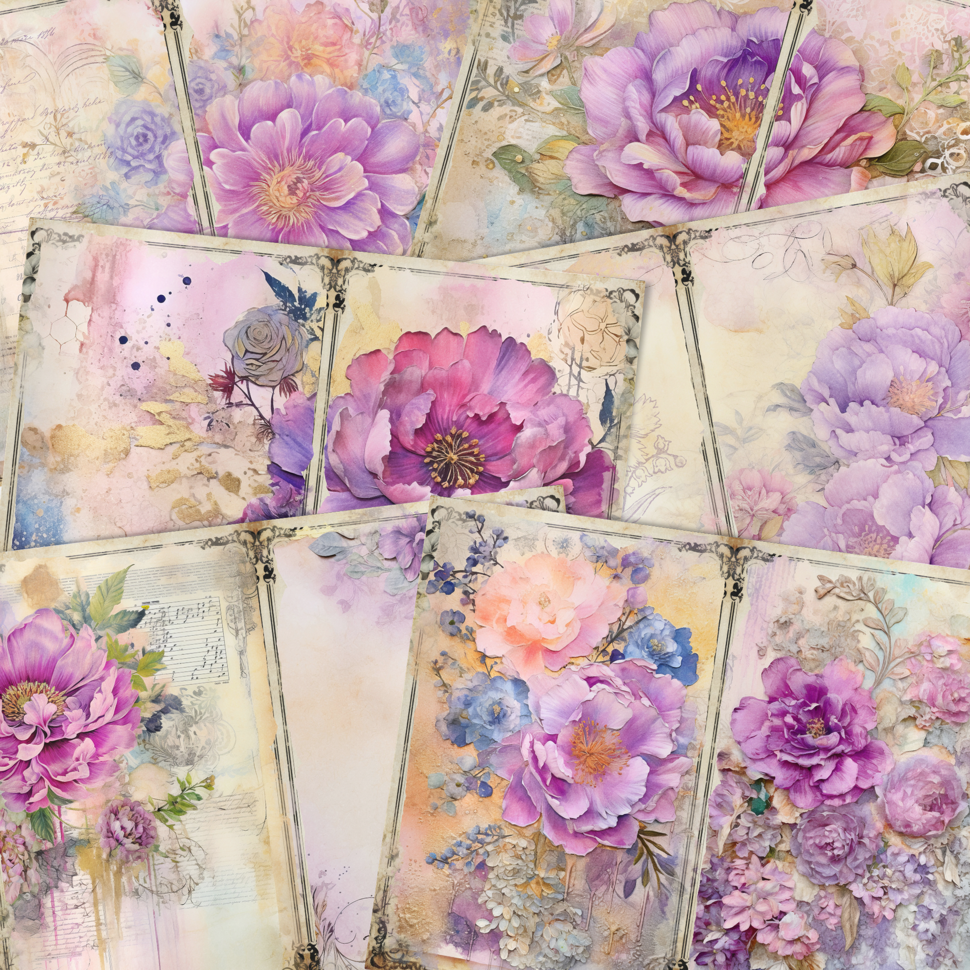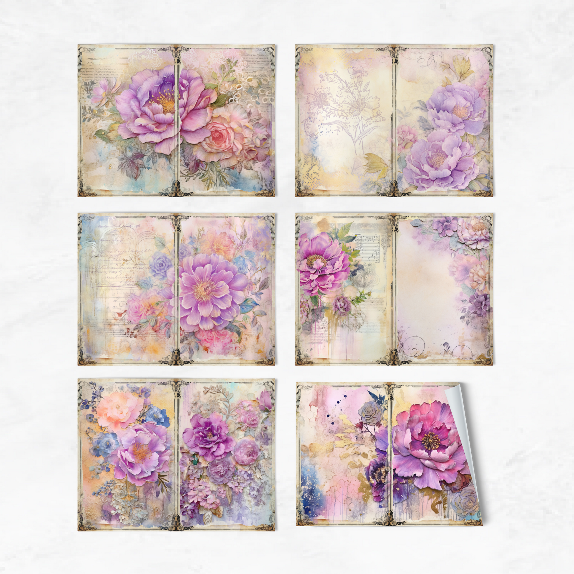 Enhance your junk journal collection with these beautiful floral papers for junk journals, scrapbooking and various paper crafts! Use them in your collages, stationery, cards, invitations, scrapbooks, memory books, journals, planners and more today!