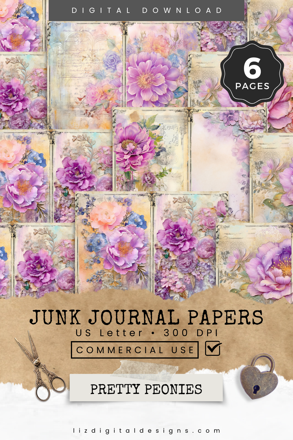 Pretty Peonies - Junk Journal & Scrapbooking Papers
