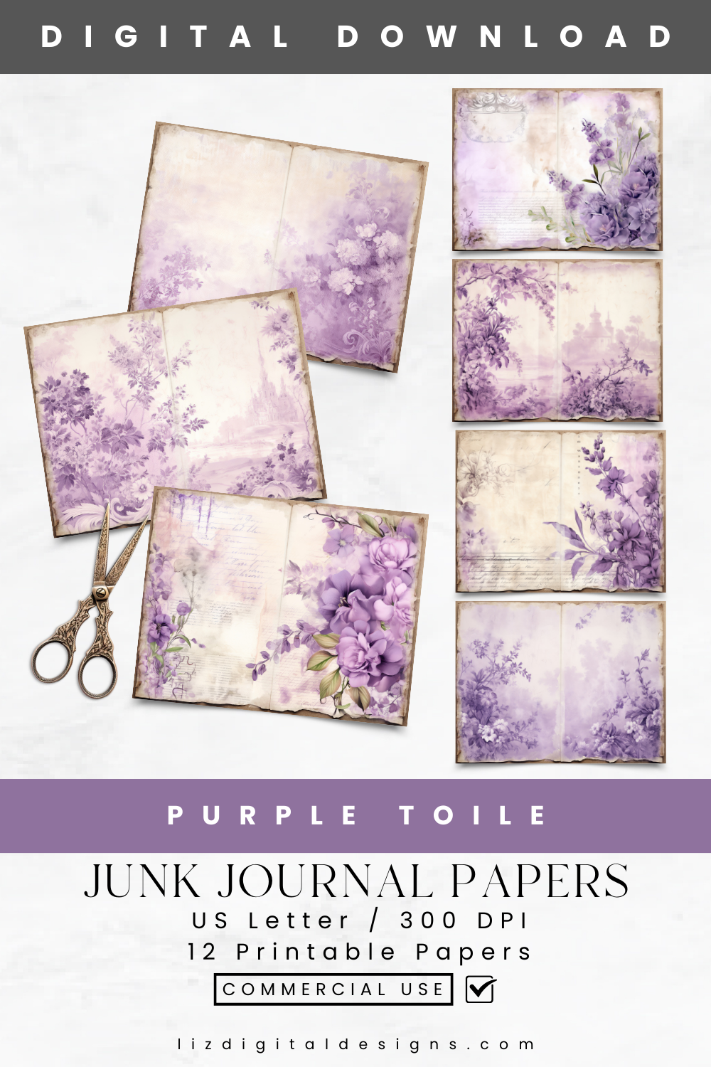 Purple Toile - Junk Journal & Scrapbooking Papers