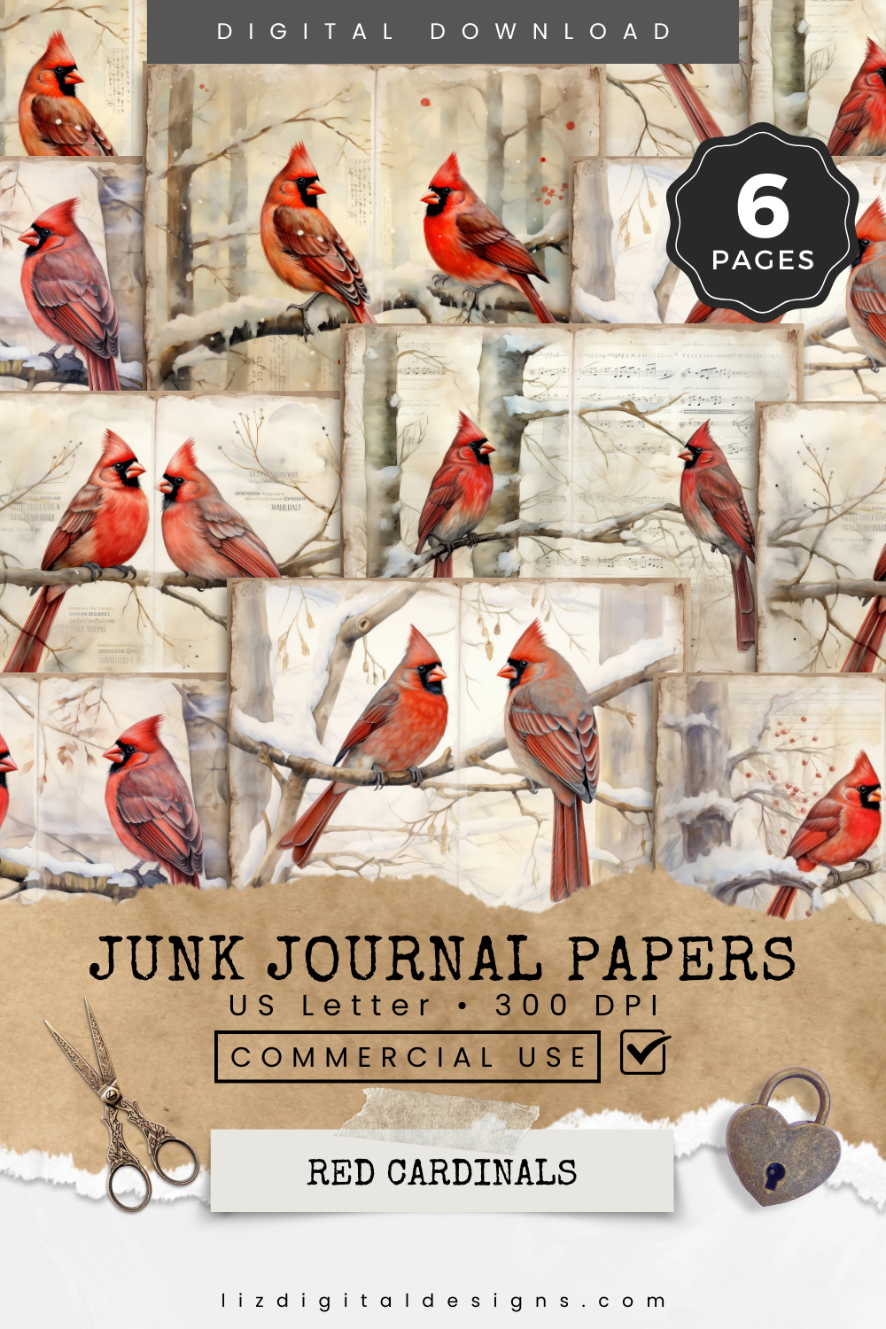 Red Cardinals - Junk Journal & Scrapbooking Papers